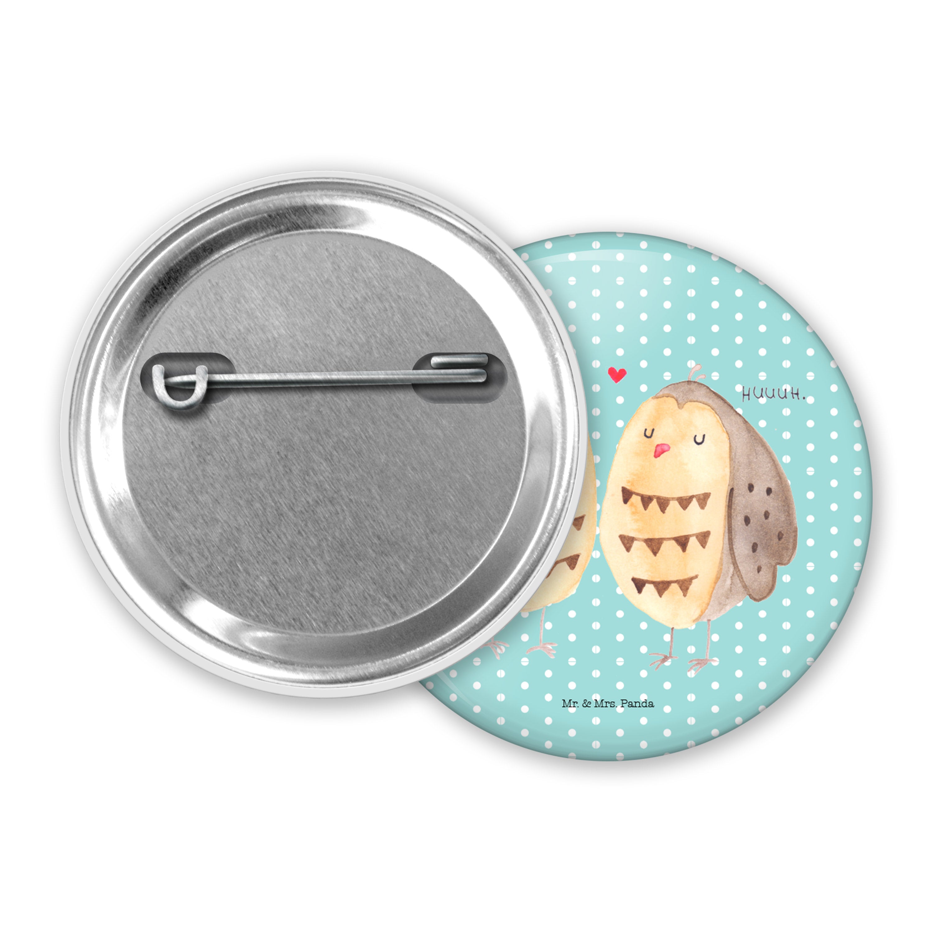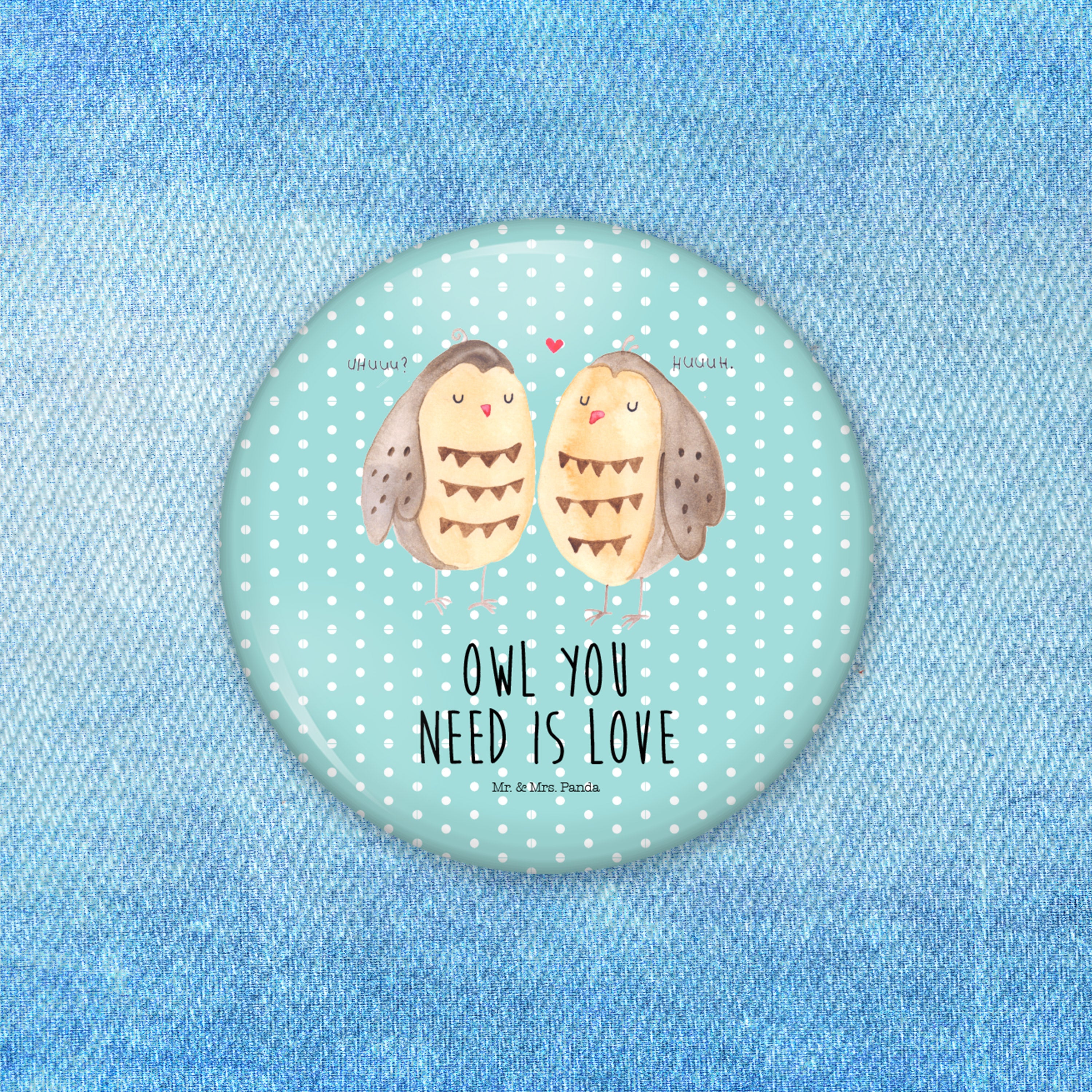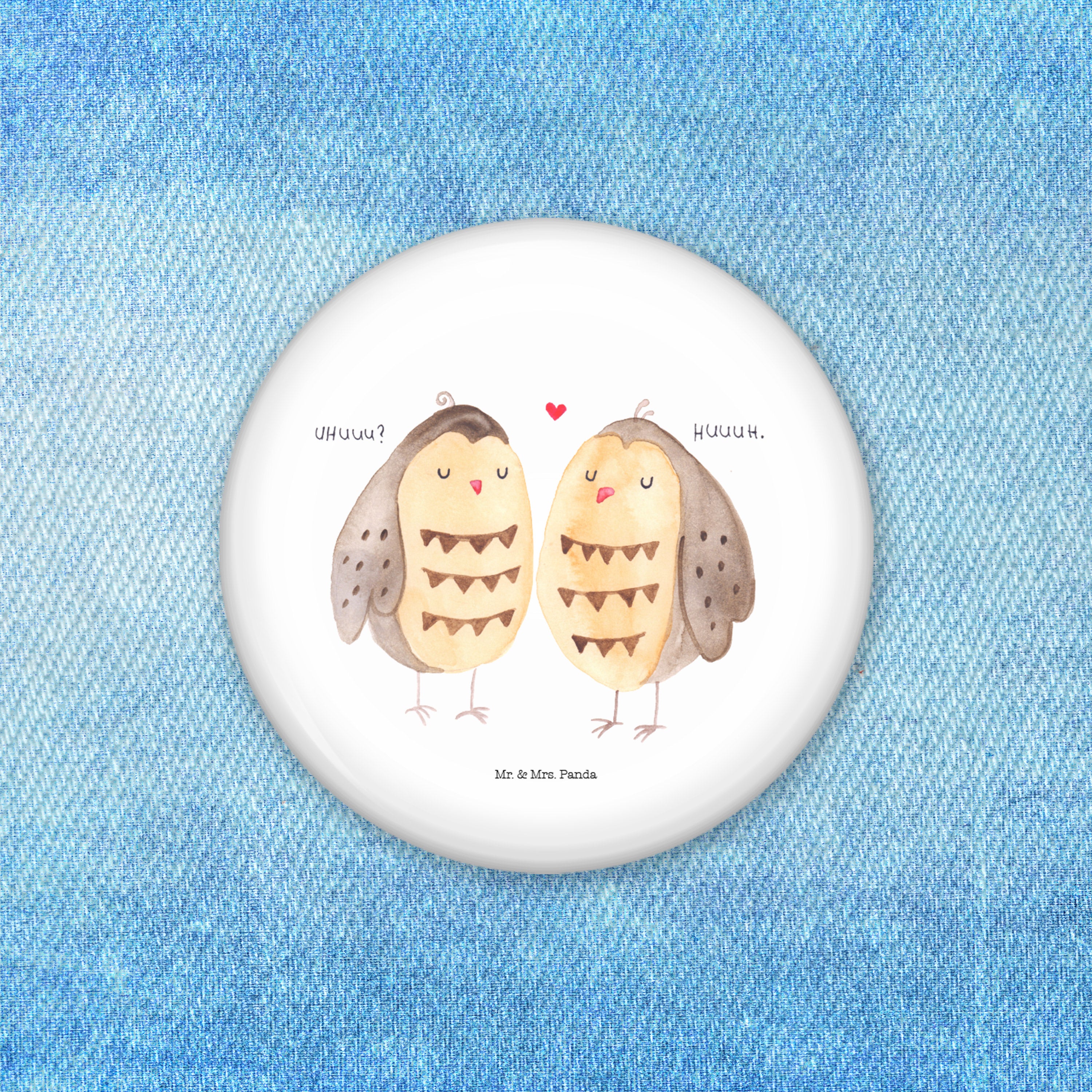 50mm Button Eule Liebe - mit Spruch - Weiß