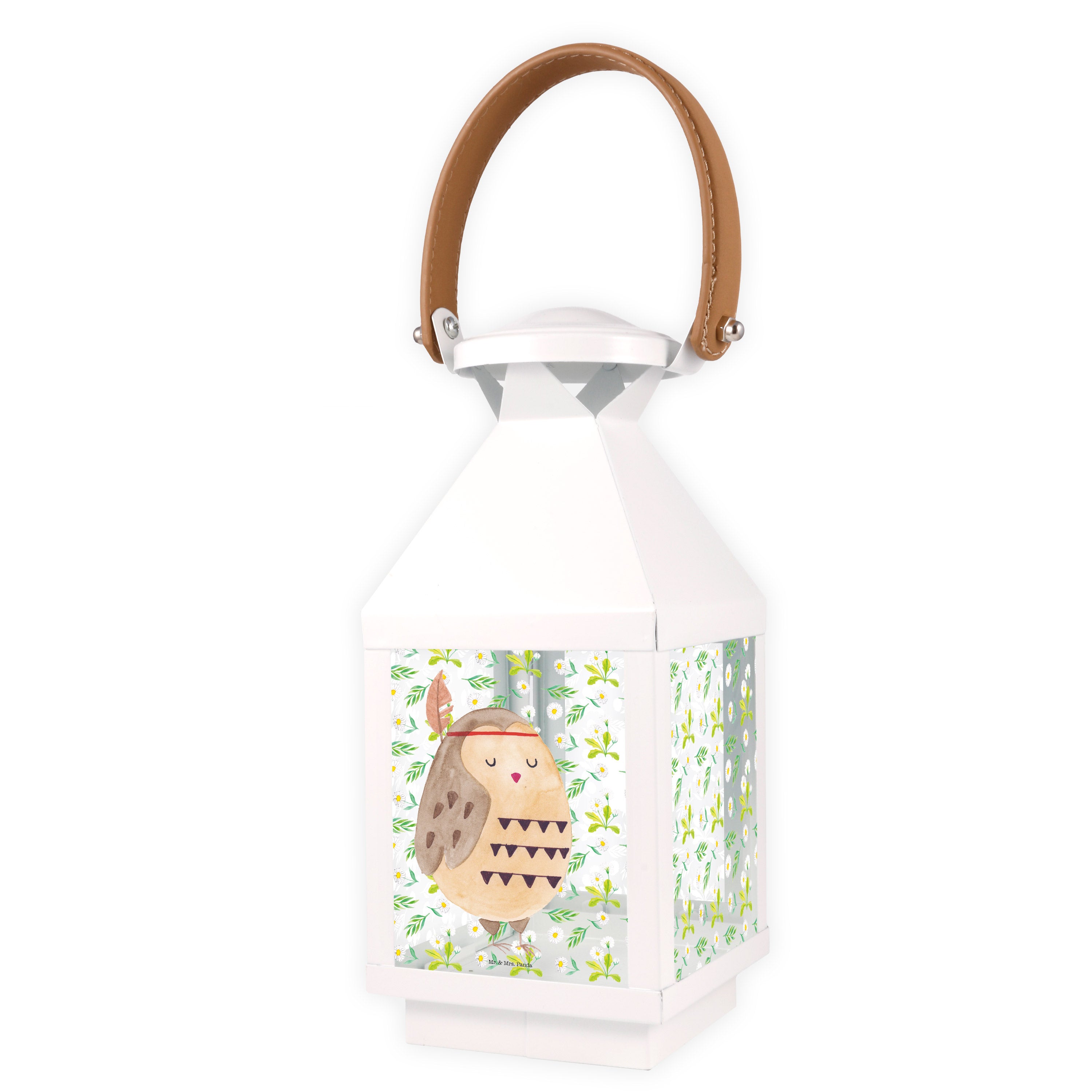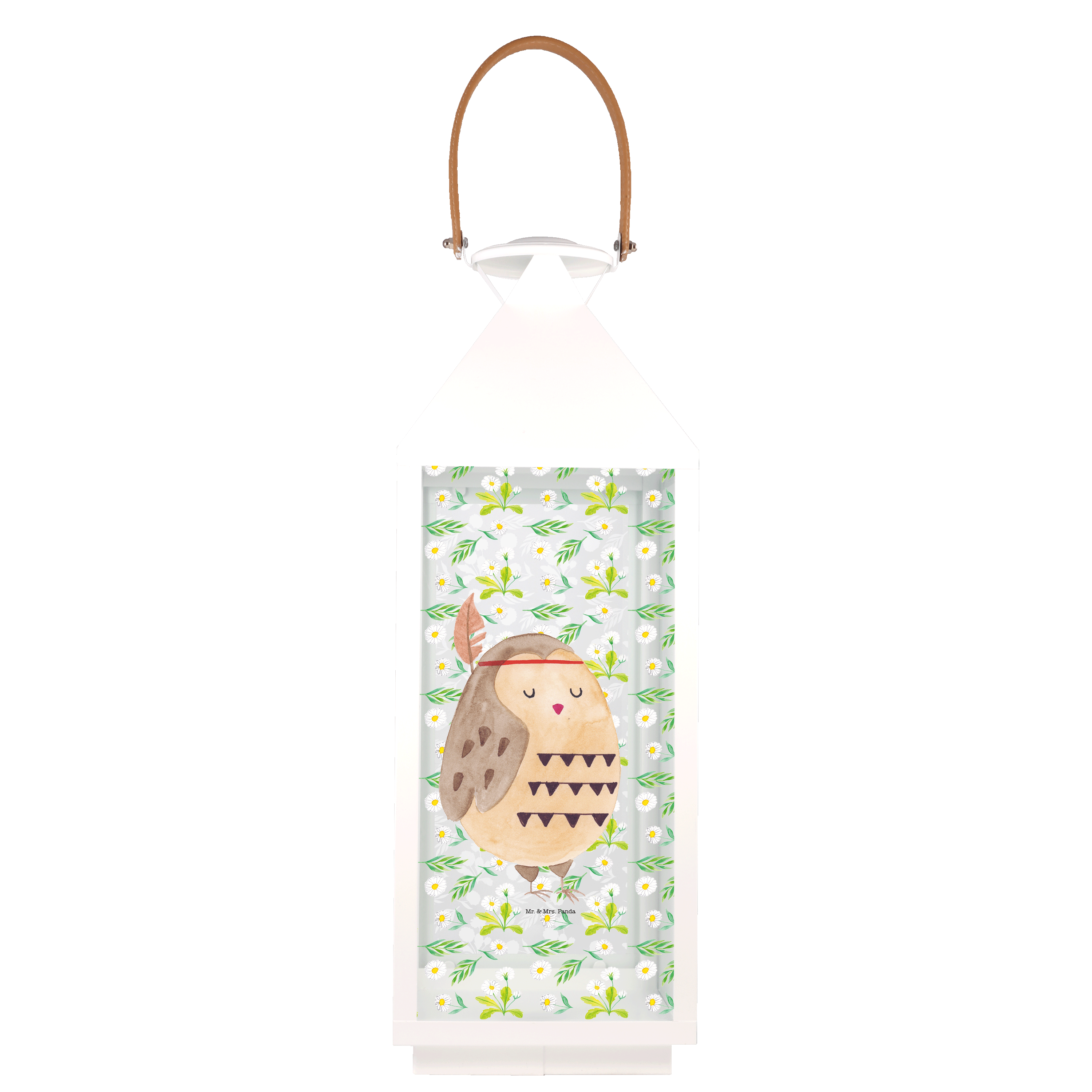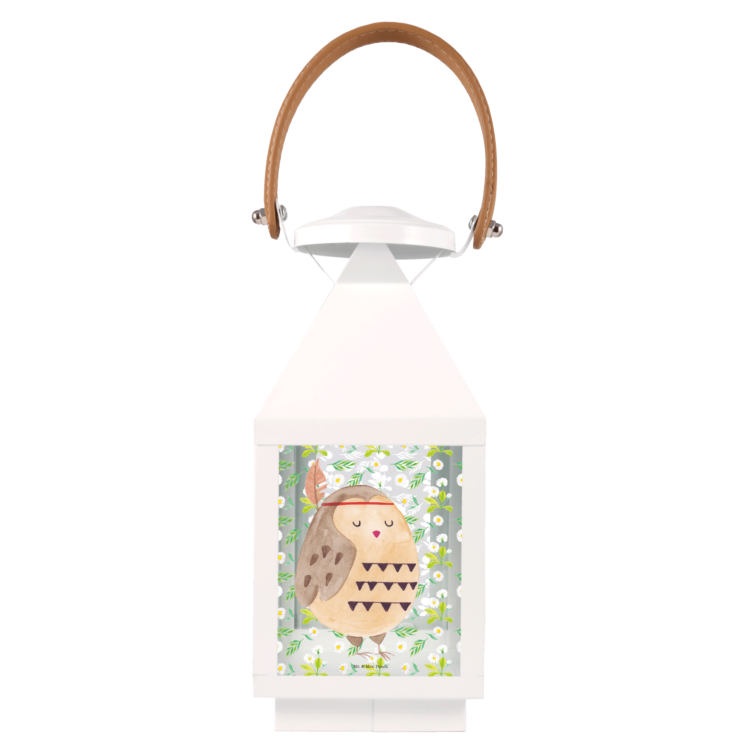 Deko Laterne Eule Federschmuck - mit Spruch - L