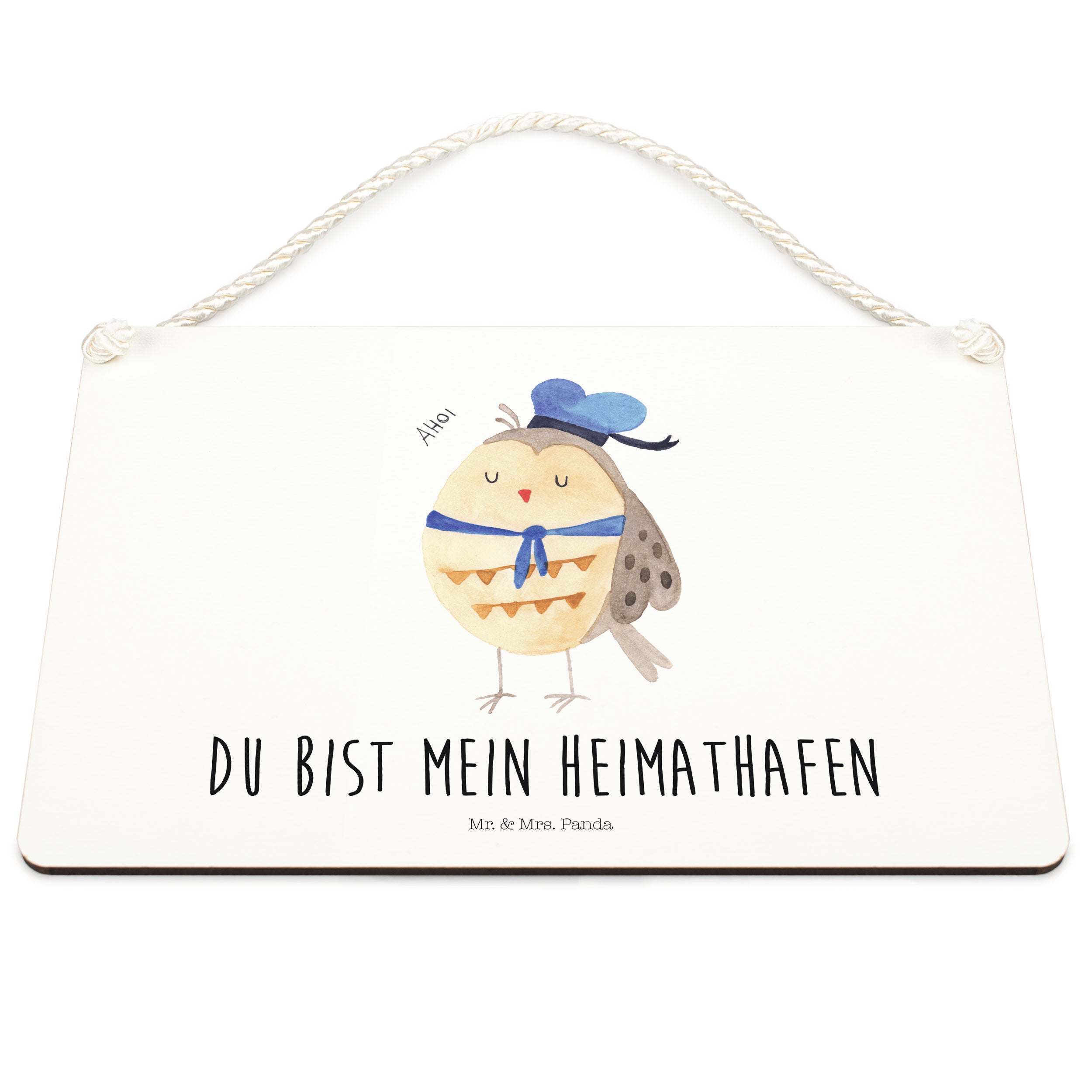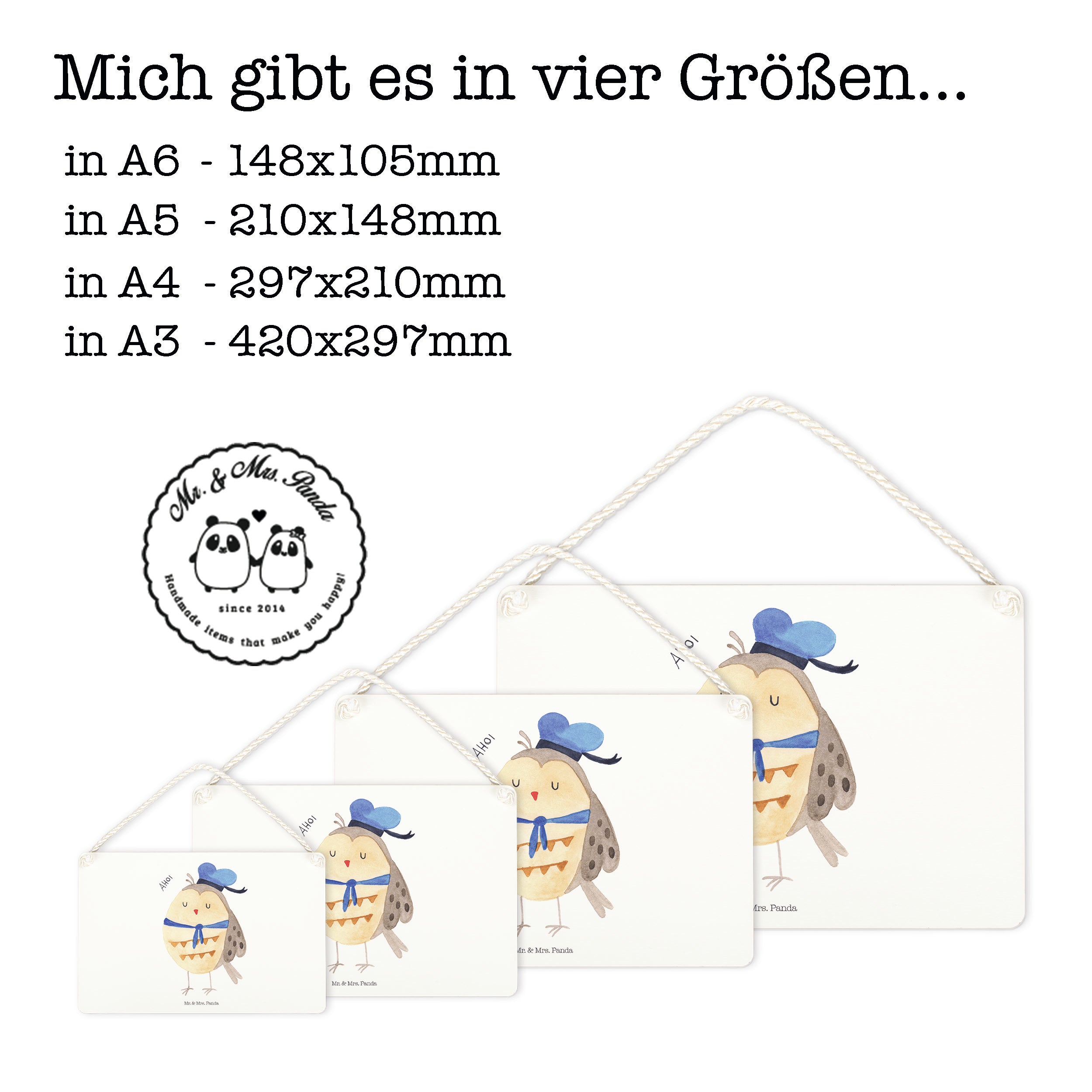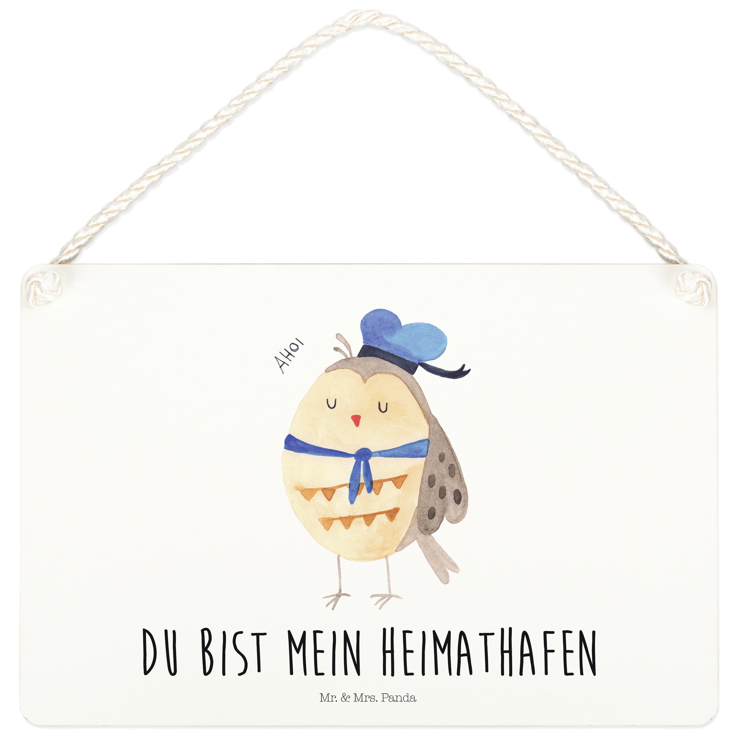 Deko Schild Eule Matrosen - mit Spruch - Weiß