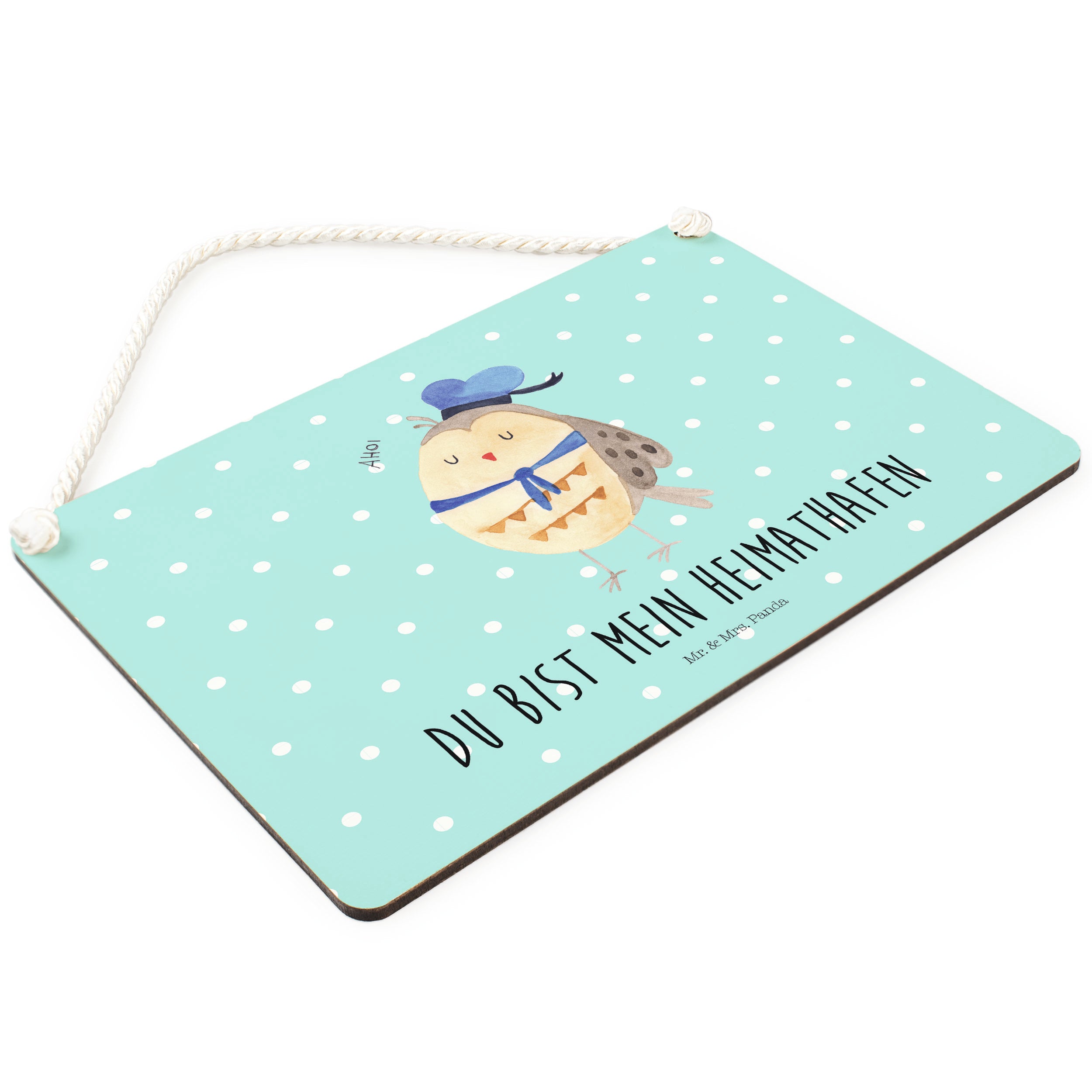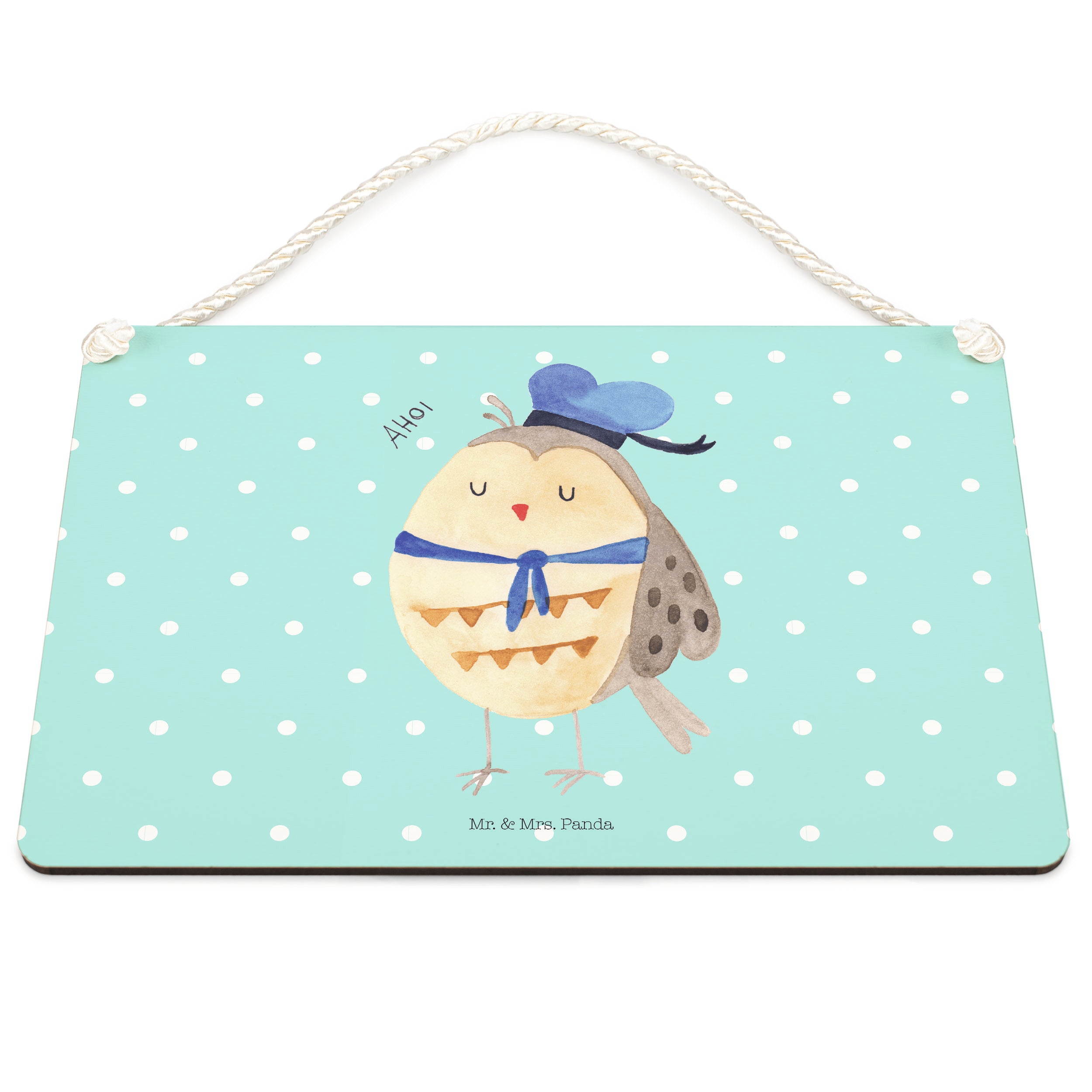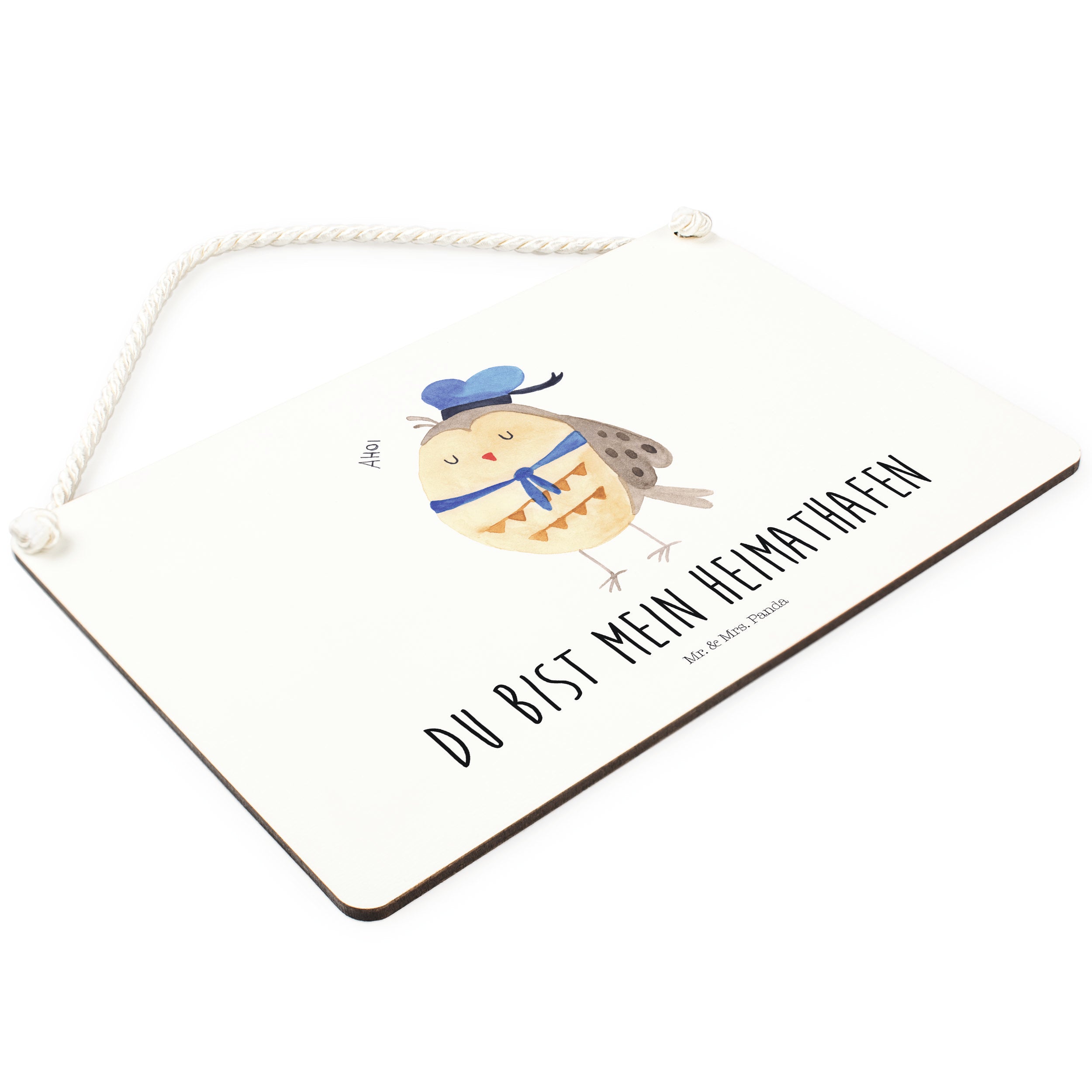 Deko Schild Eule Matrosen - mit Spruch - Weiß