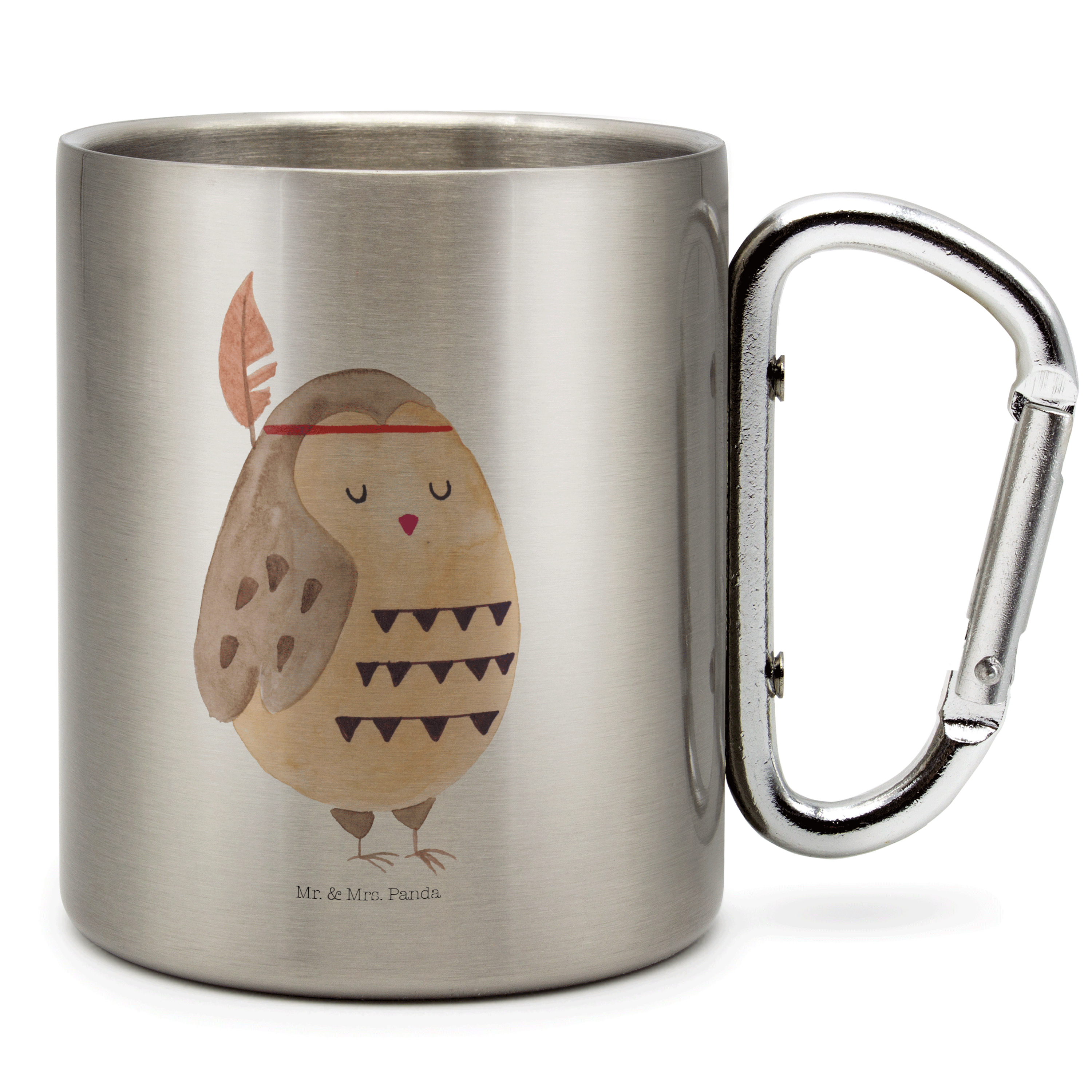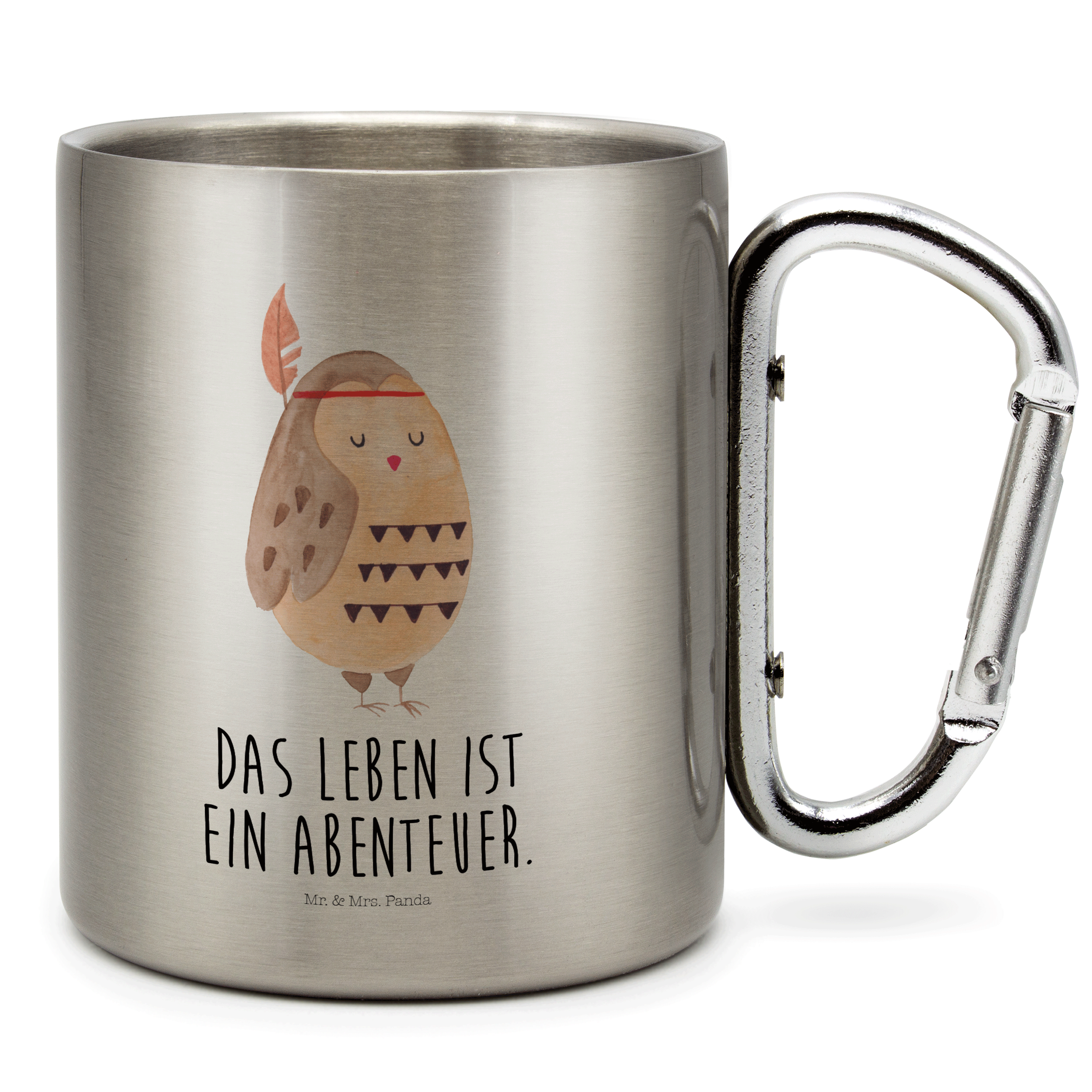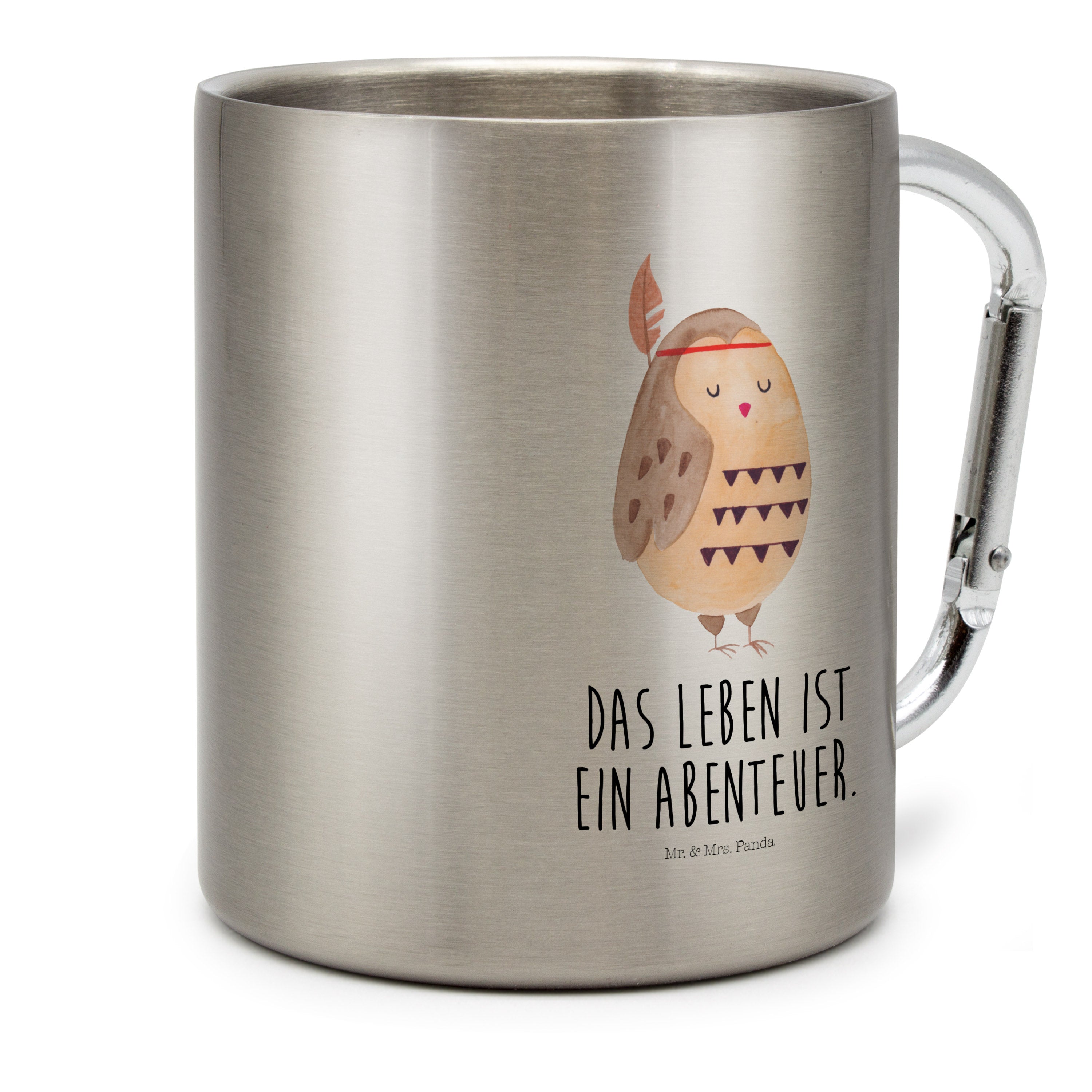 Edelstahlbecher Eule Federschmuck Edelstahltasse, Karabiner, Edelstahlbecher, Outdoor, Camping, Tasse, Becher, Eule, Eule Deko, Owl, Das Leben ist ein Abenteuer, Reisespruch, Federschmuck, Dekoration