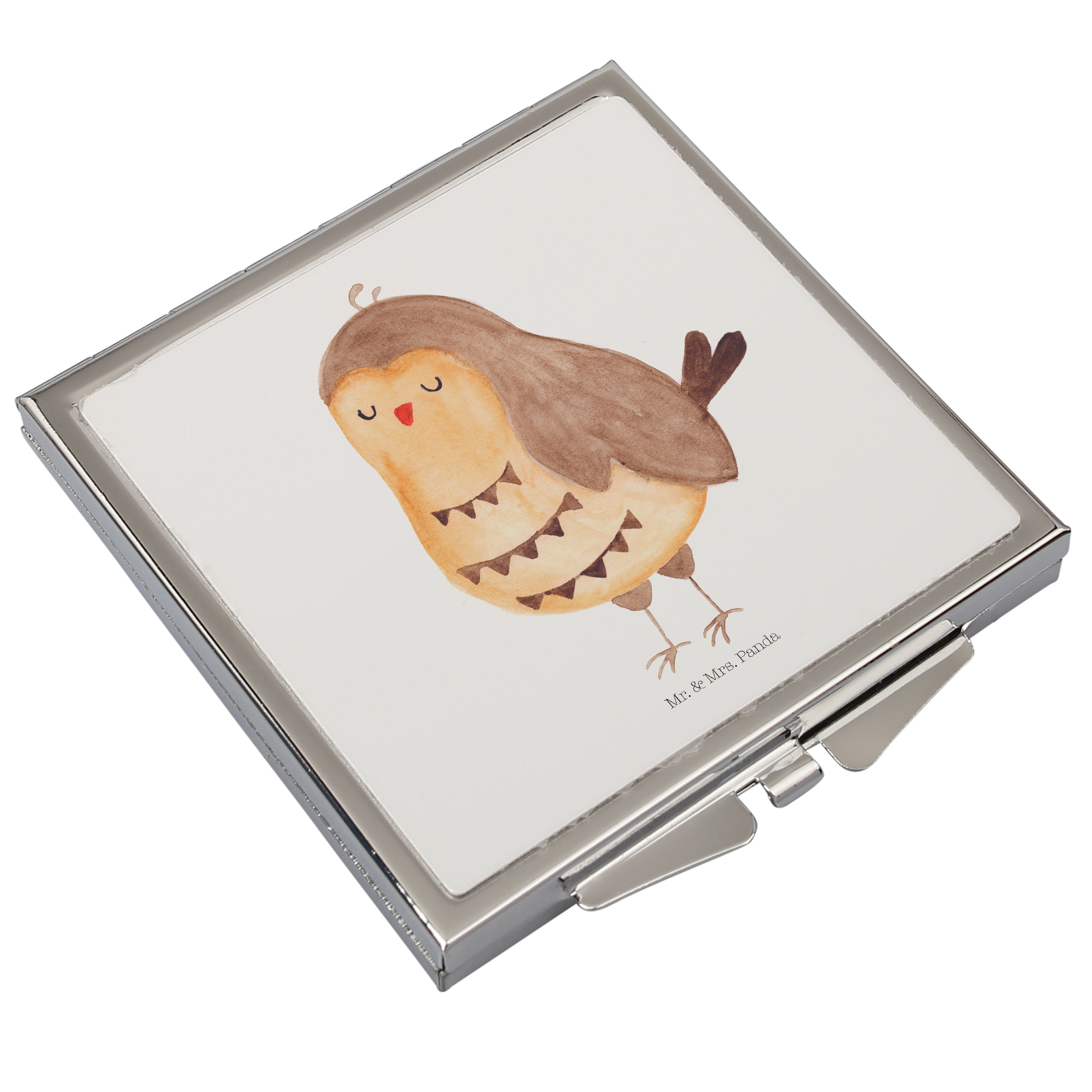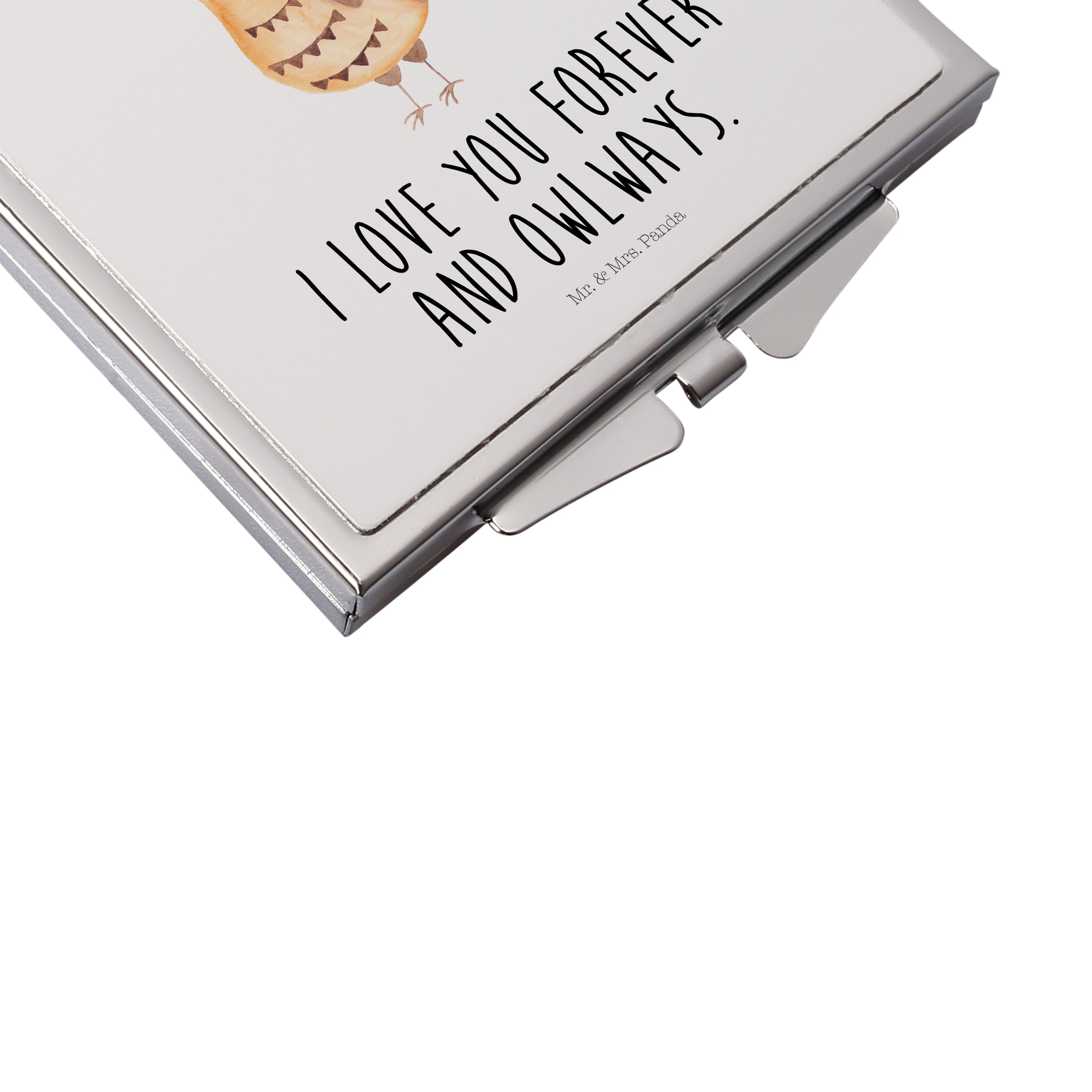 Handtaschenspiegel quadratisch Eule Zufrieden Spiegel, Handtasche, Quadrat, silber, schminken, Schminkspiegel, Eule, Eule Spruch, Eule deko, Owl, Liebe Spruch, Romantisch, Wortspiel lustig, Spruch schön, Geschenk Hochzeitstag