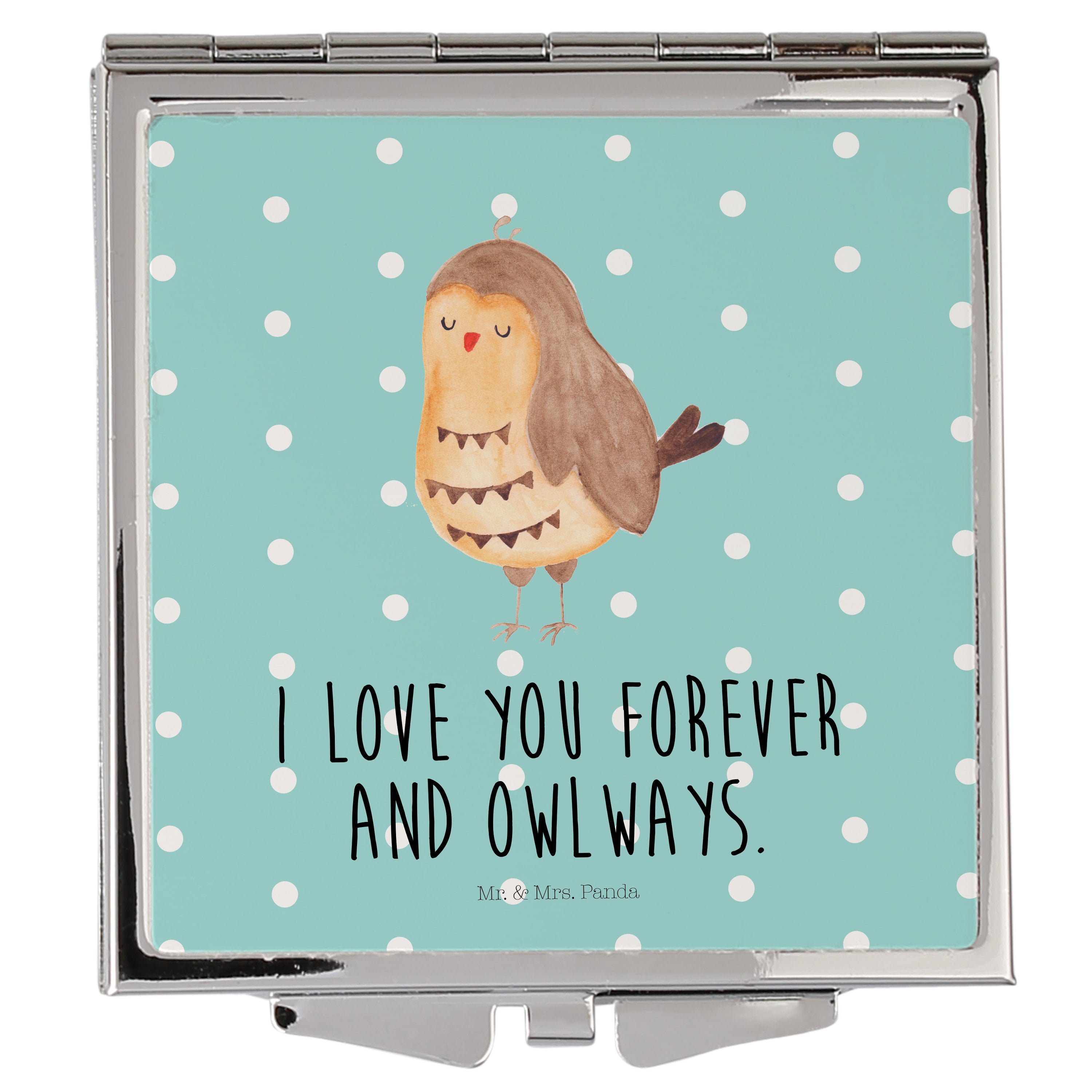 Handtaschenspiegel quadratisch Eule Zufrieden - mit Spruch - Türkis Pastell