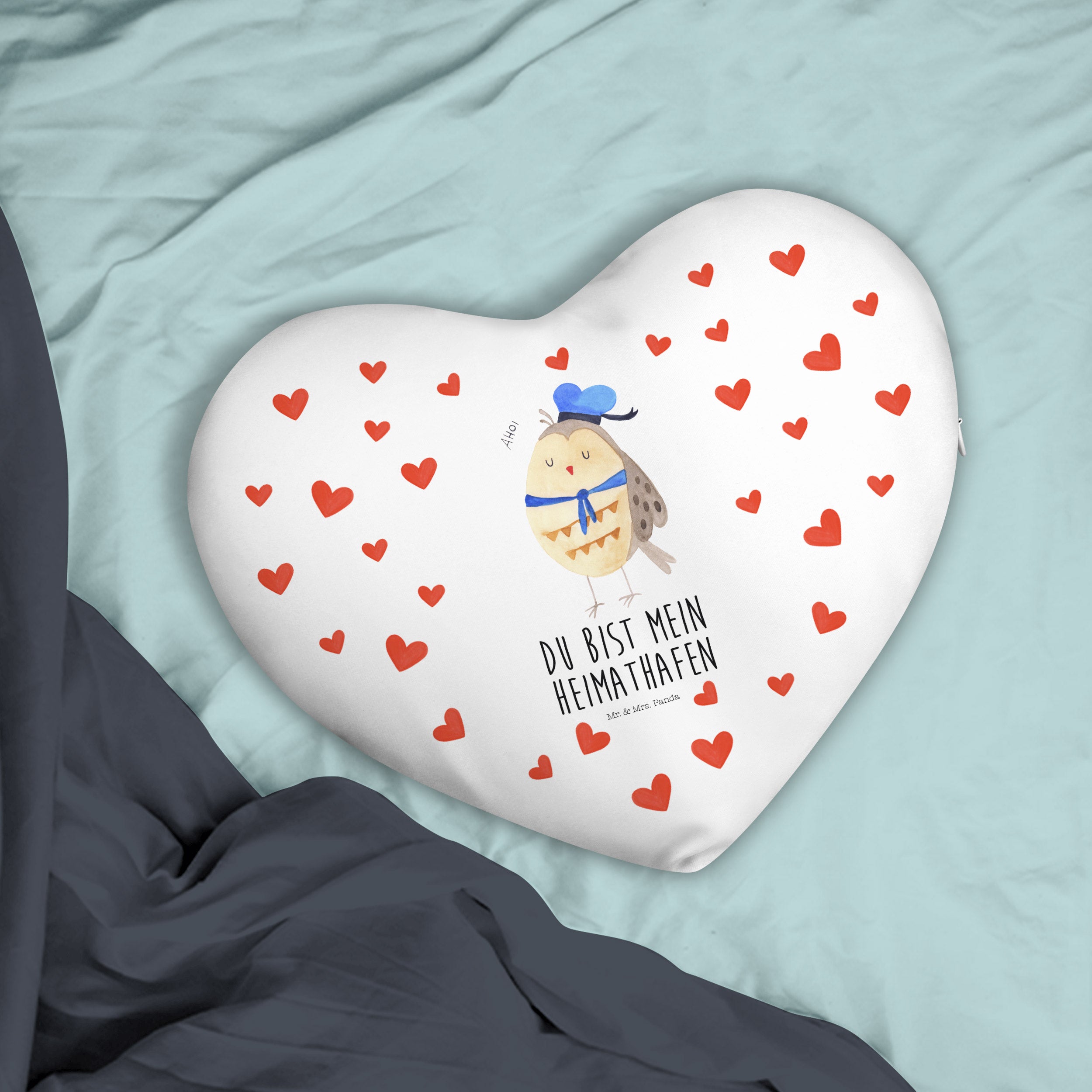 Herzkissen Eule Matrosen Kissen, Herzkissen, Herzform, Herz, Dekokissen, Eule, Eule Spruch, Eule Deko, Owl, Wortspiel lustig, Matrose, Freundin, Ehe, Seefahrer, Heimathafen, Hochzeitstag Geschenk