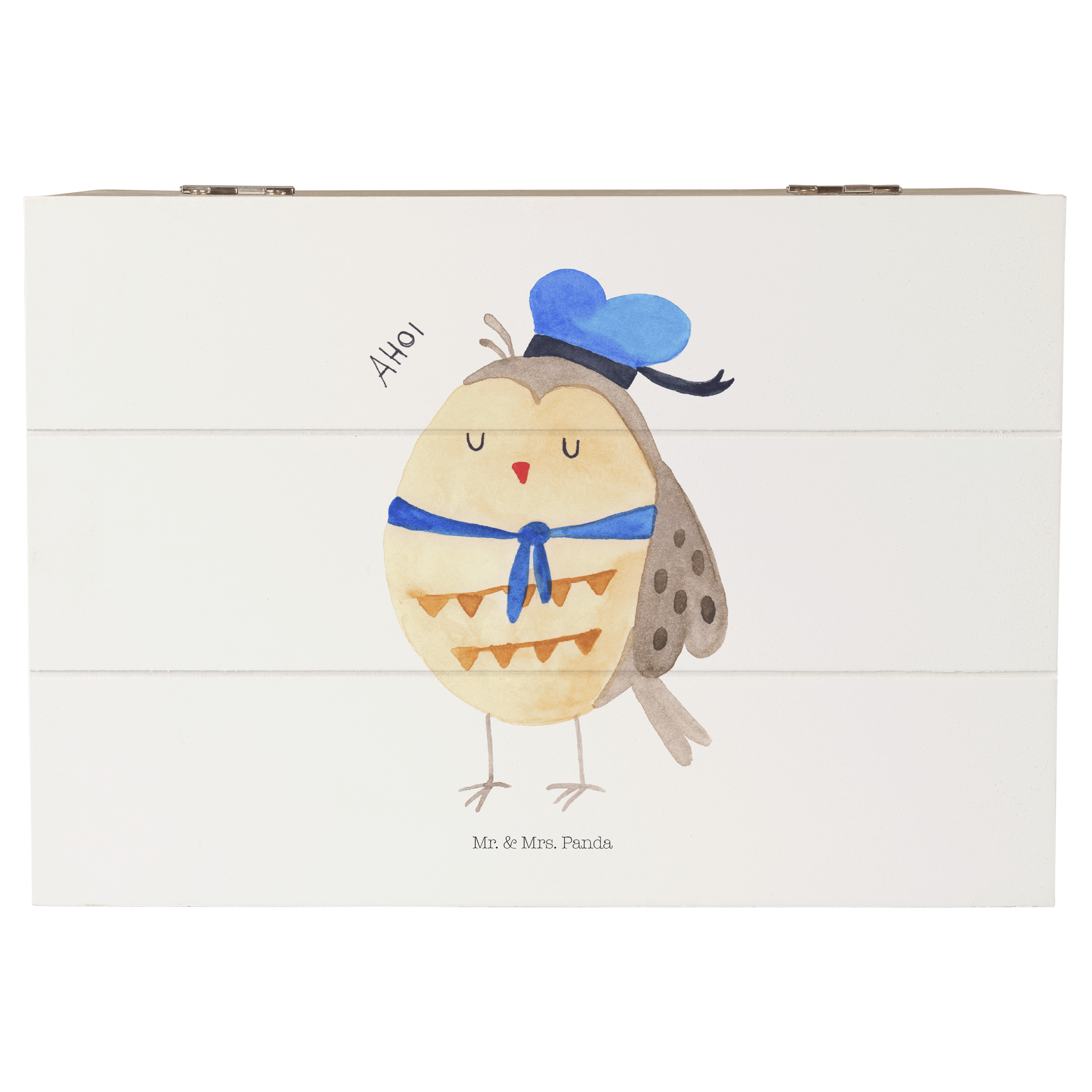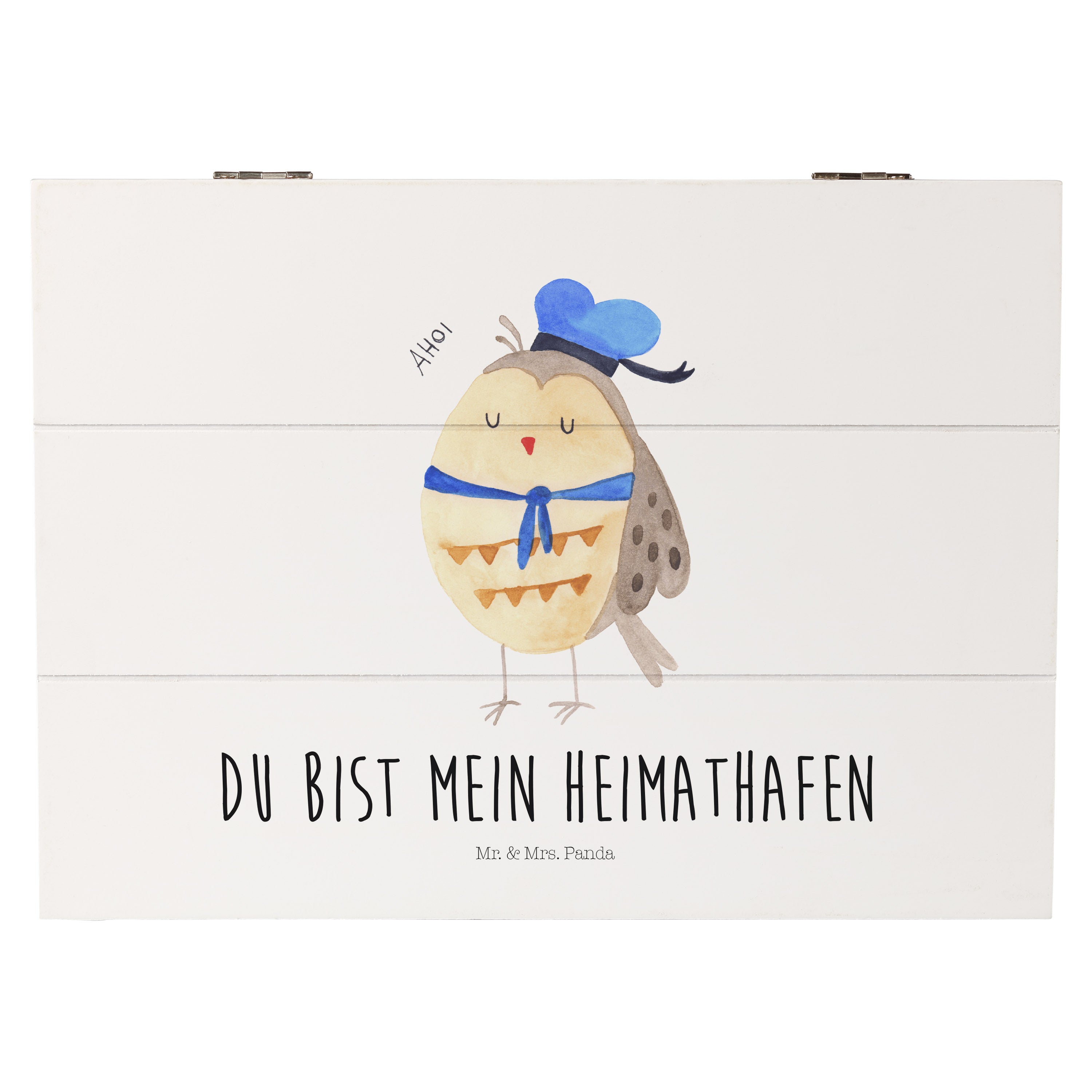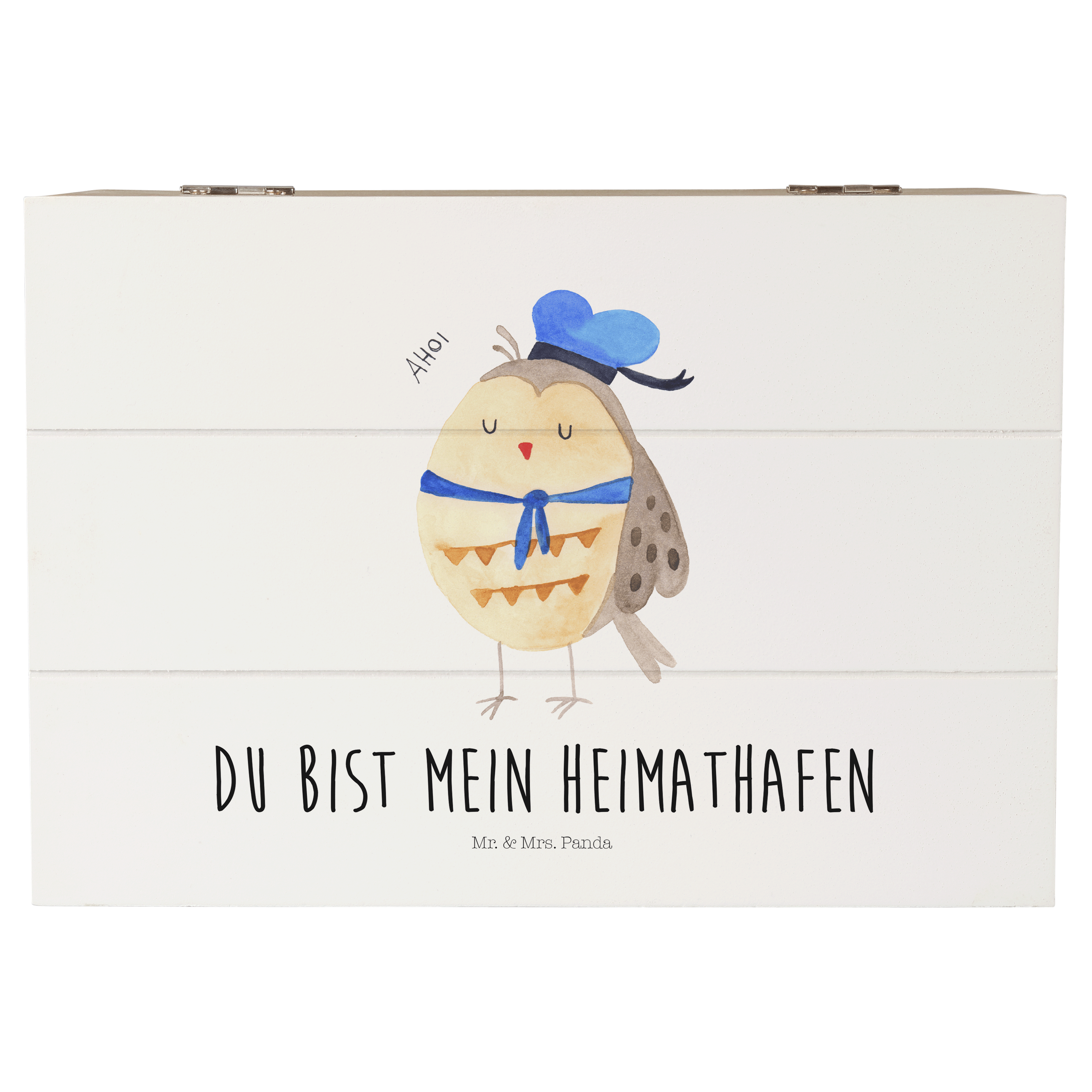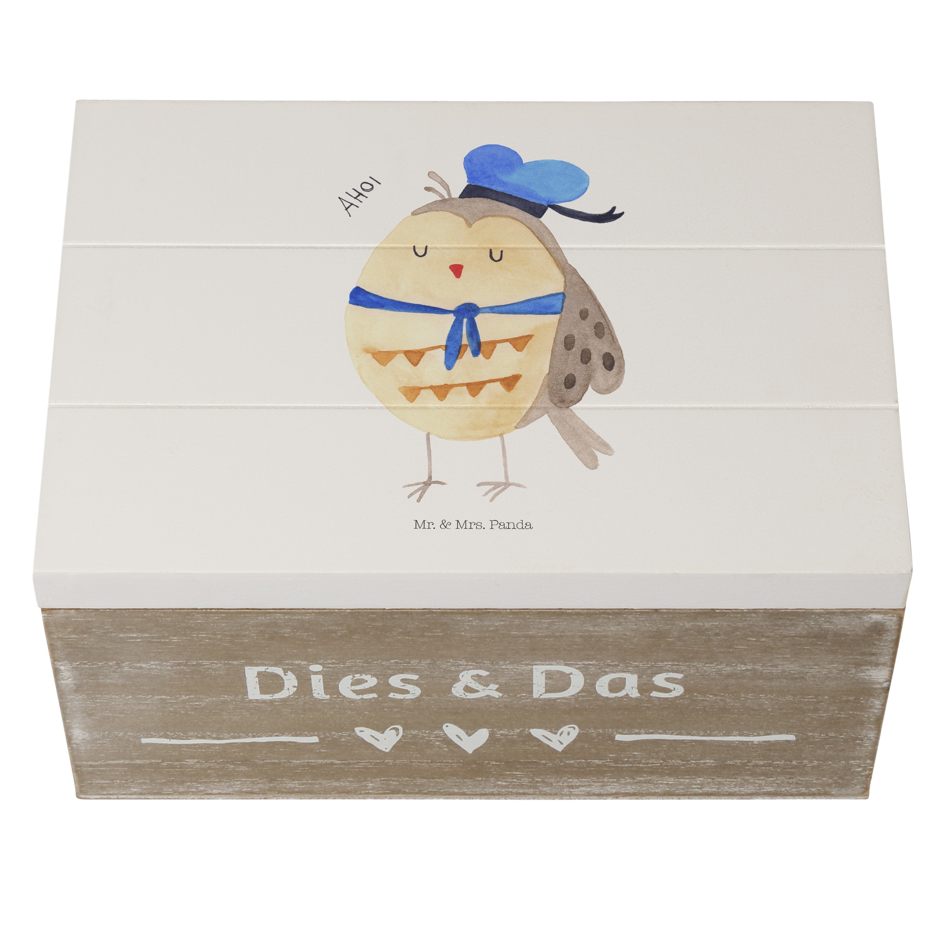 Holzkiste Eule Matrosen - 25 x 18 cm - mit Spruch - Weiß