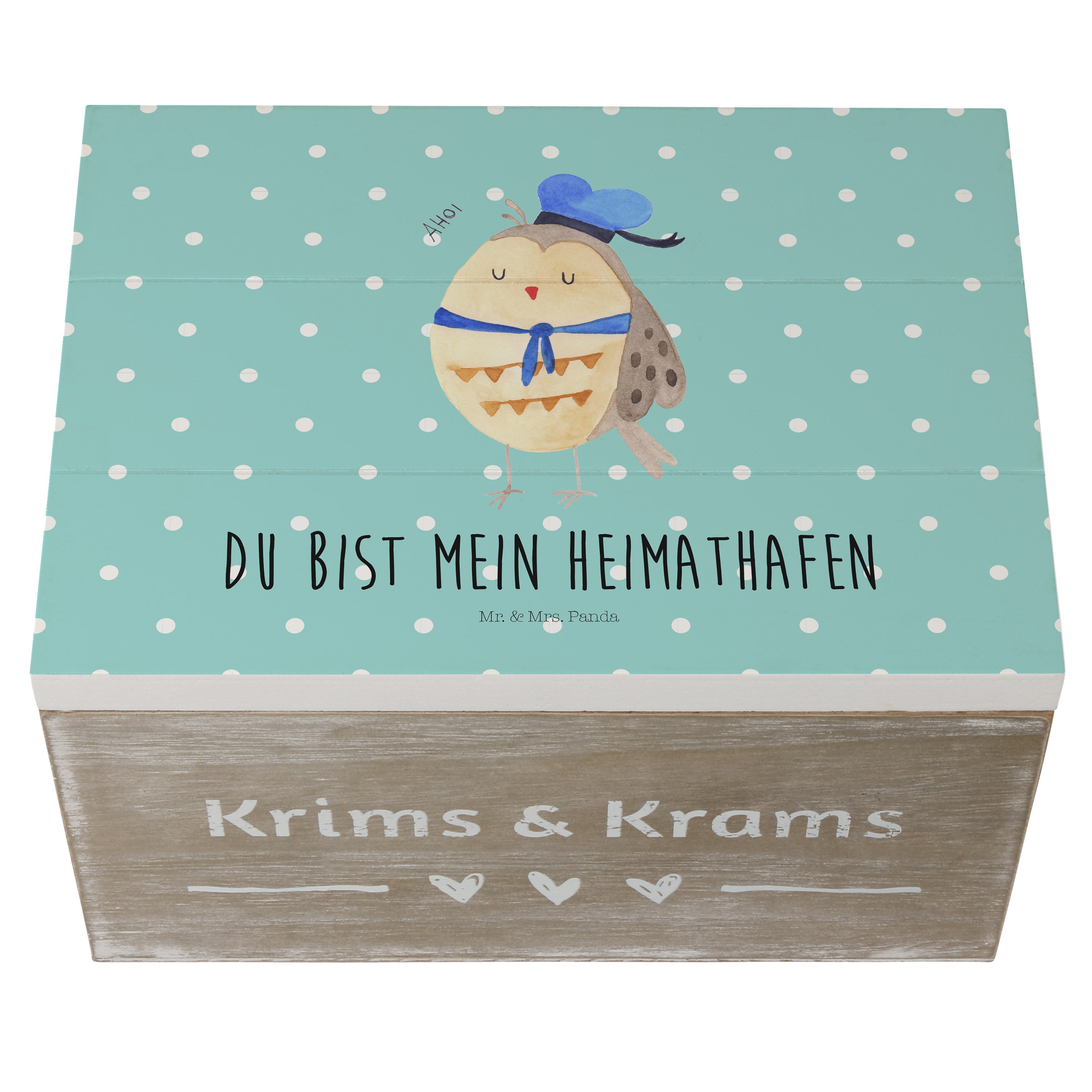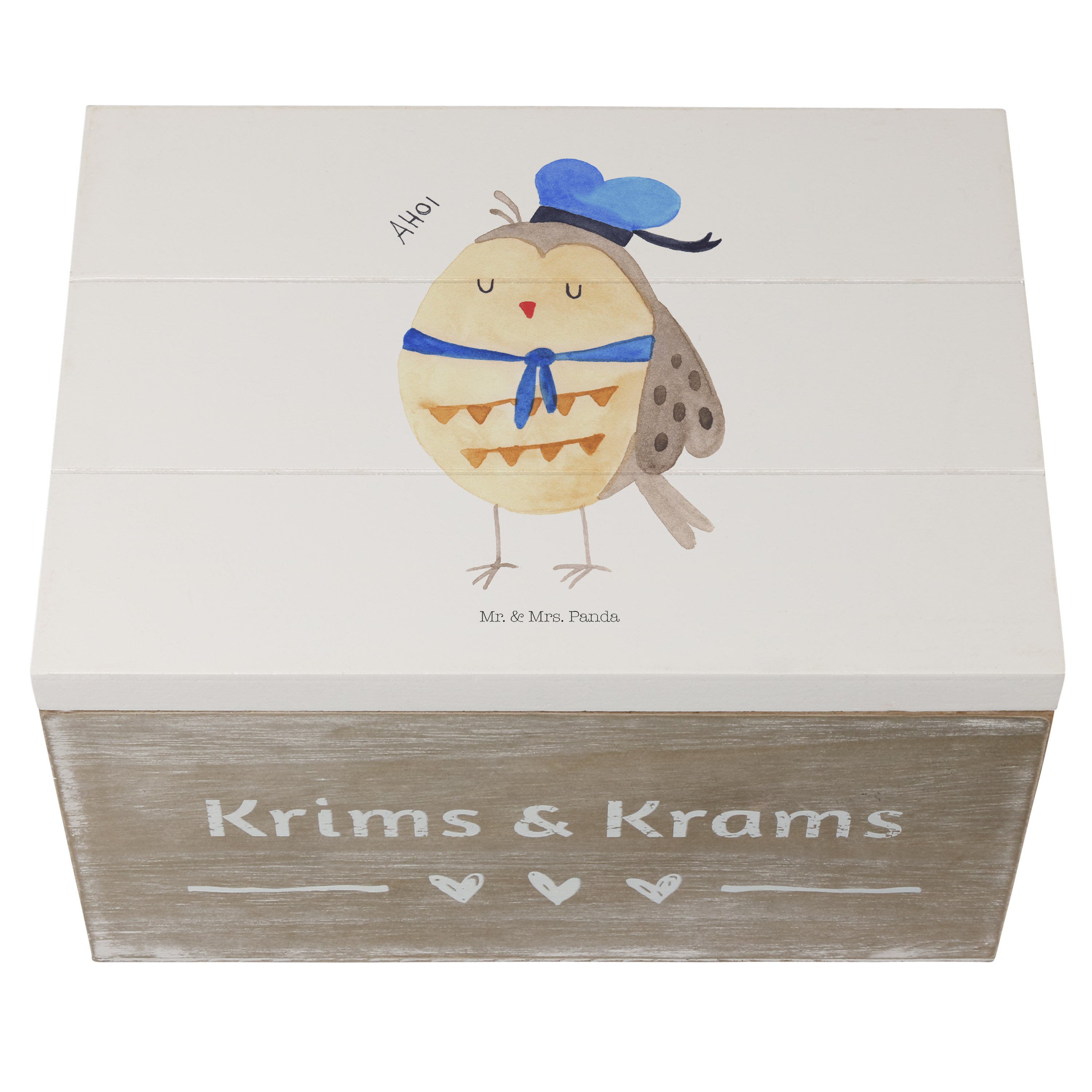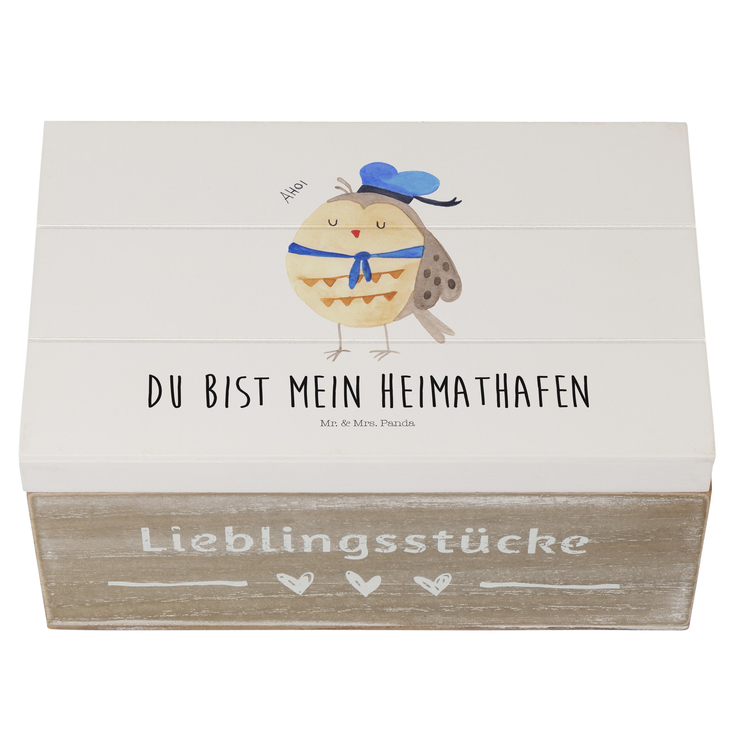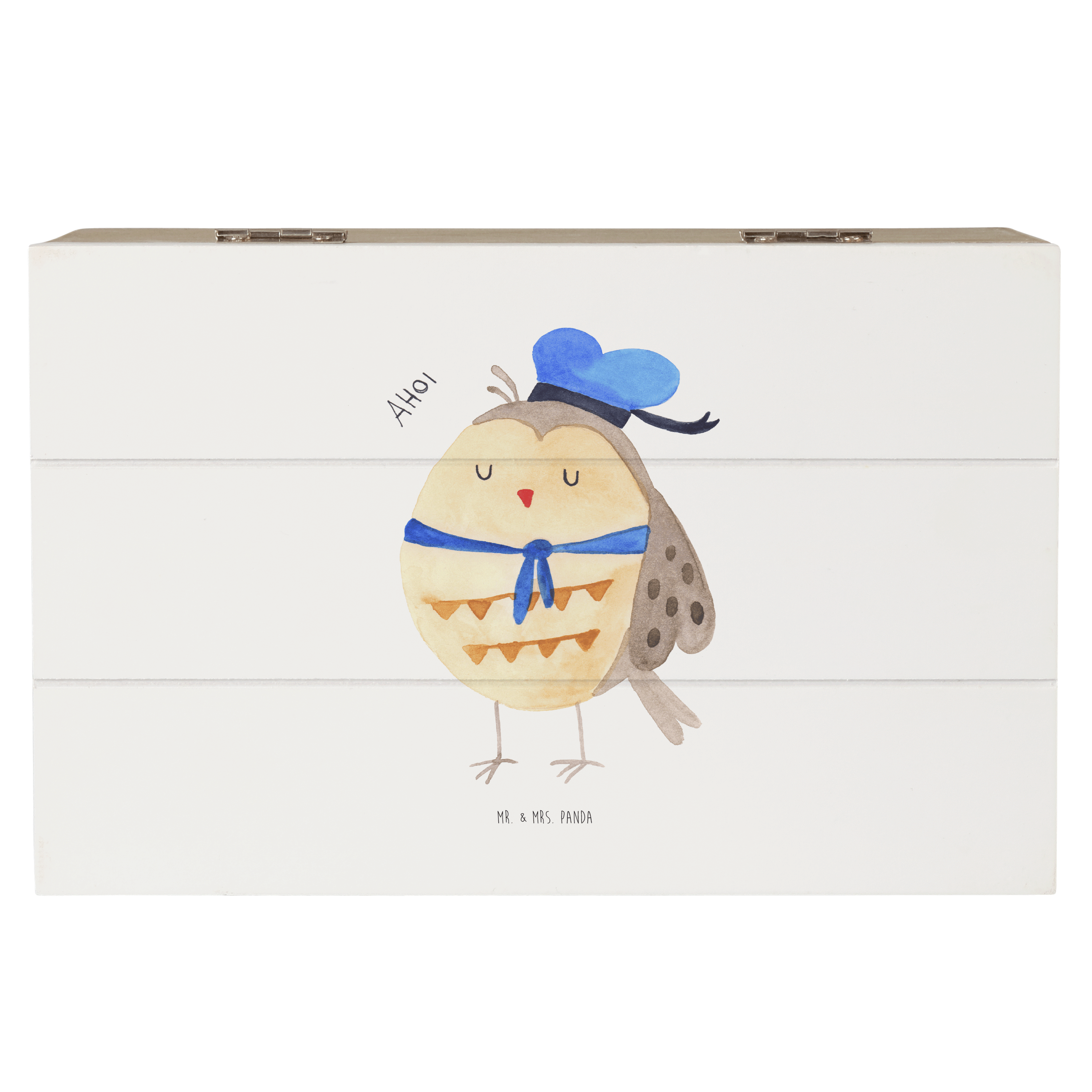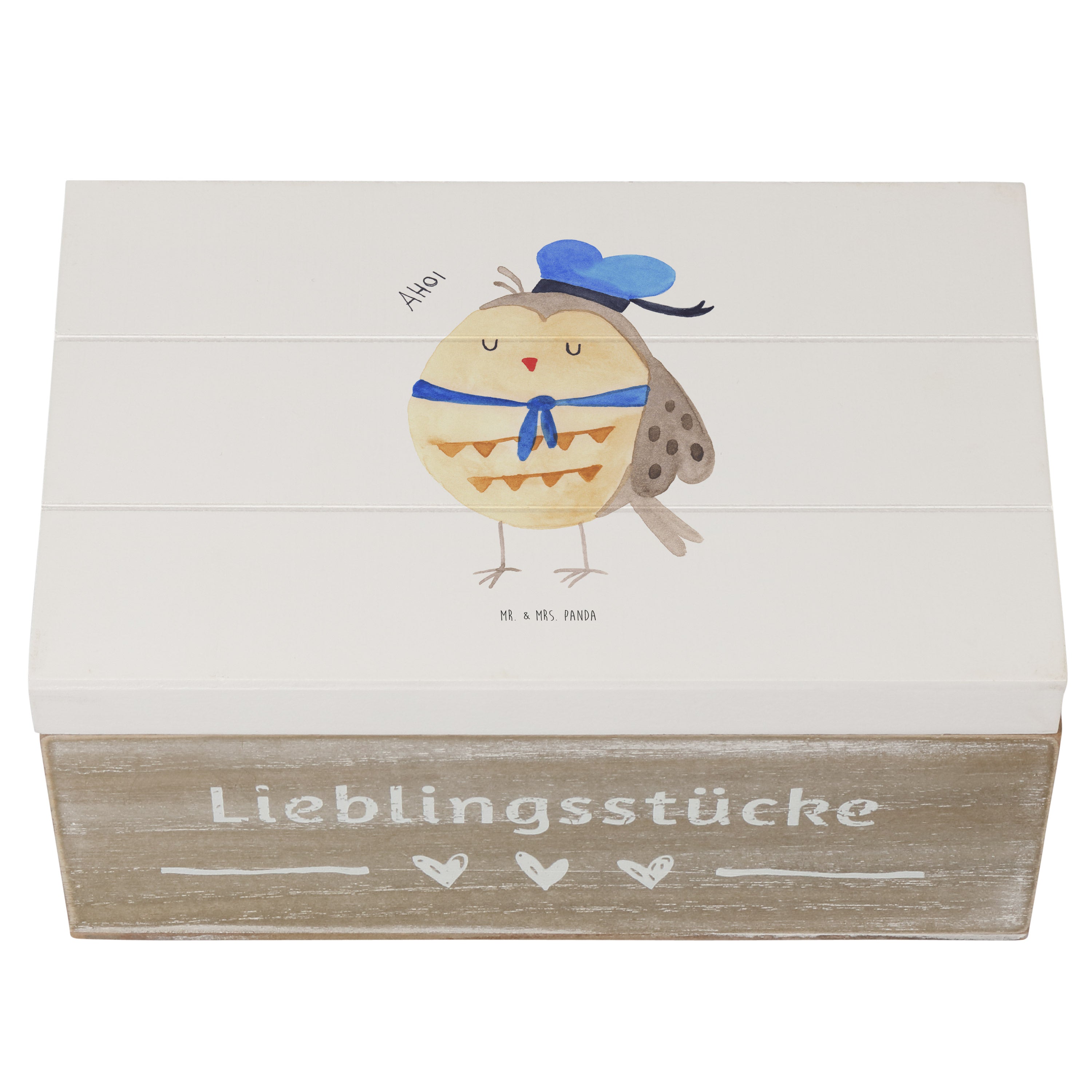 Holzkiste Eule Matrosen - 25 x 18 cm - mit Spruch - Weiß