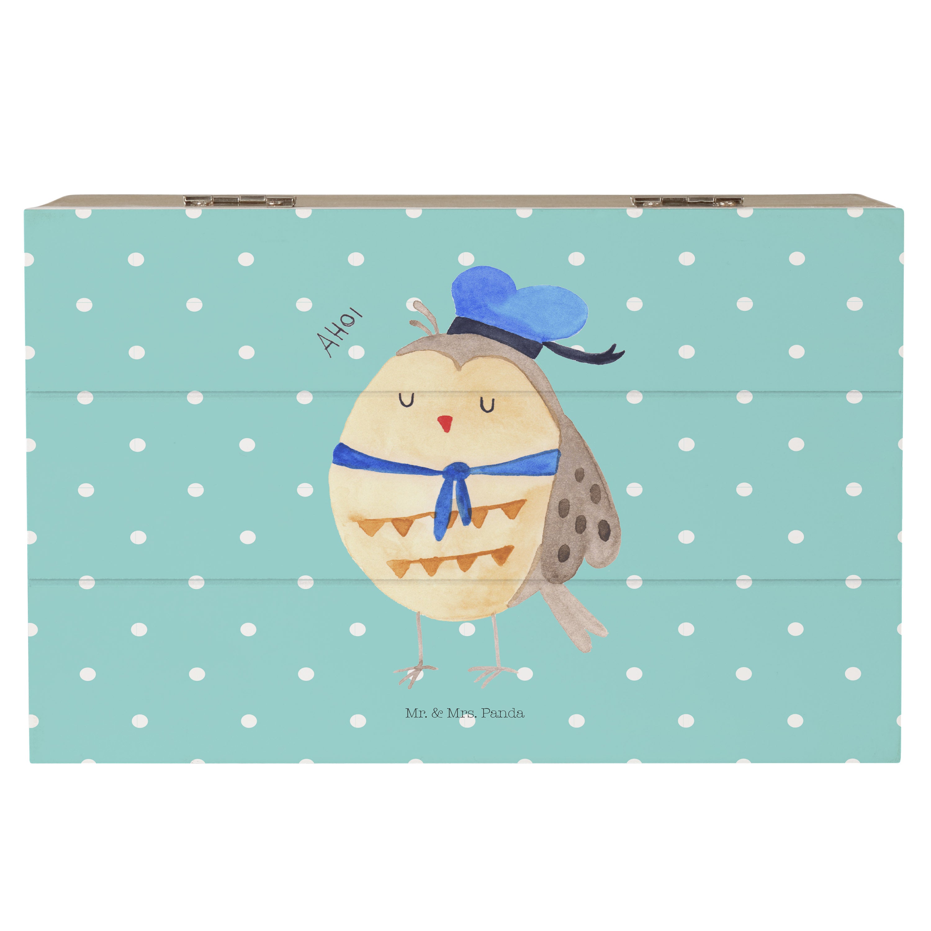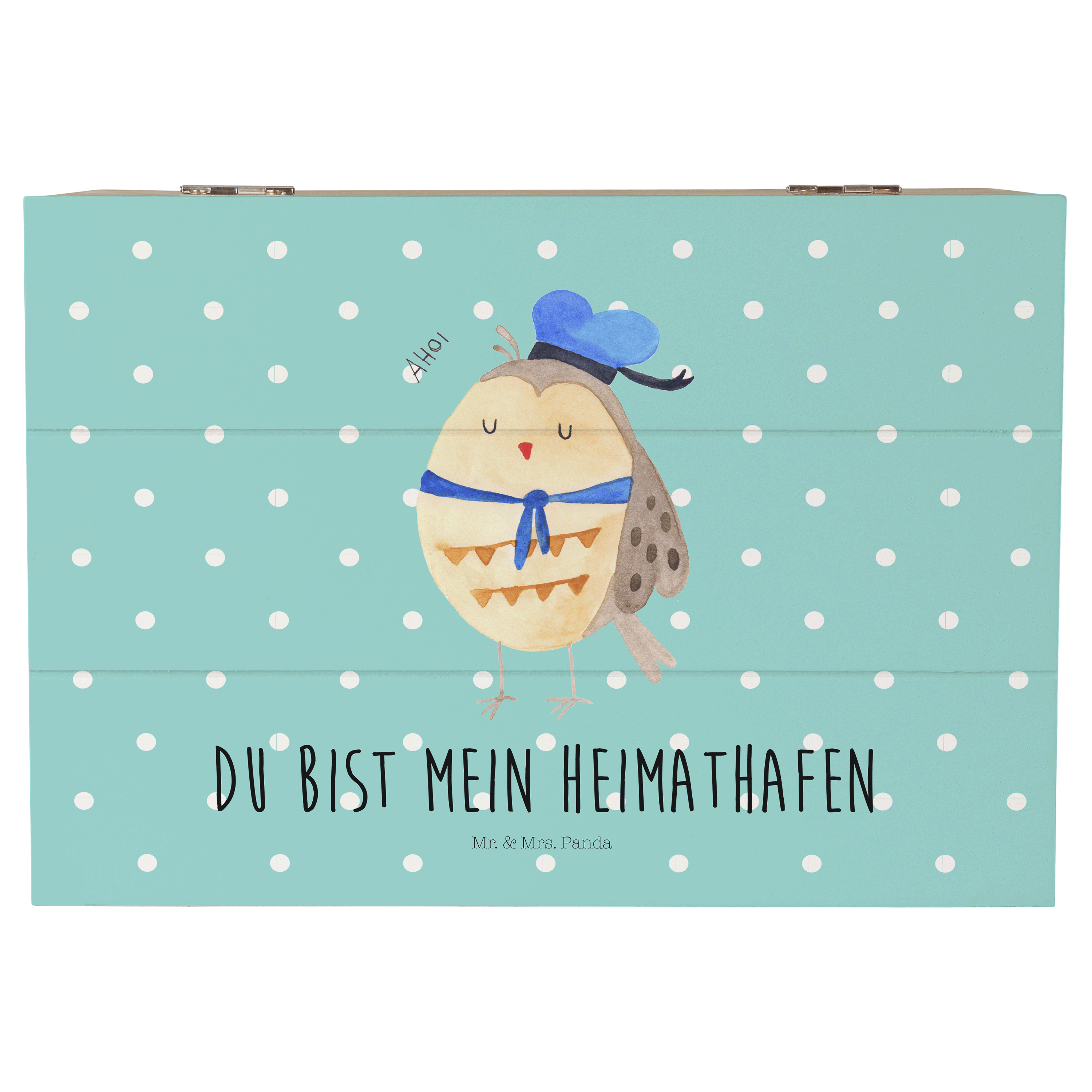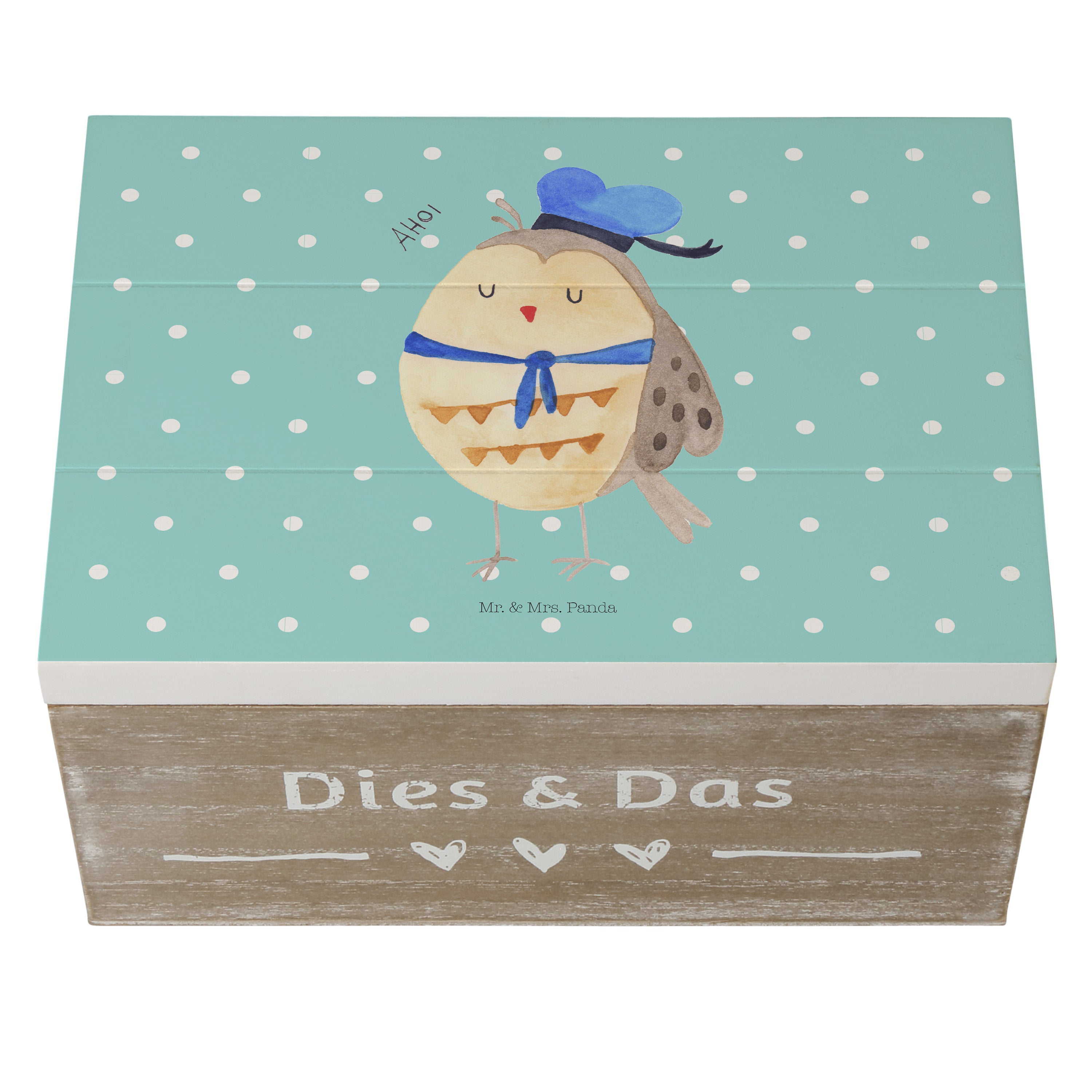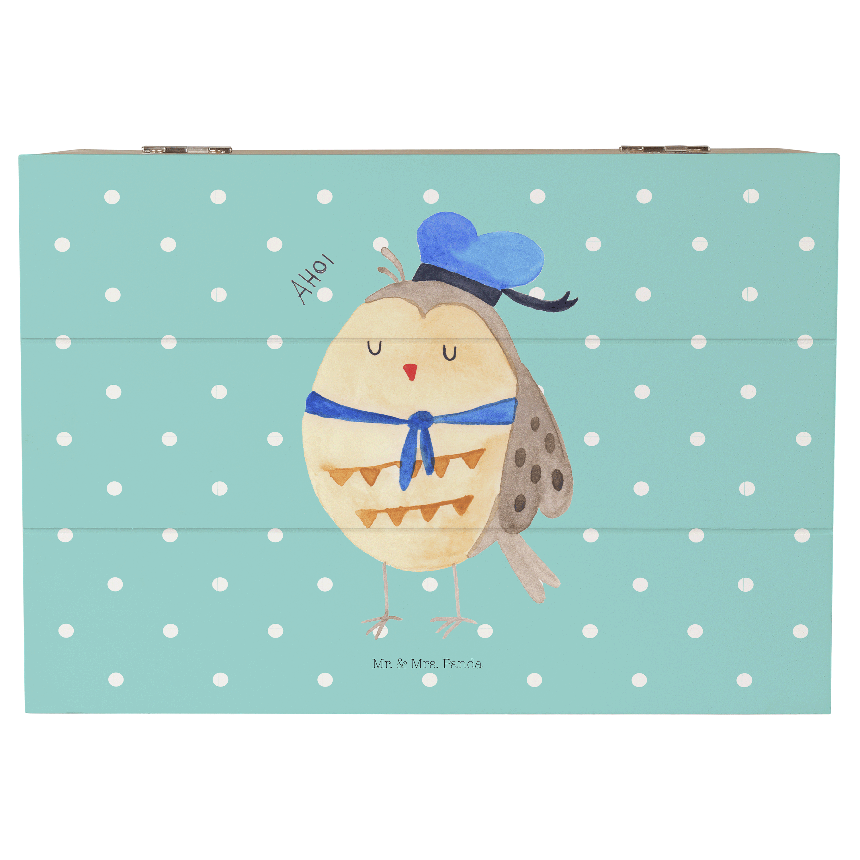 Holzkiste Eule Matrosen - 25 x 18 cm - mit Spruch - Weiß