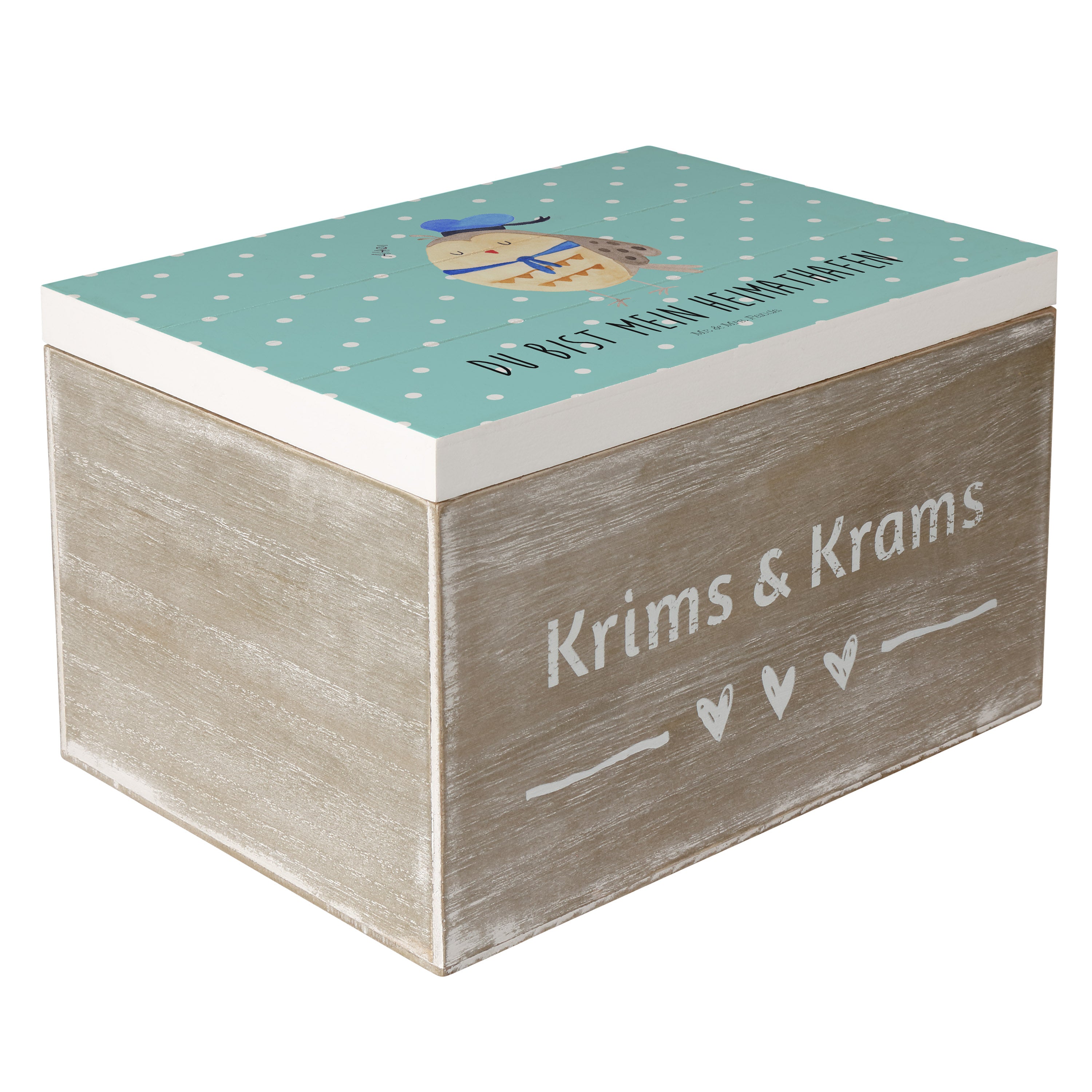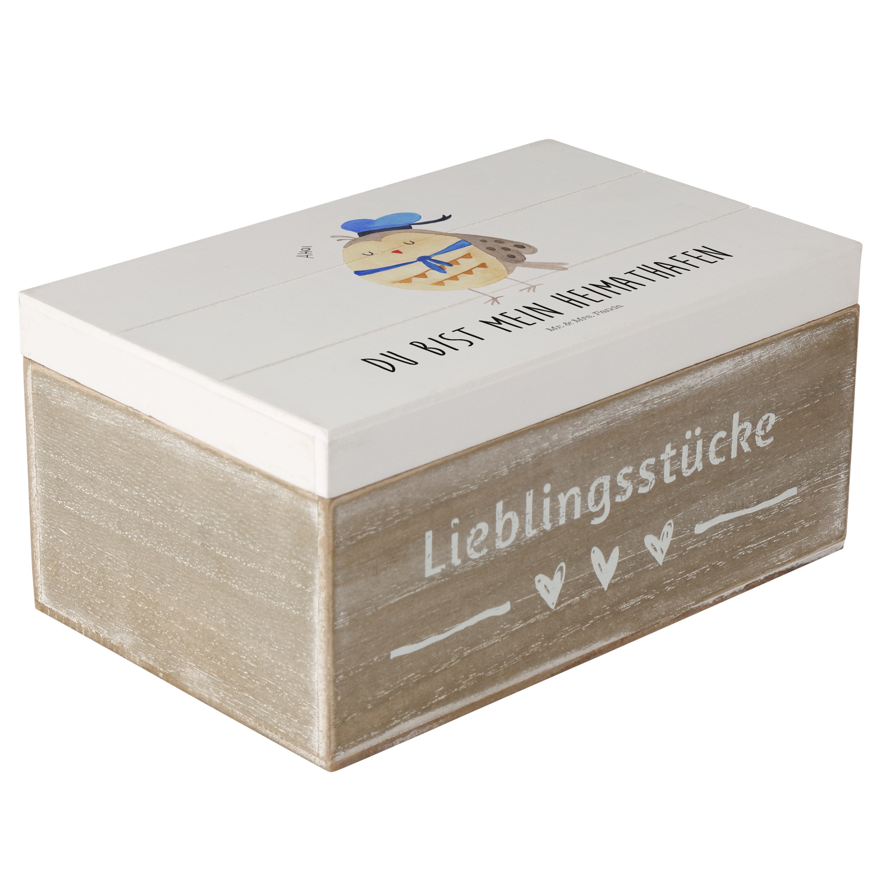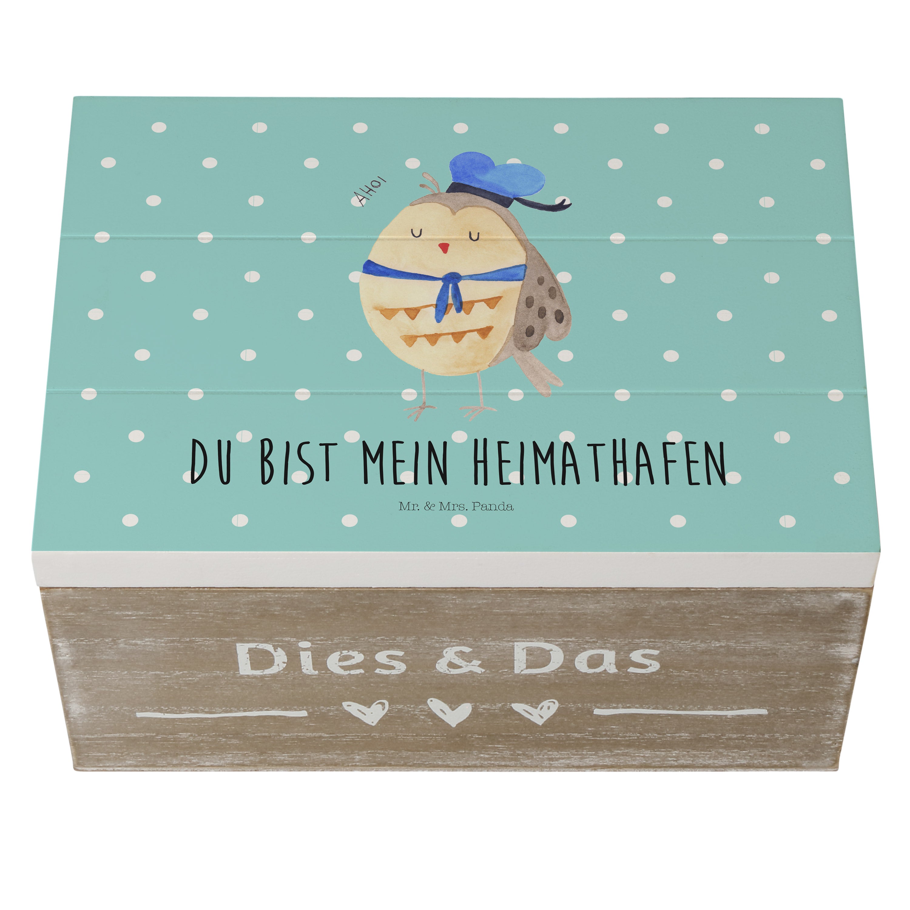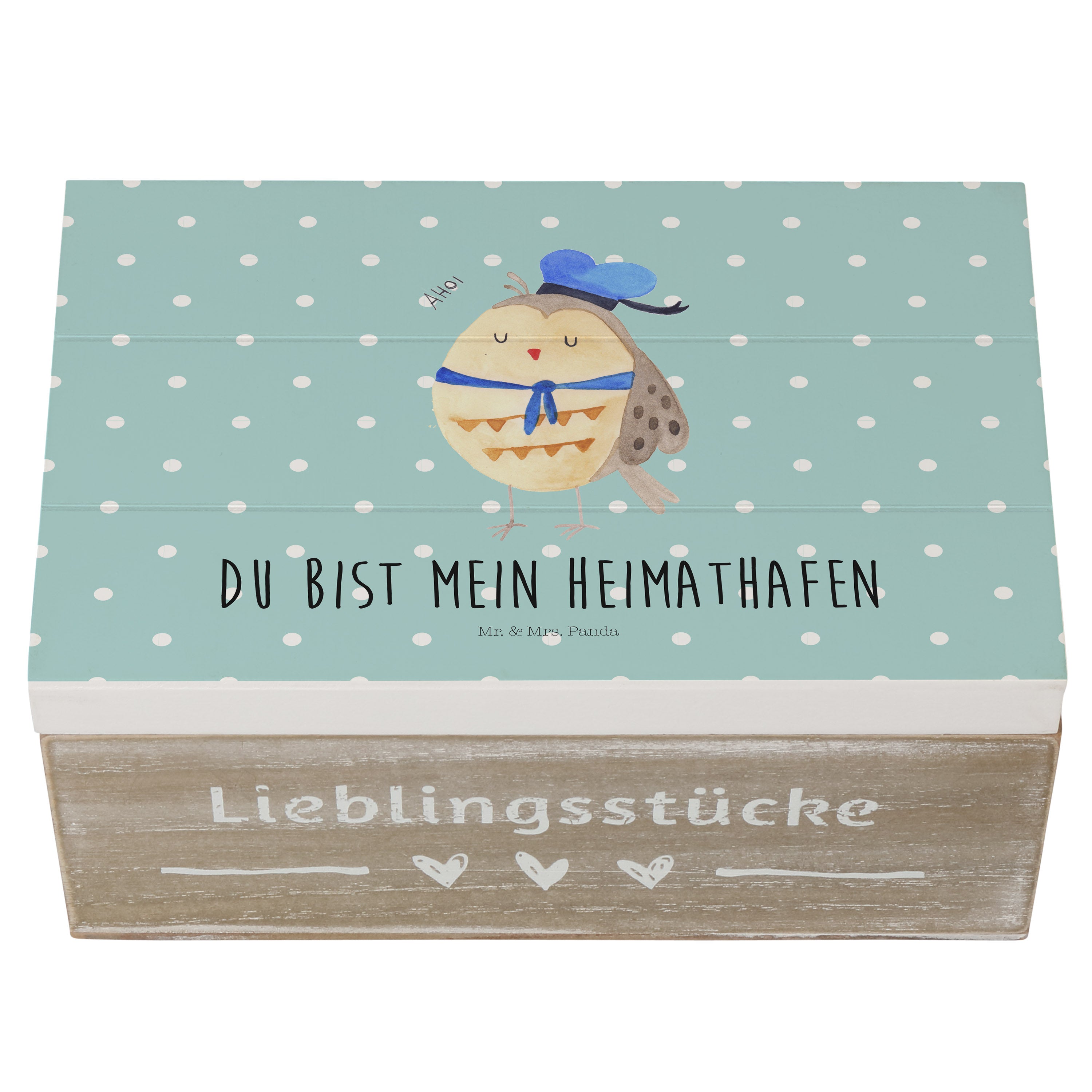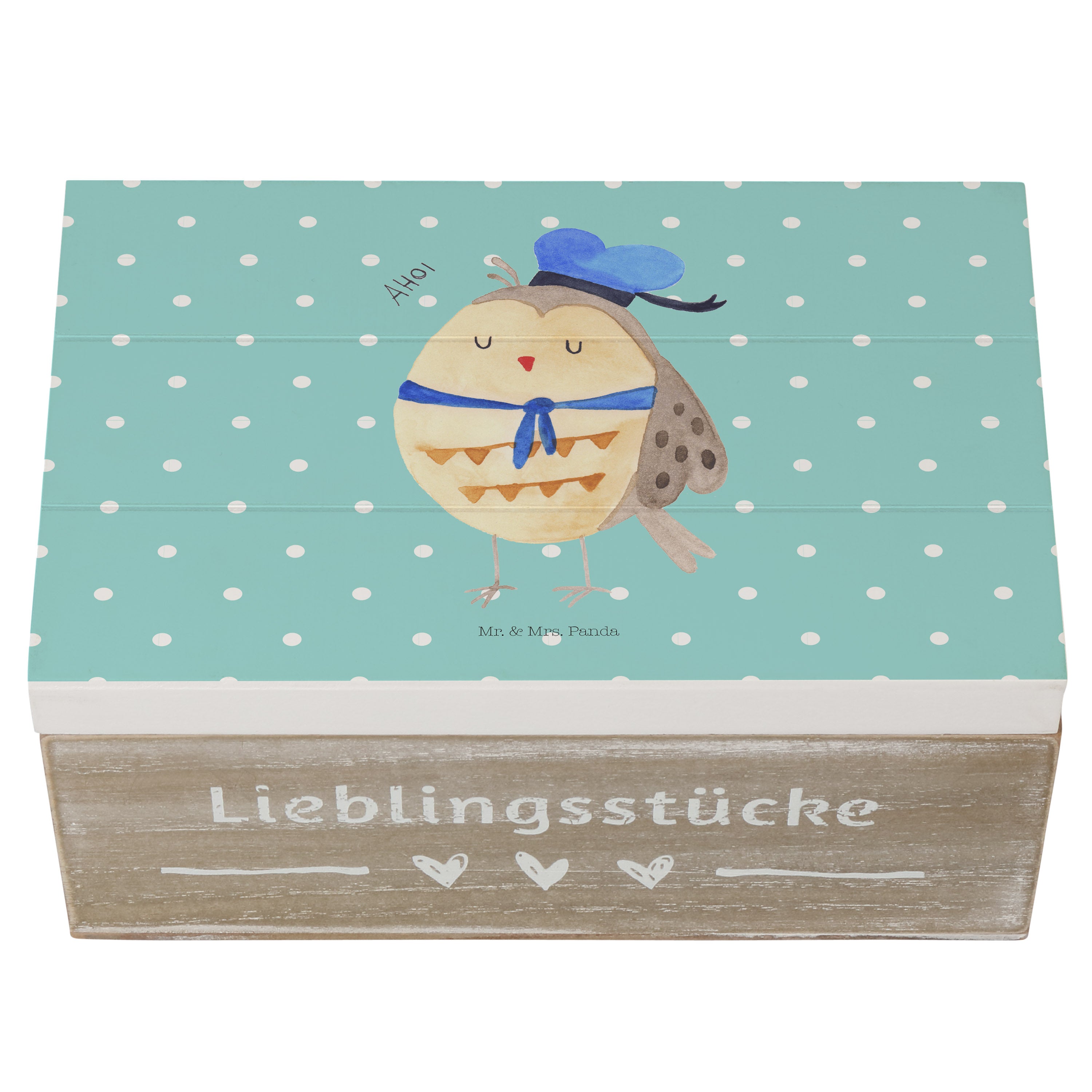 Holzkiste Eule Matrosen - 25 x 18 cm - mit Spruch - Weiß