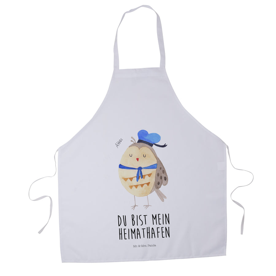 Kochschürze Eule Matrosen - mit Spruch - Weiß