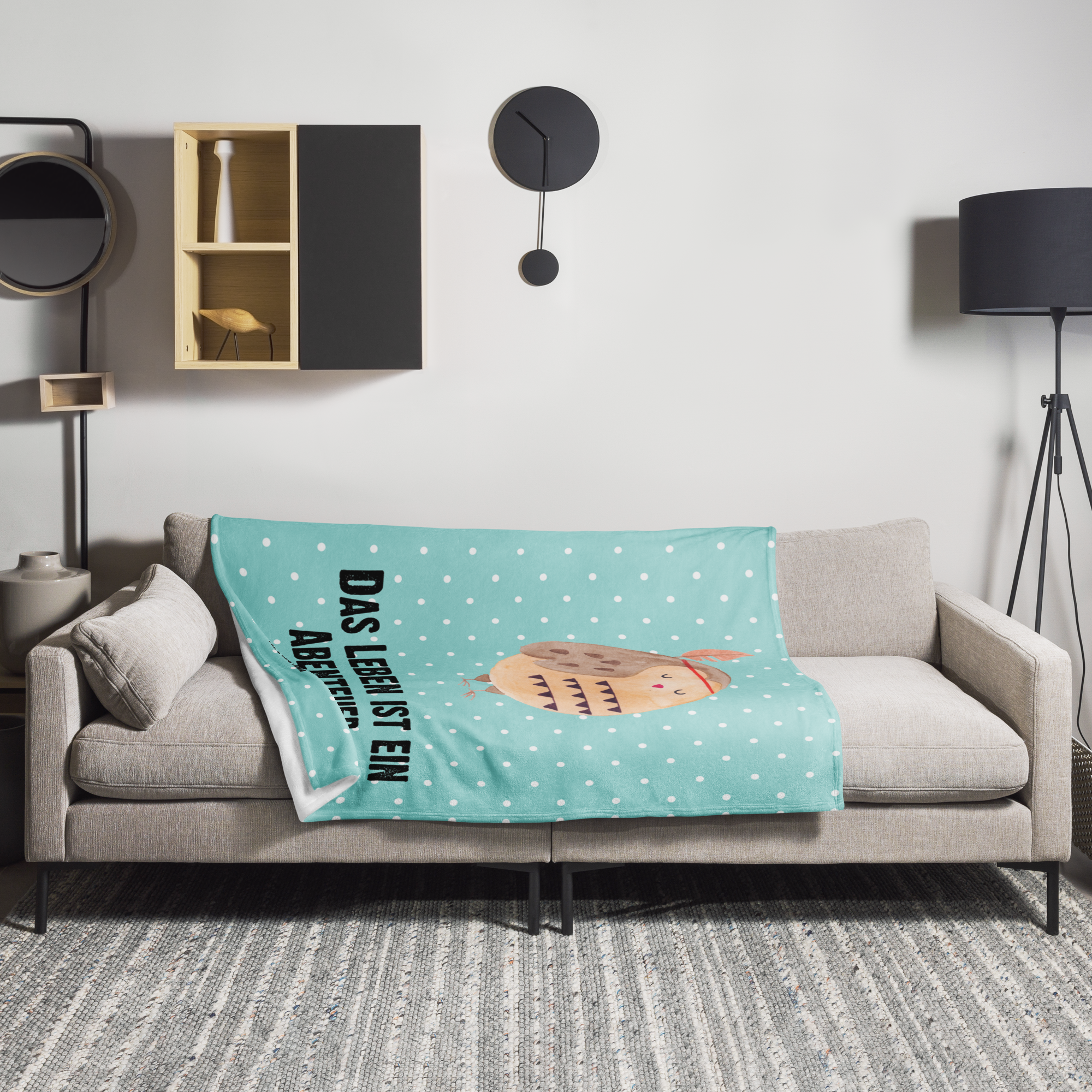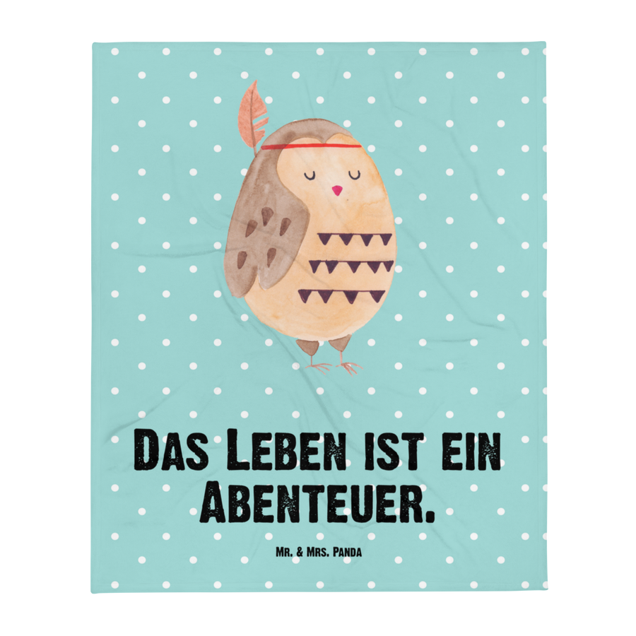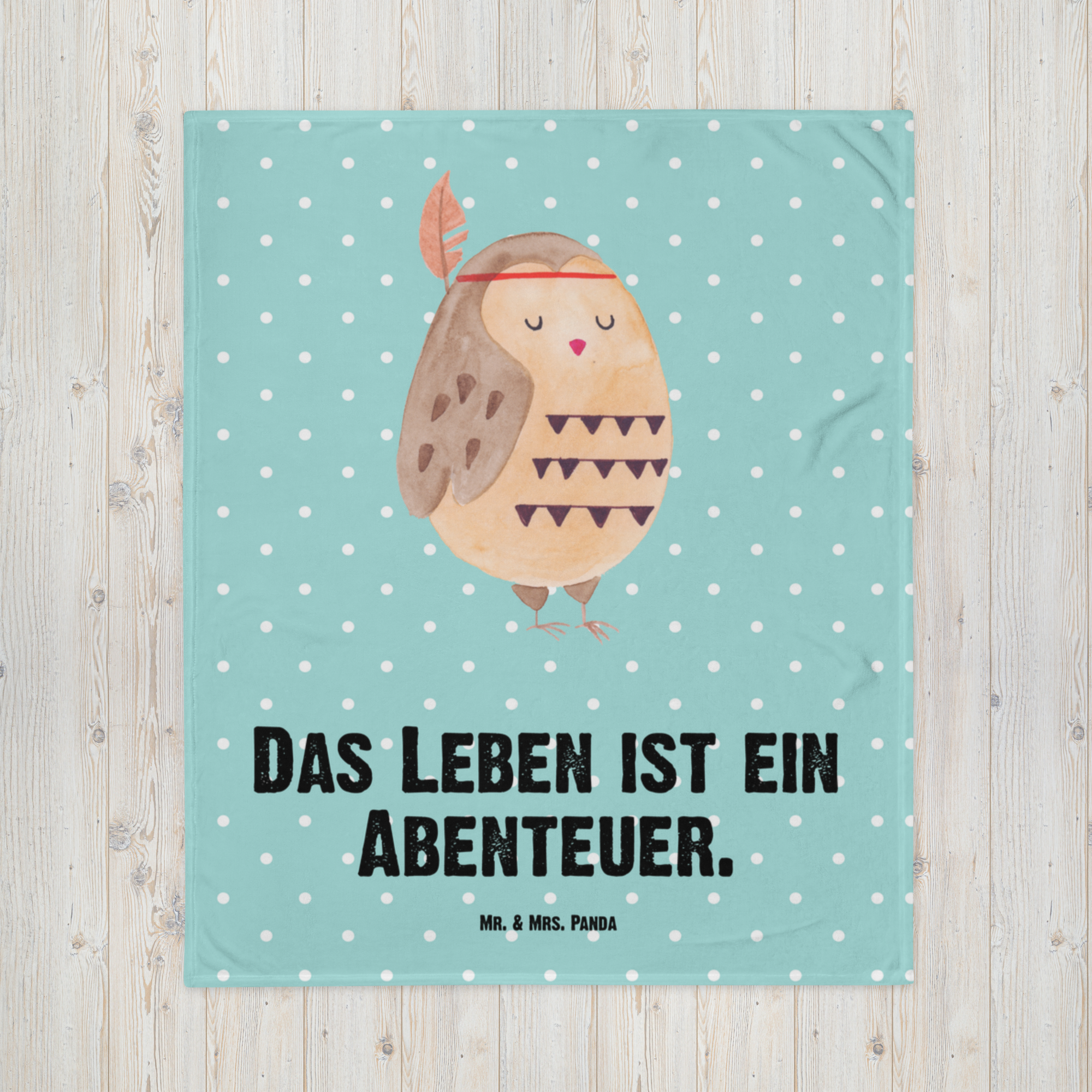 Kuscheldecke Eule Federschmuck Decke, Wohndecke, Tagesdecke, Wolldecke, Sofadecke, Eule, Eule Deko, Owl, Das Leben ist ein Abenteuer, Reisespruch, Federschmuck, Dekoration