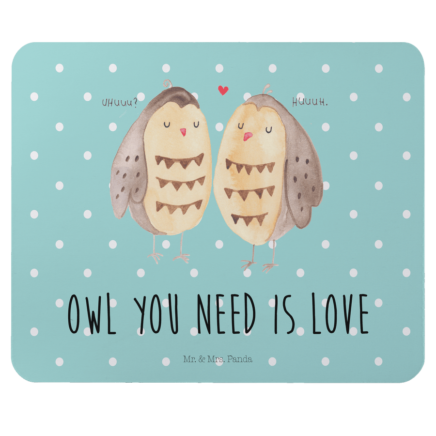 Mauspad Eule Liebe - mit Spruch - Türkis Pastell