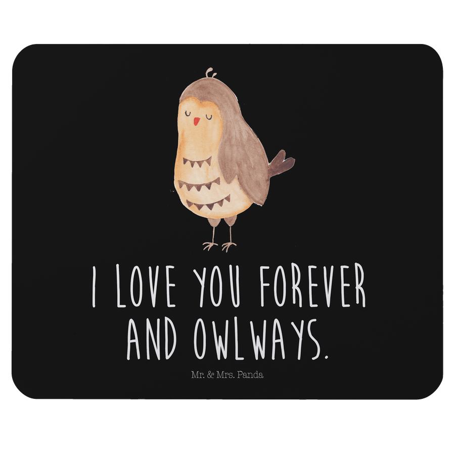 Mauspad Eule Zufrieden - mit Spruch - Schwarz