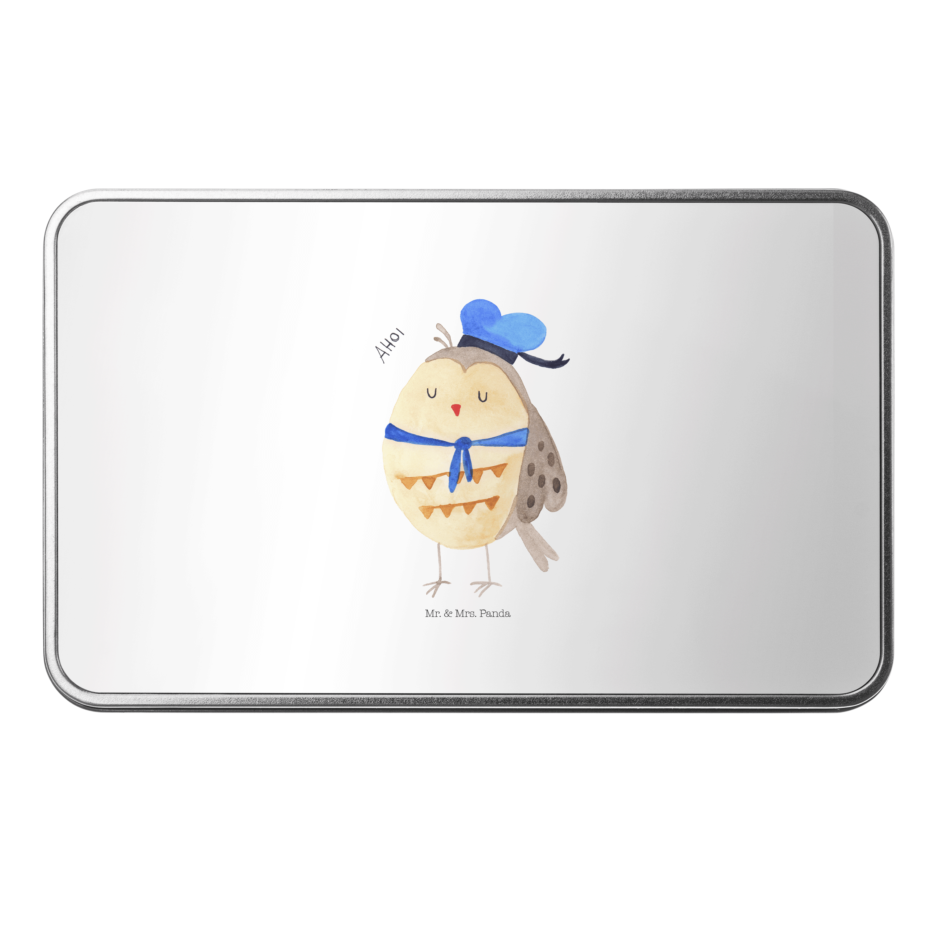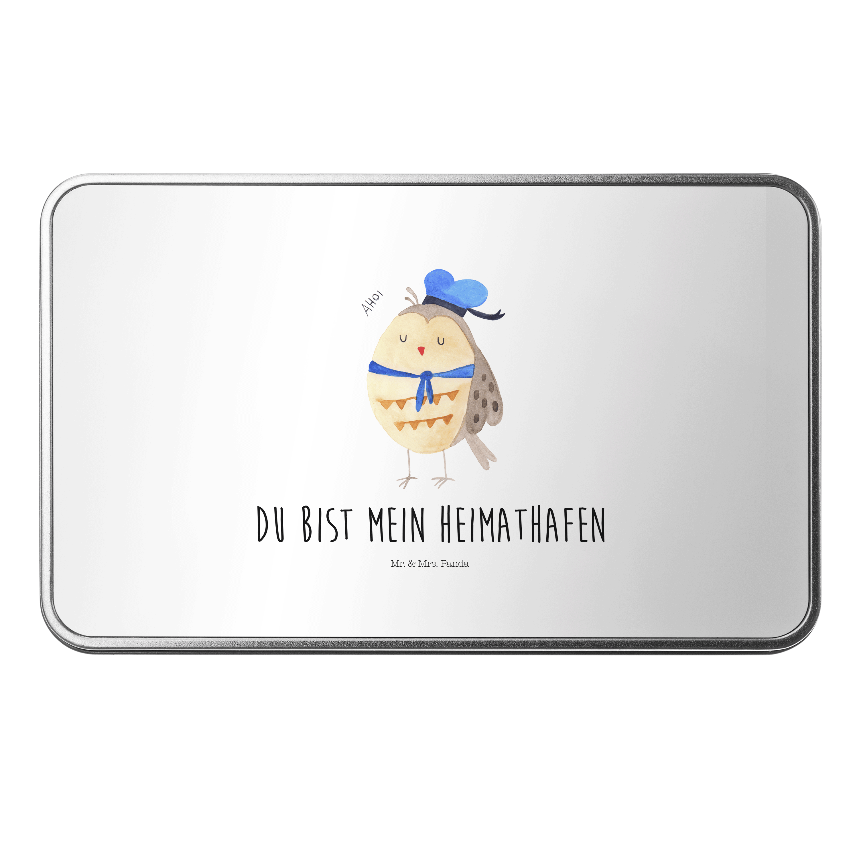 Metalldose rechteckig Eule Matrosen - mit Spruch - Weiß