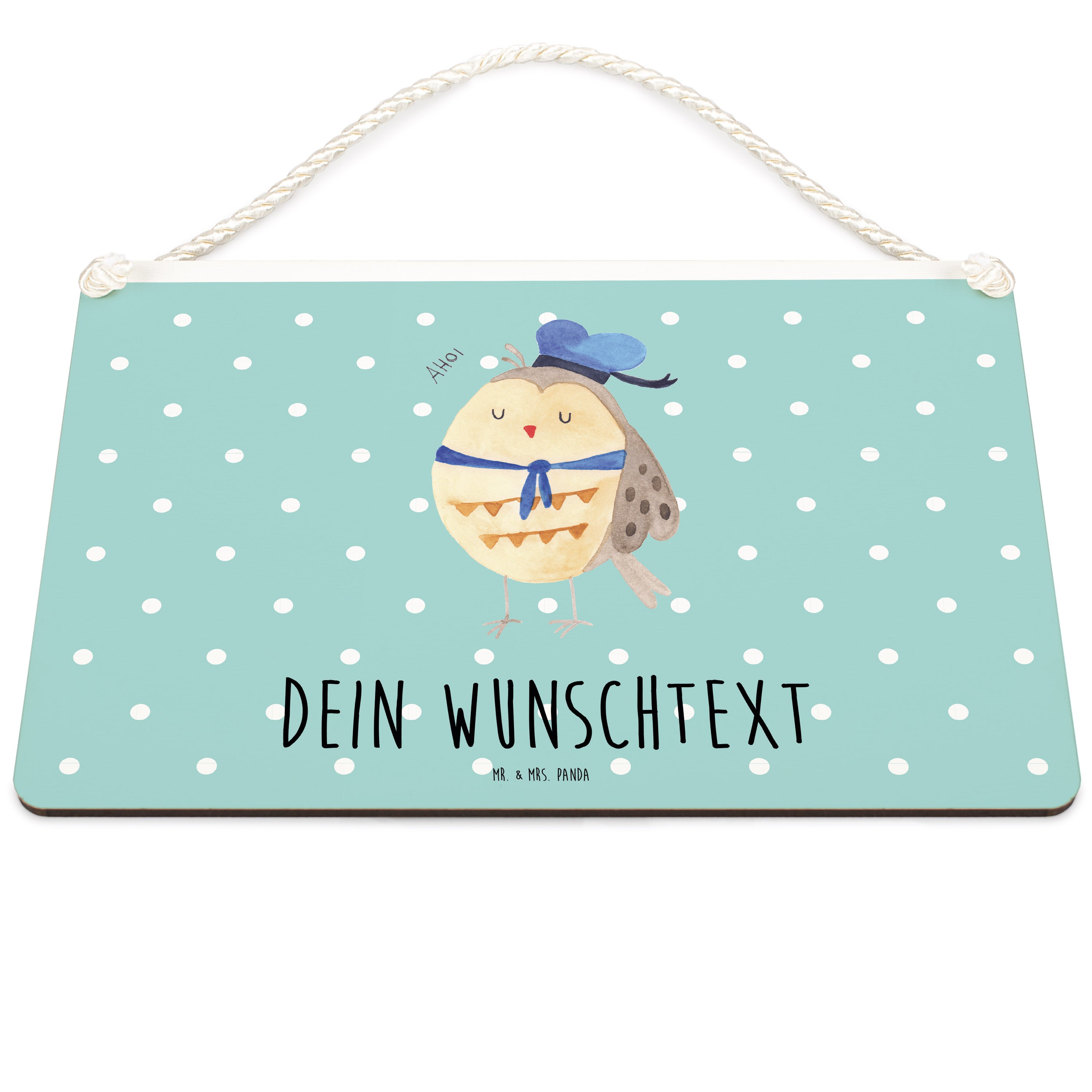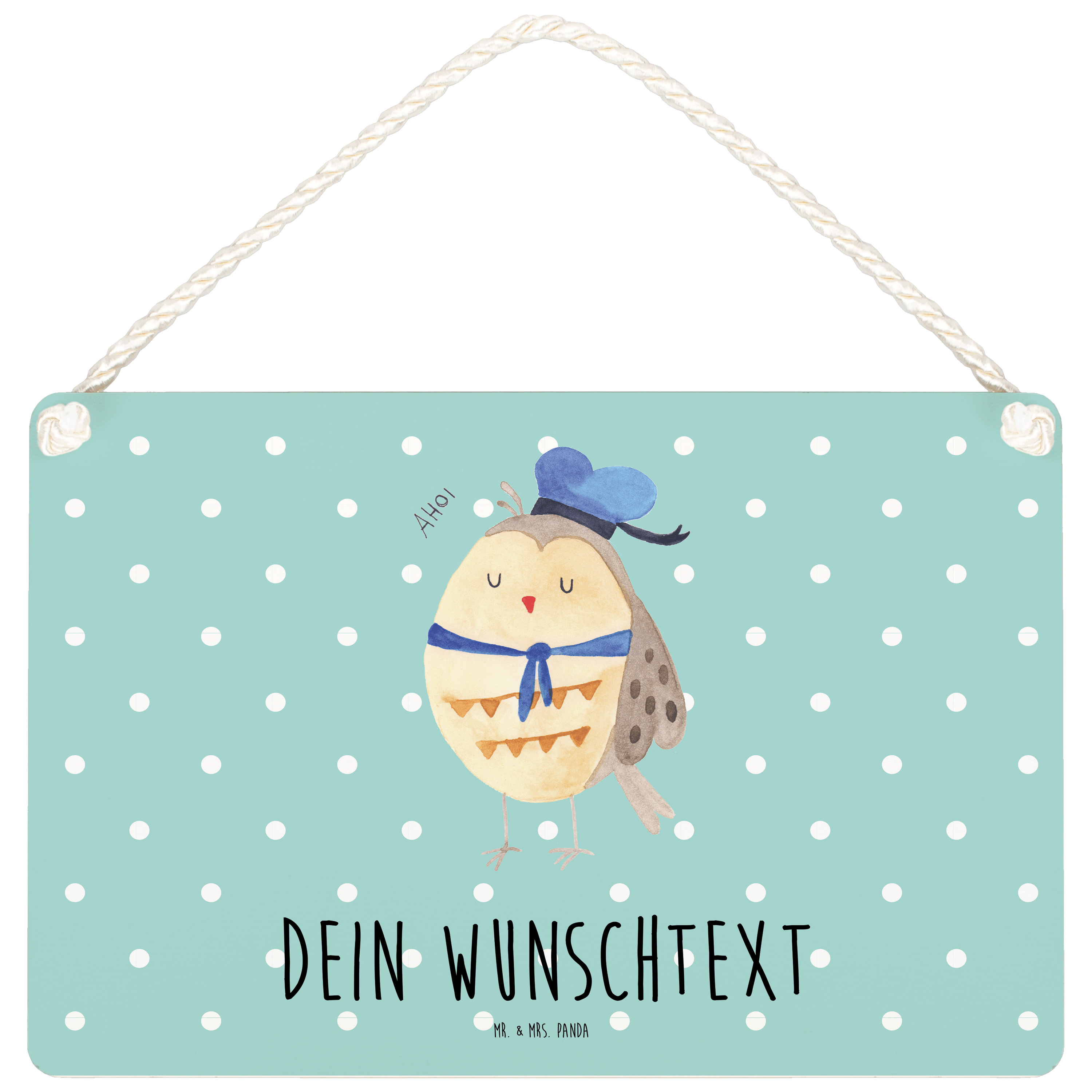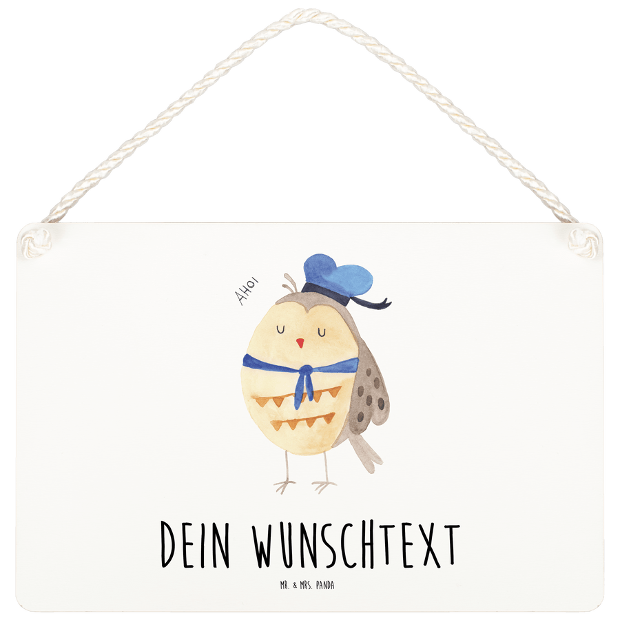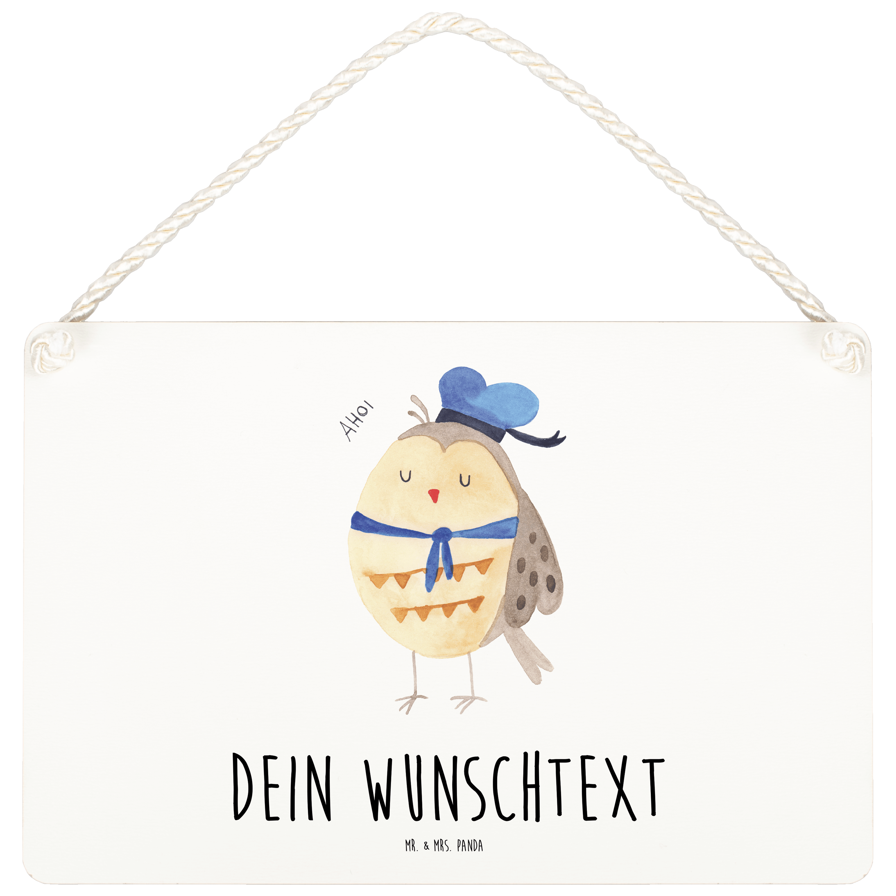 Personalisiertes Deko Schild Eule Matrosen - Weiß - DIN A5