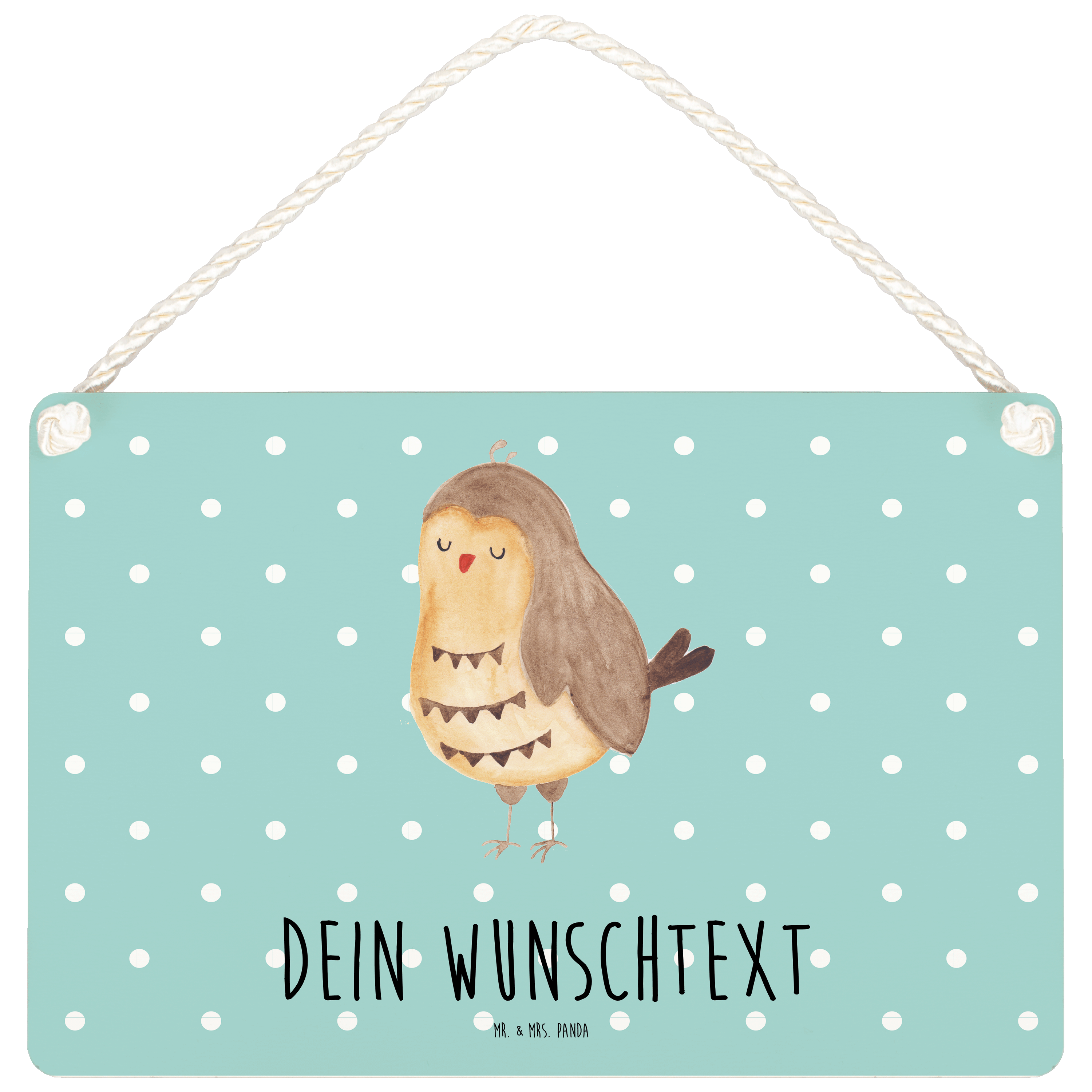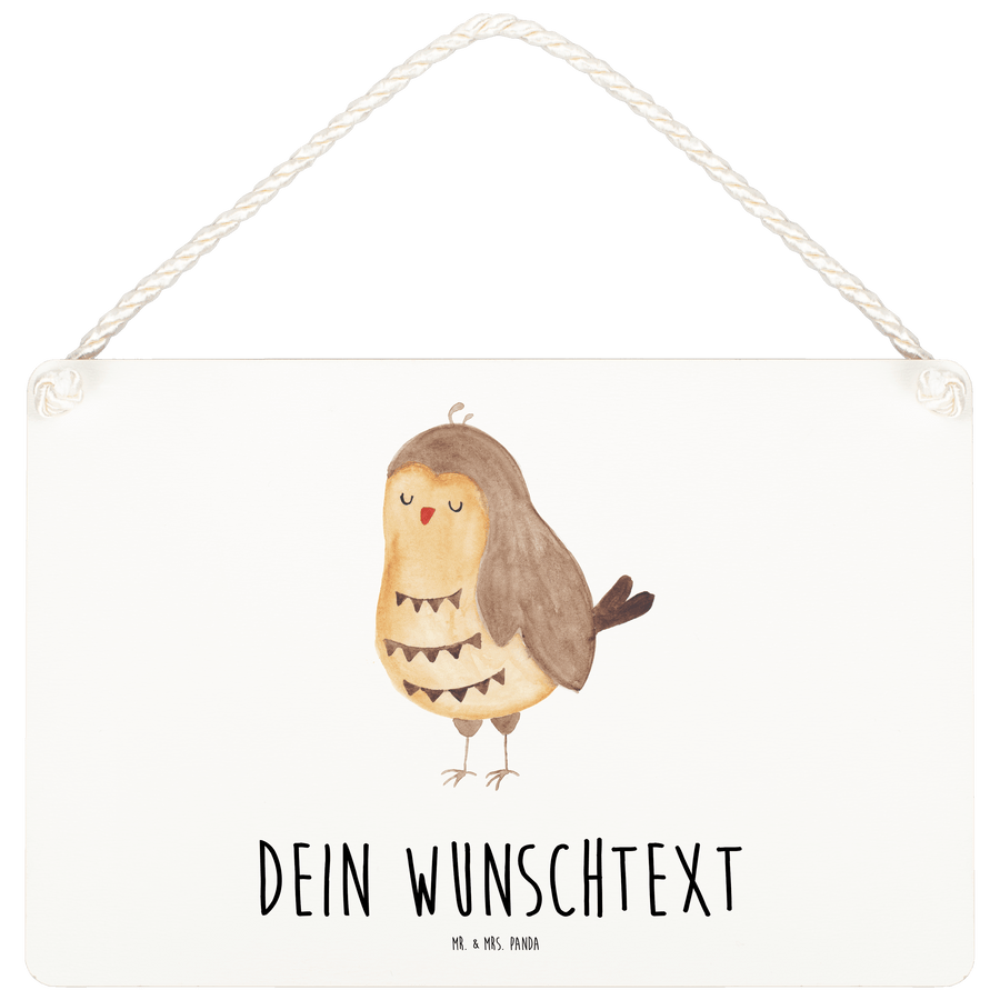 Personalisiertes Deko Schild Eule Zufrieden - Weiß - DIN A4
