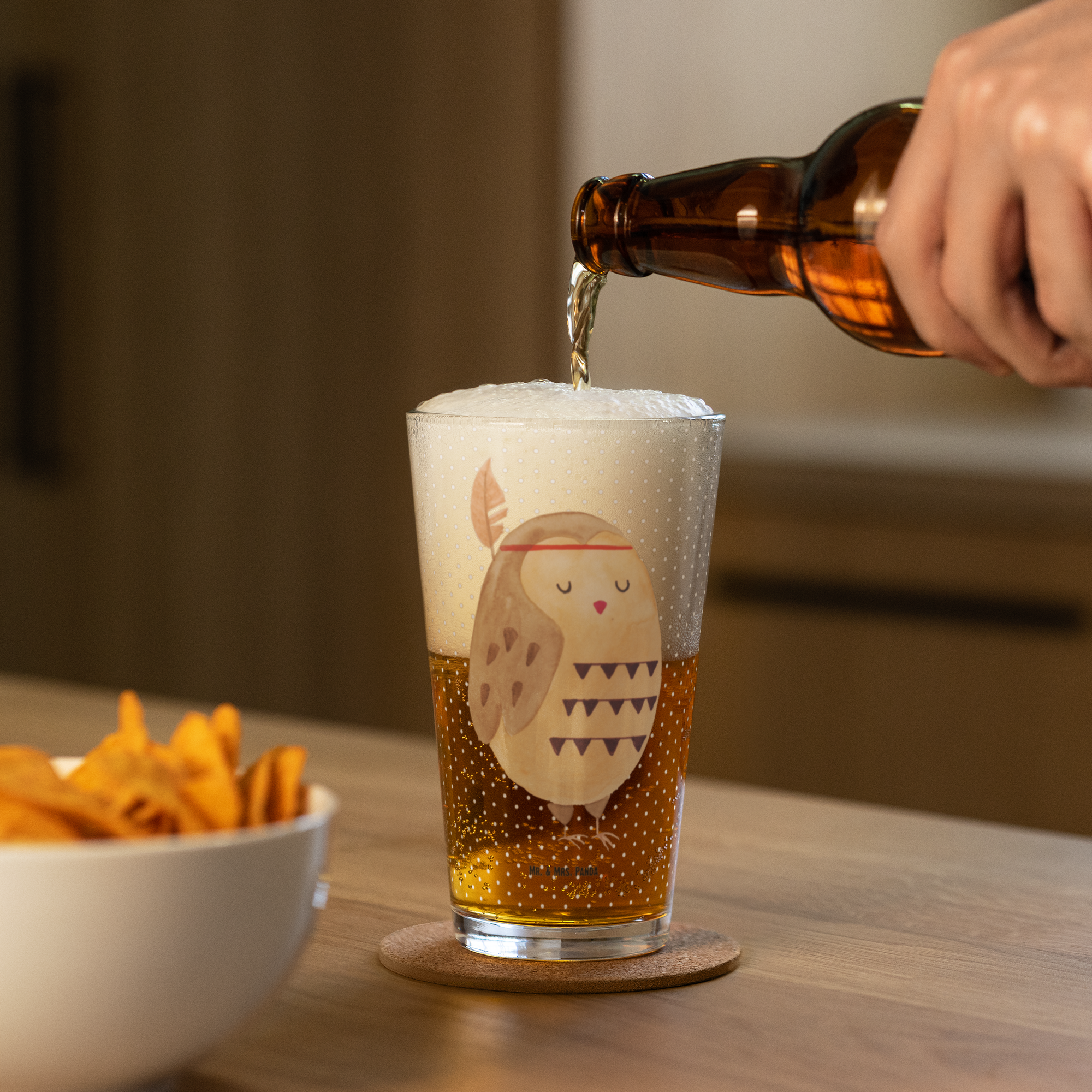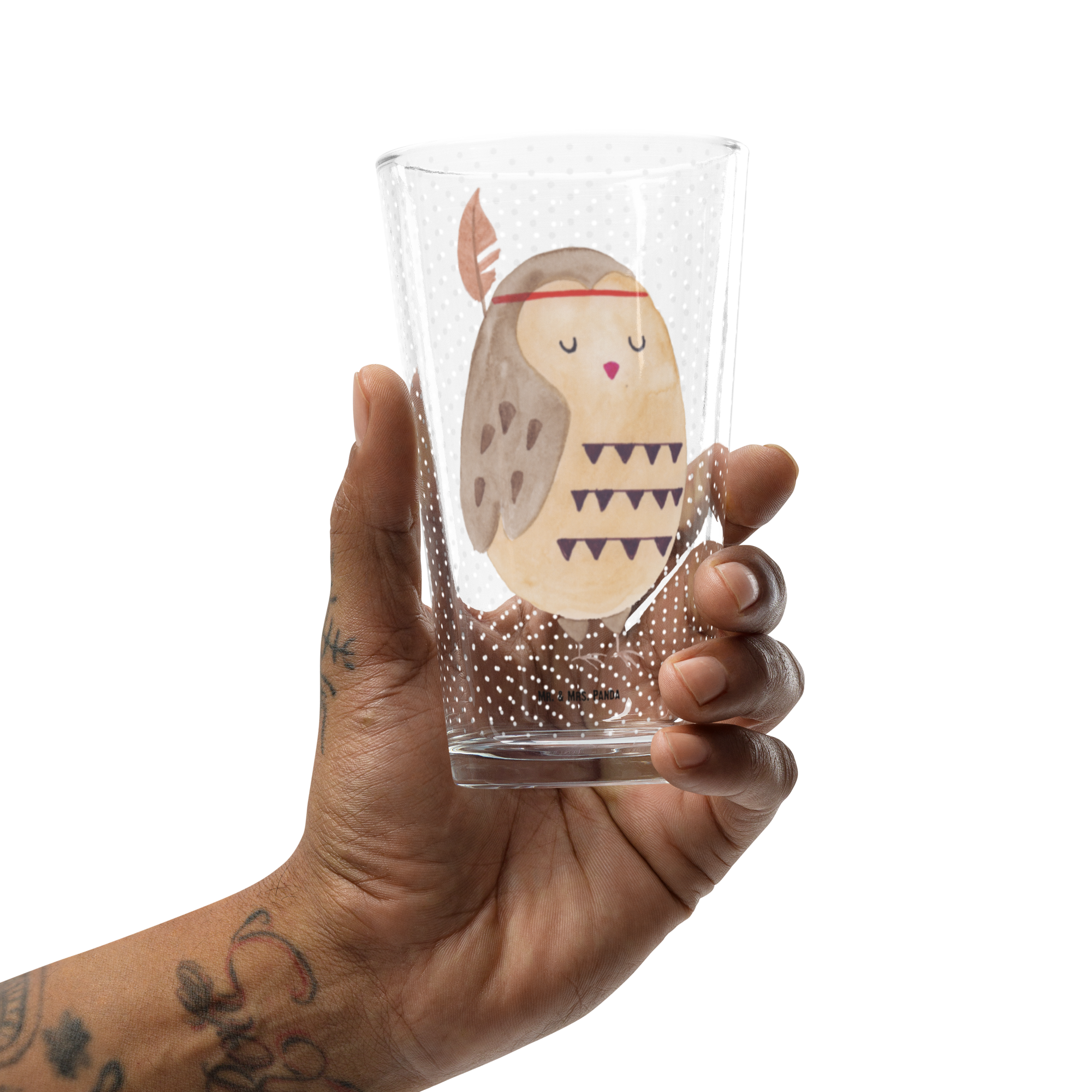 Premium Trinkglas Eule Federschmuck - mit Spruch