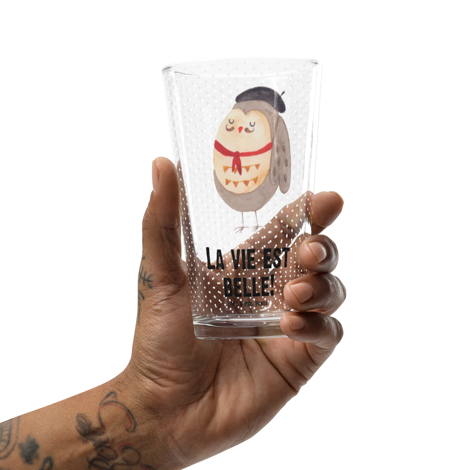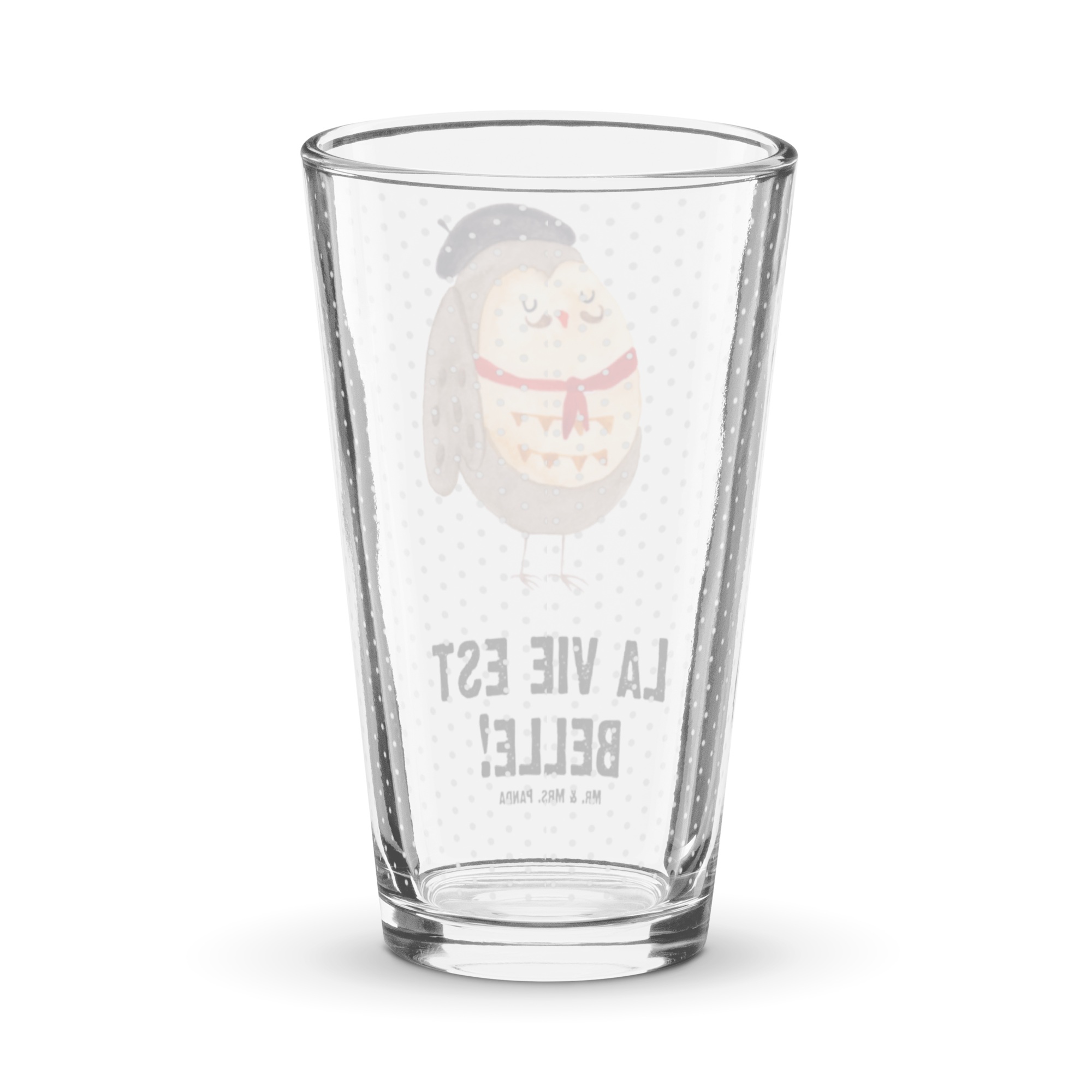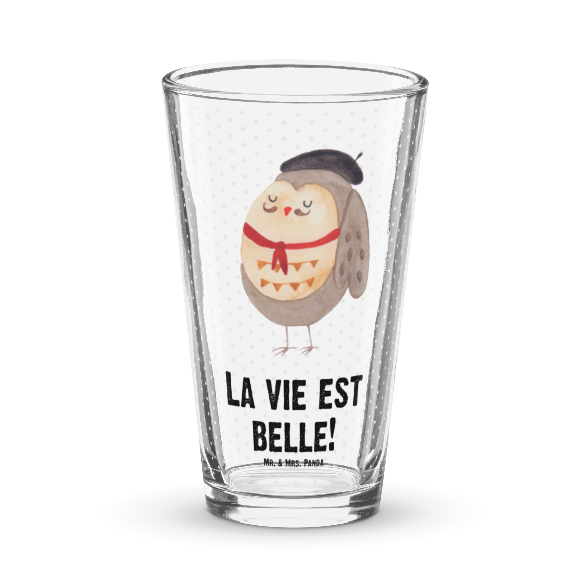 Premium Trinkglas Eule Französisch - mit Spruch