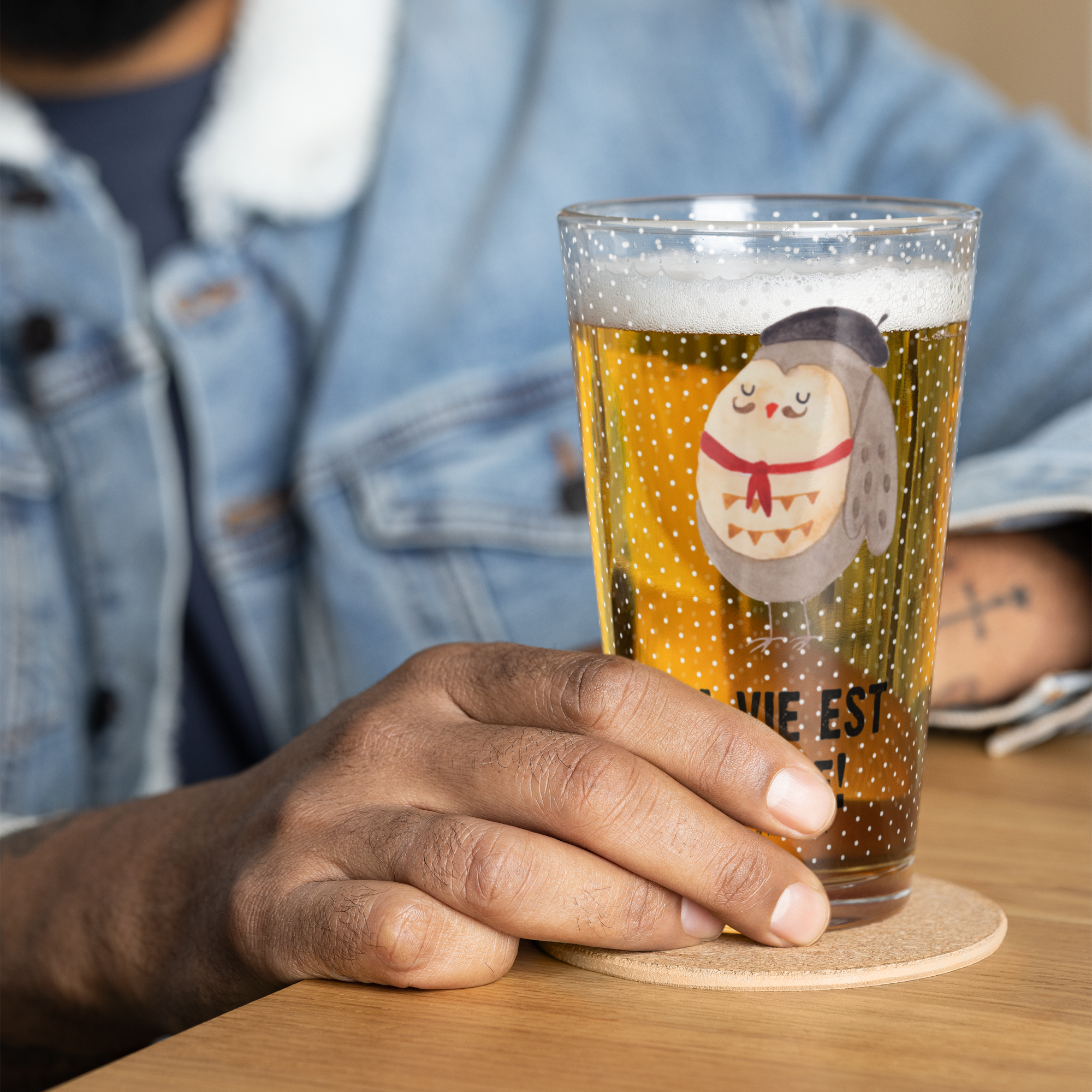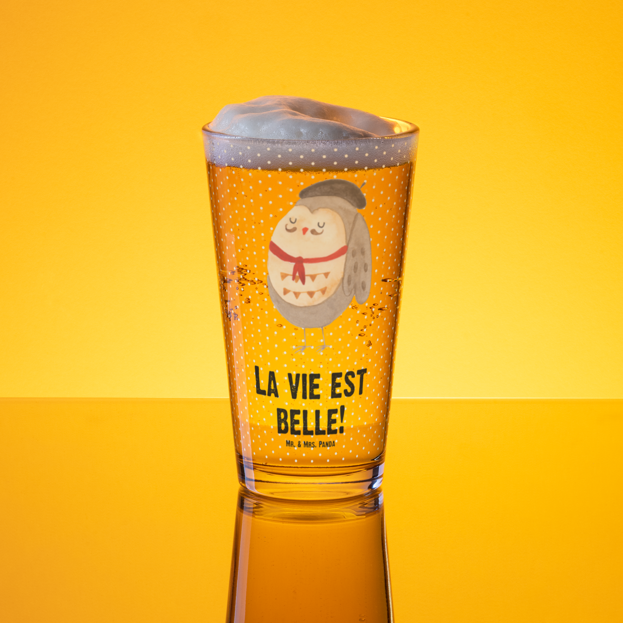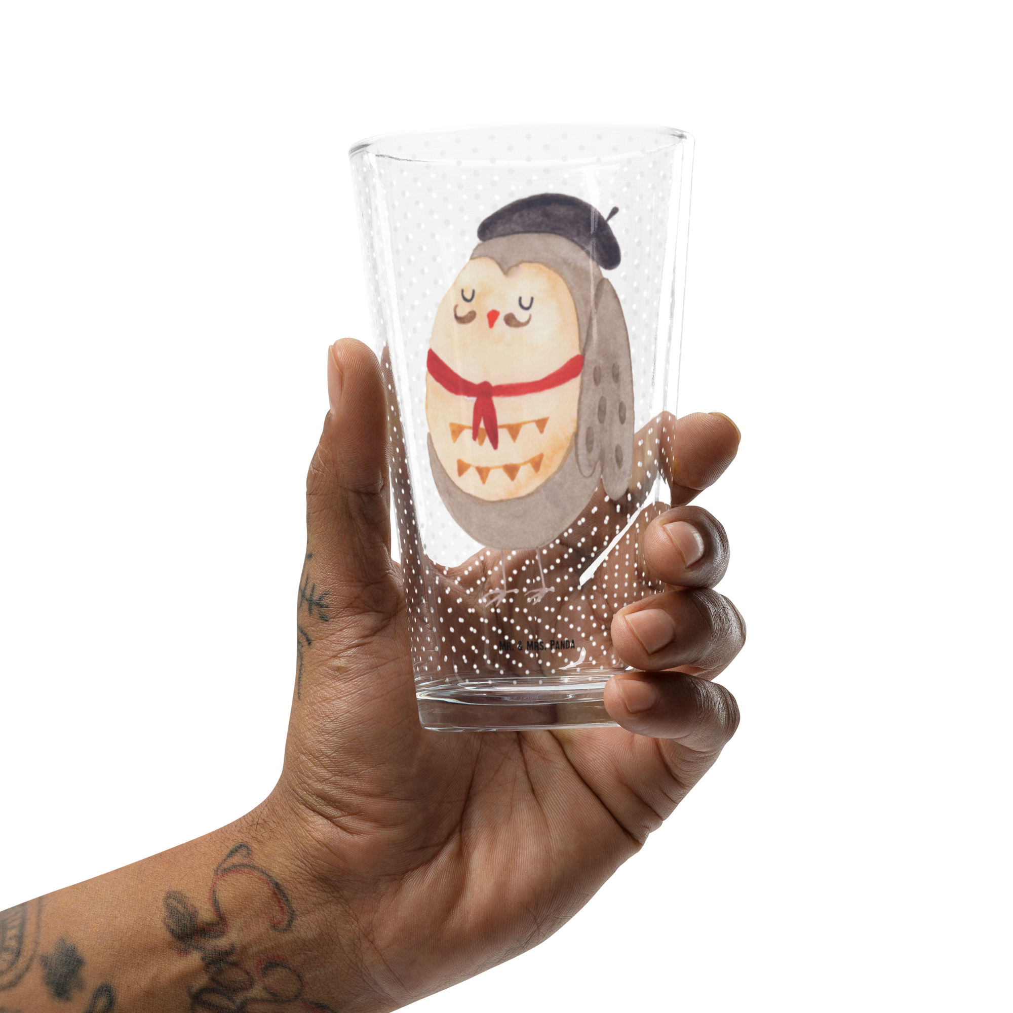 Premium Trinkglas Eule Französisch - mit Spruch
