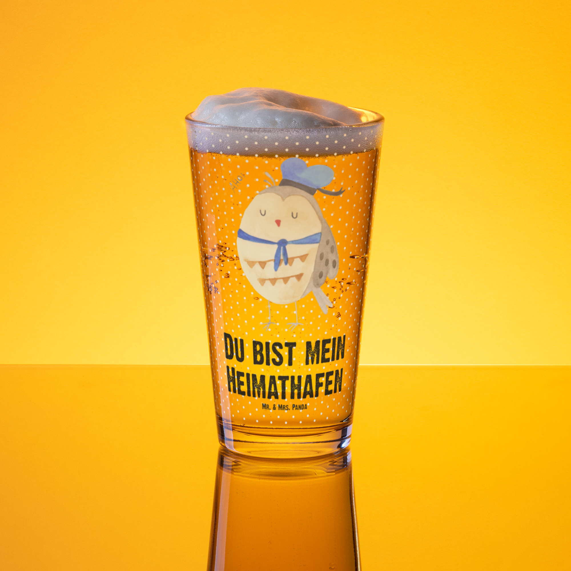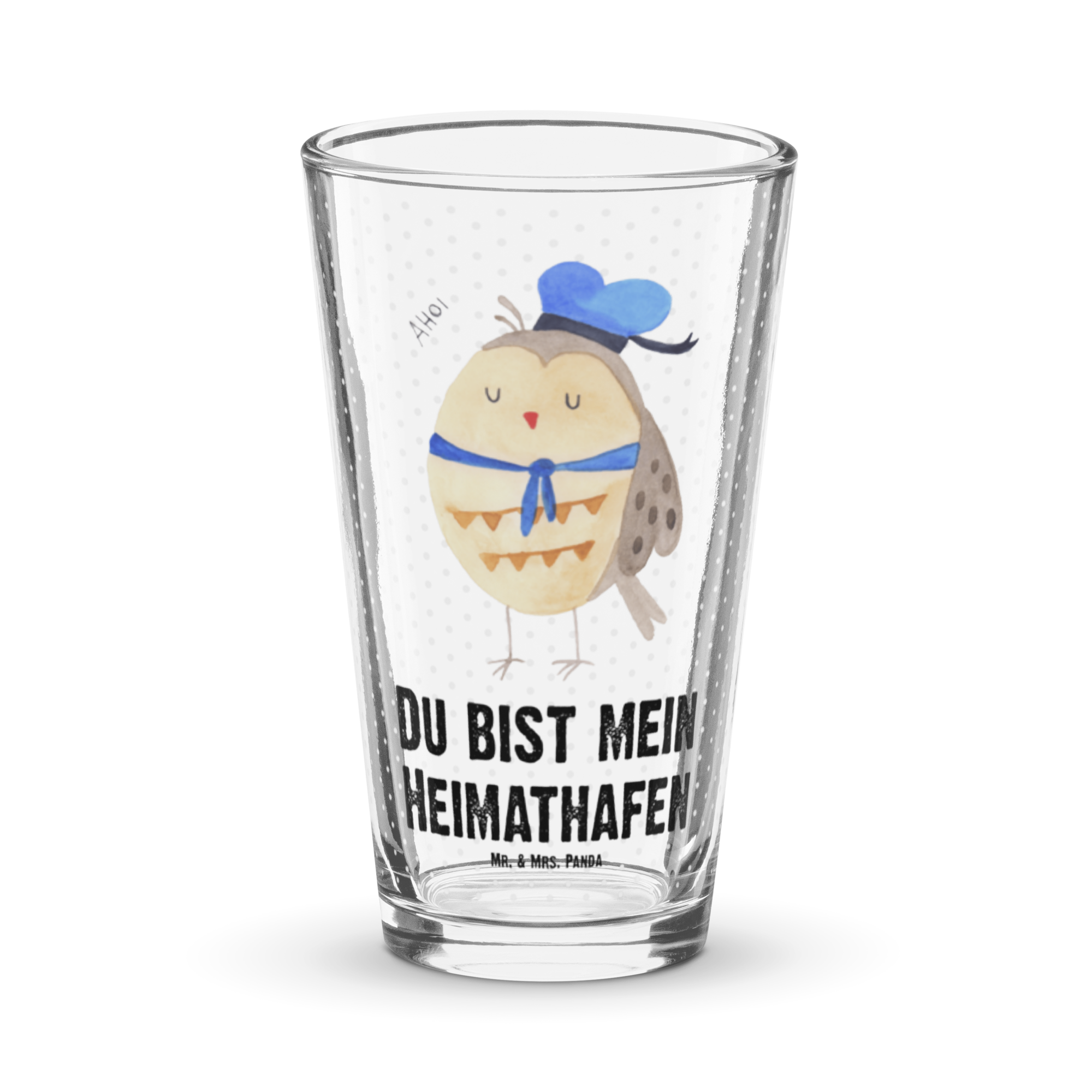 Premium Trinkglas Eule Matrosen Trinkglas, Glas, Pint Glas, Bierglas, Cocktail Glas, Wasserglas, Eule, Eule Spruch, Eule Deko, Owl, Wortspiel lustig, Matrose, Freundin, Ehe, Seefahrer, Heimathafen, Hochzeitstag Geschenk