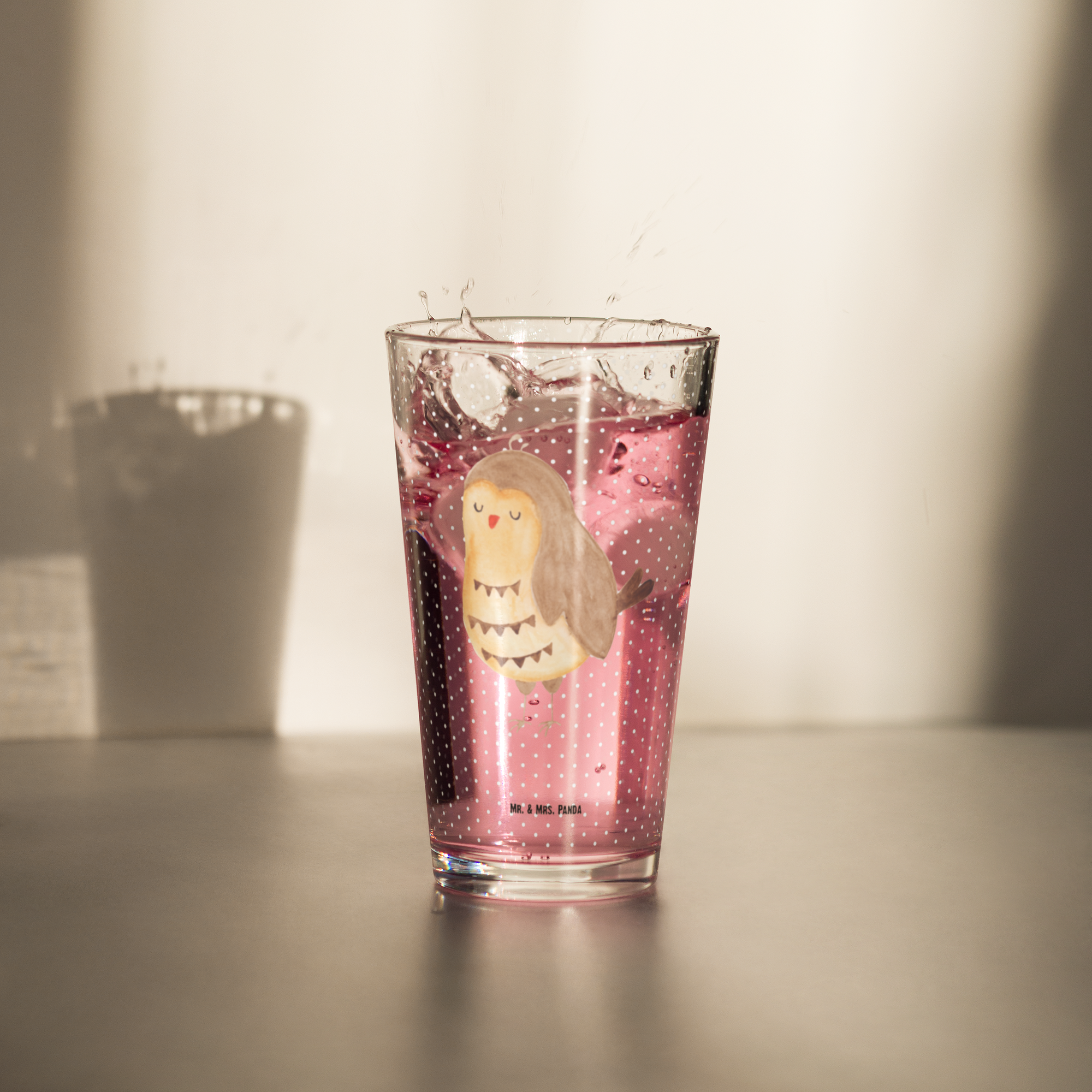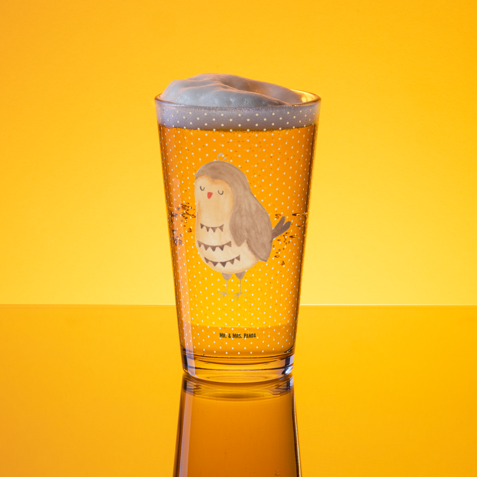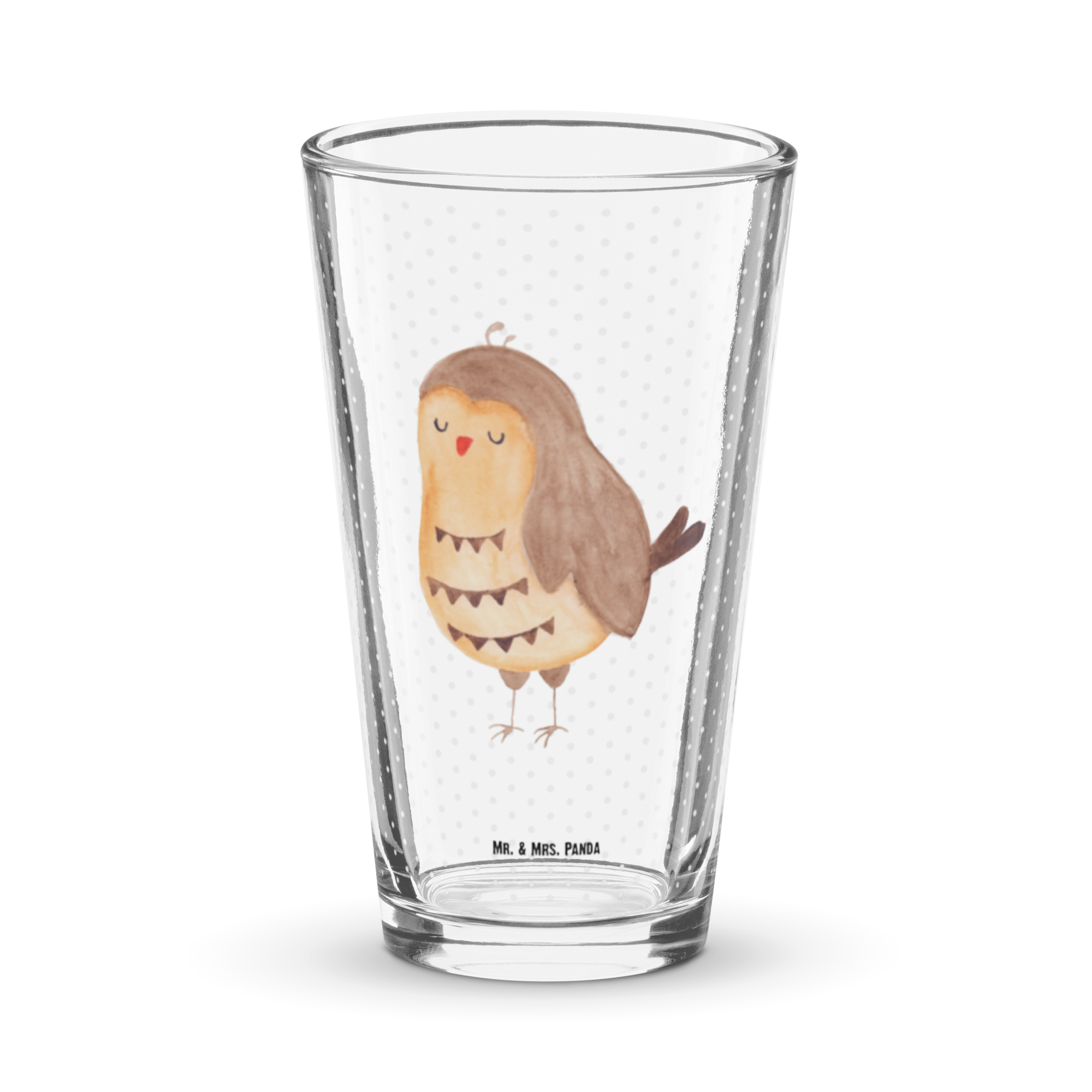 Premium Trinkglas Eule Zufrieden - mit Spruch