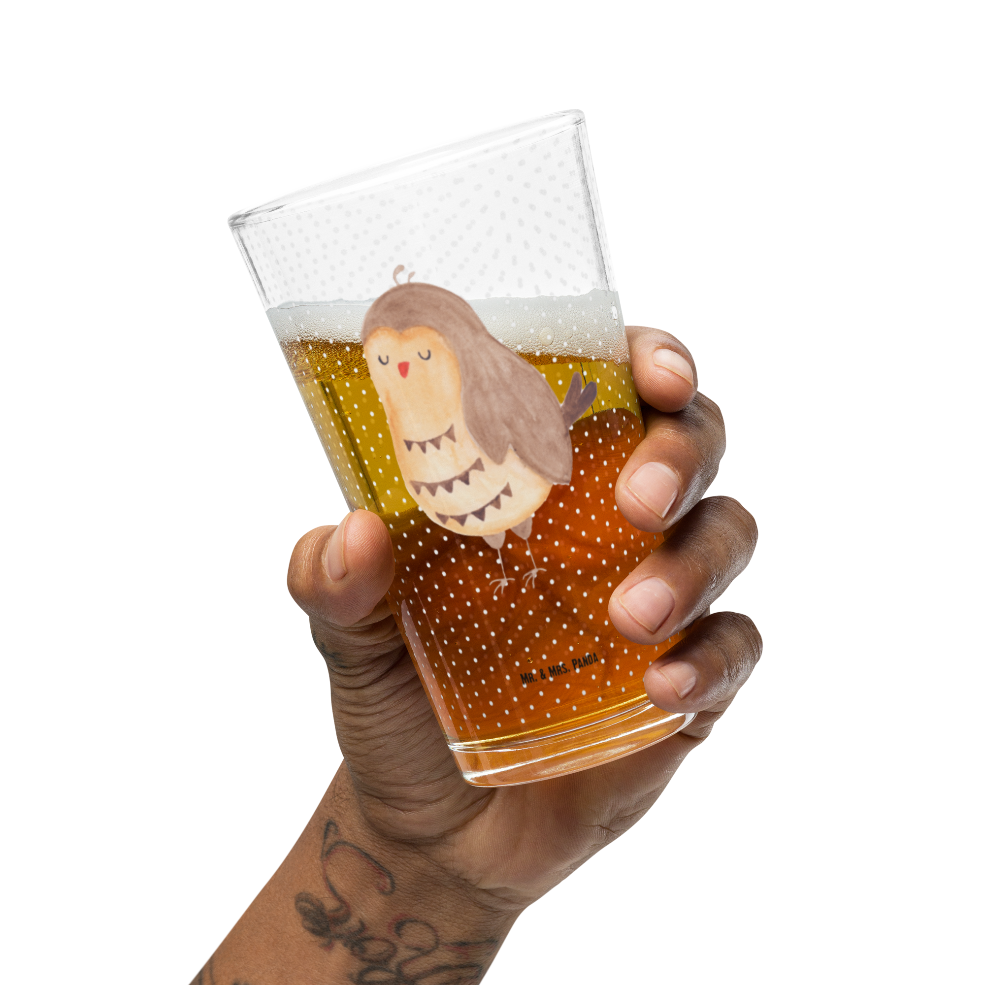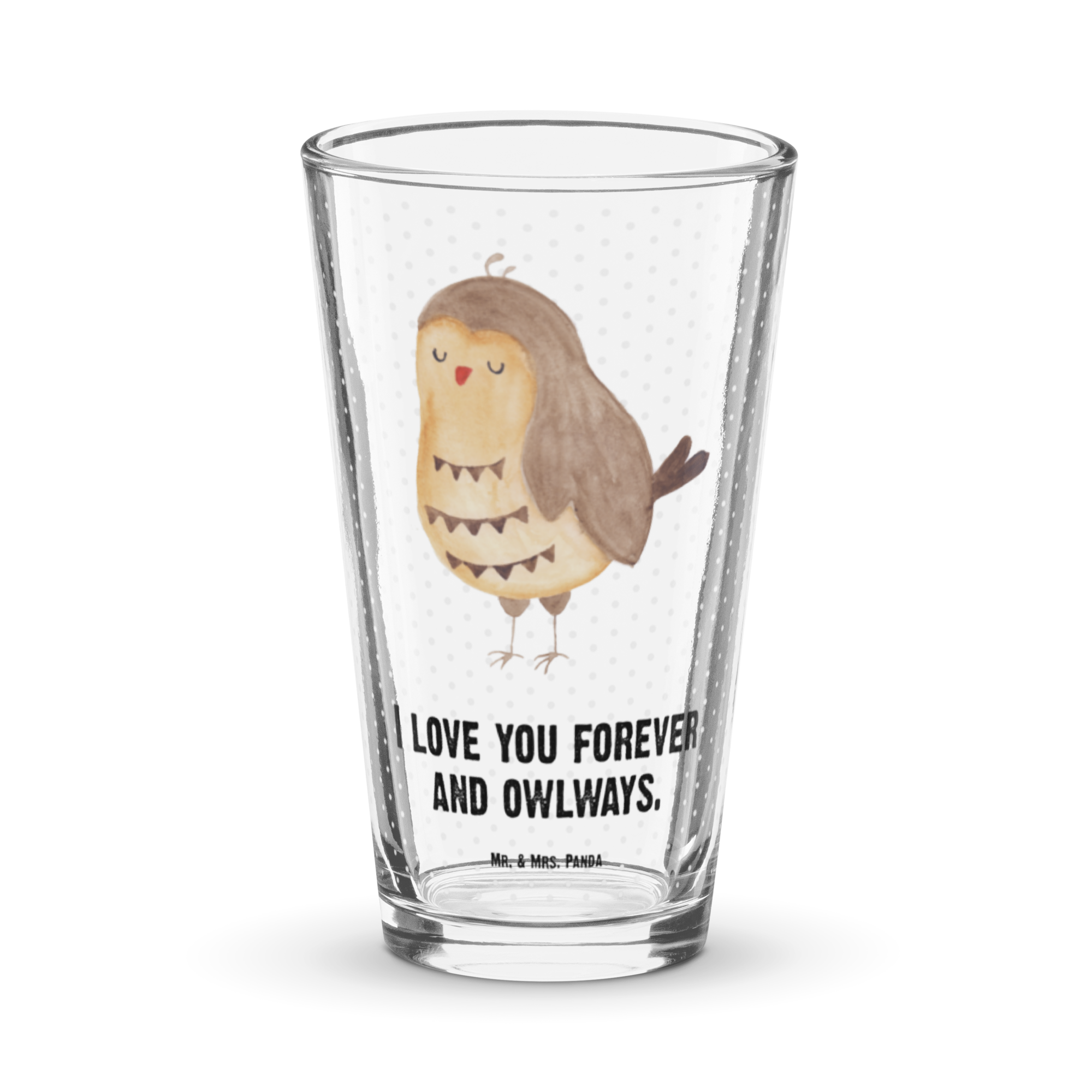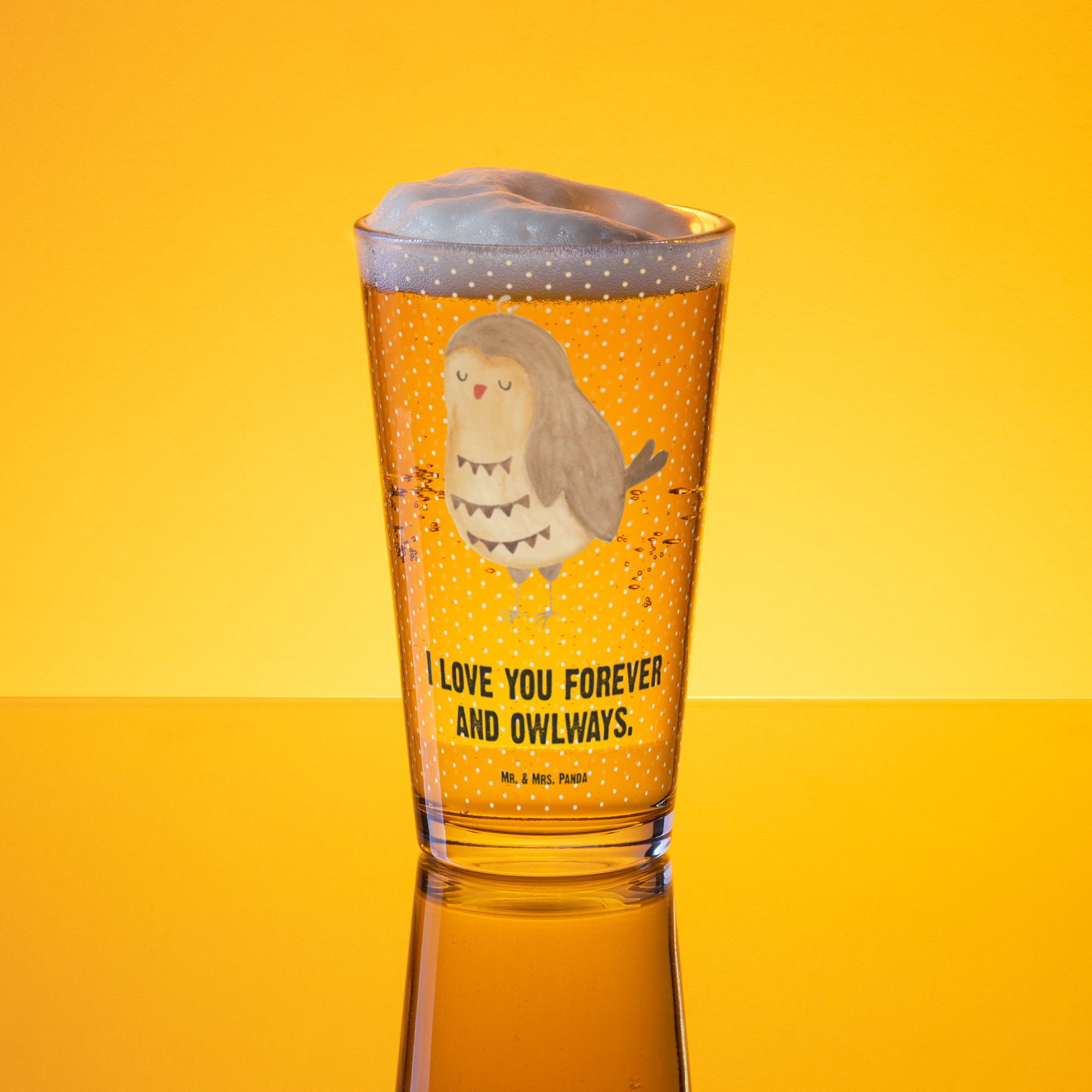 Premium Trinkglas Eule Zufrieden - mit Spruch