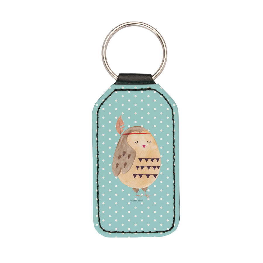 Rechteckig Schlüsselanhänger Eule Federschmuck - Türkis Pastell