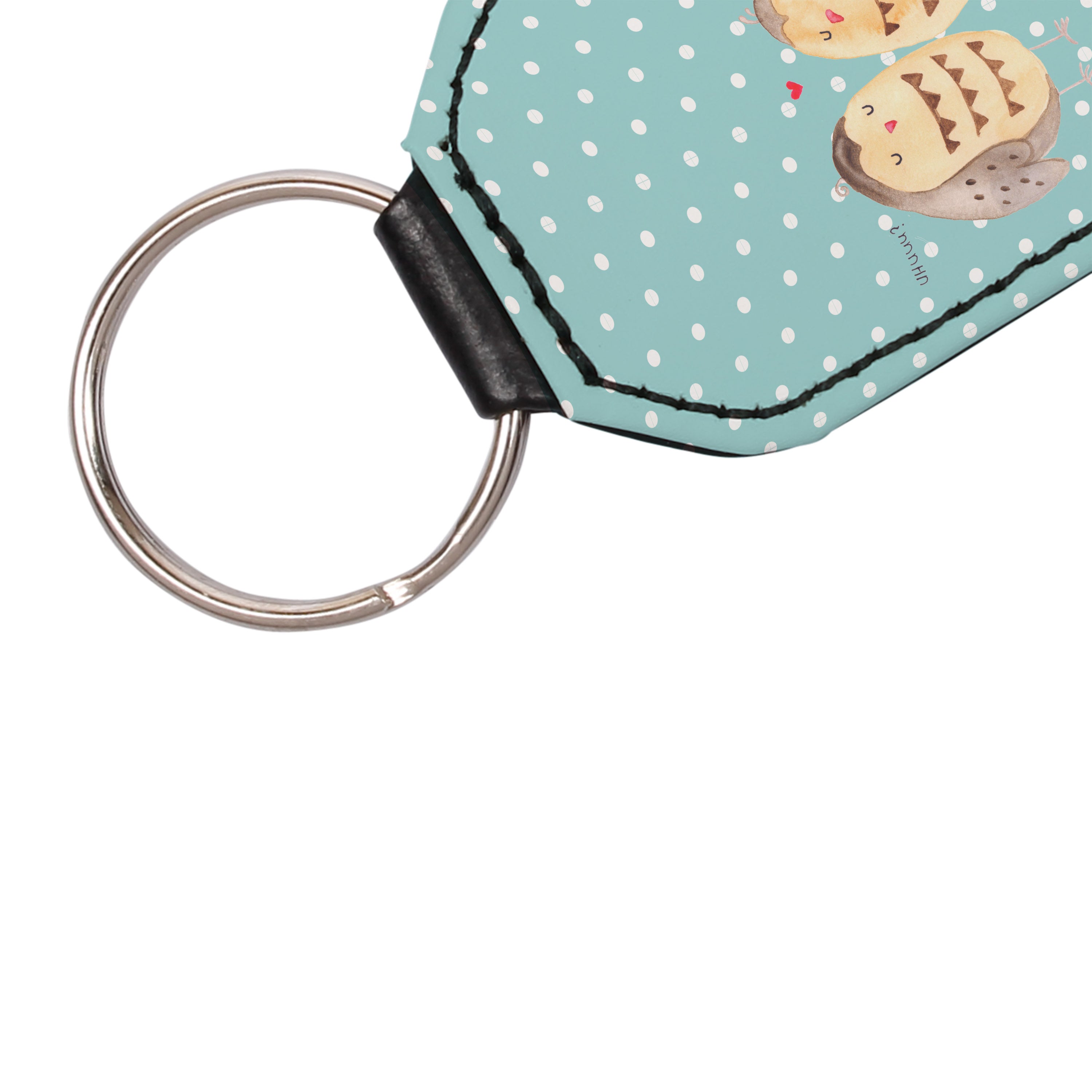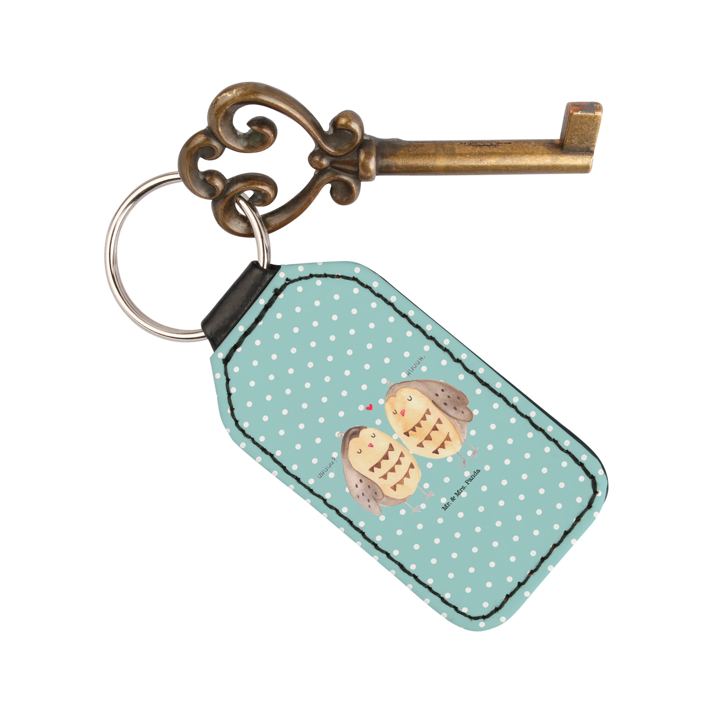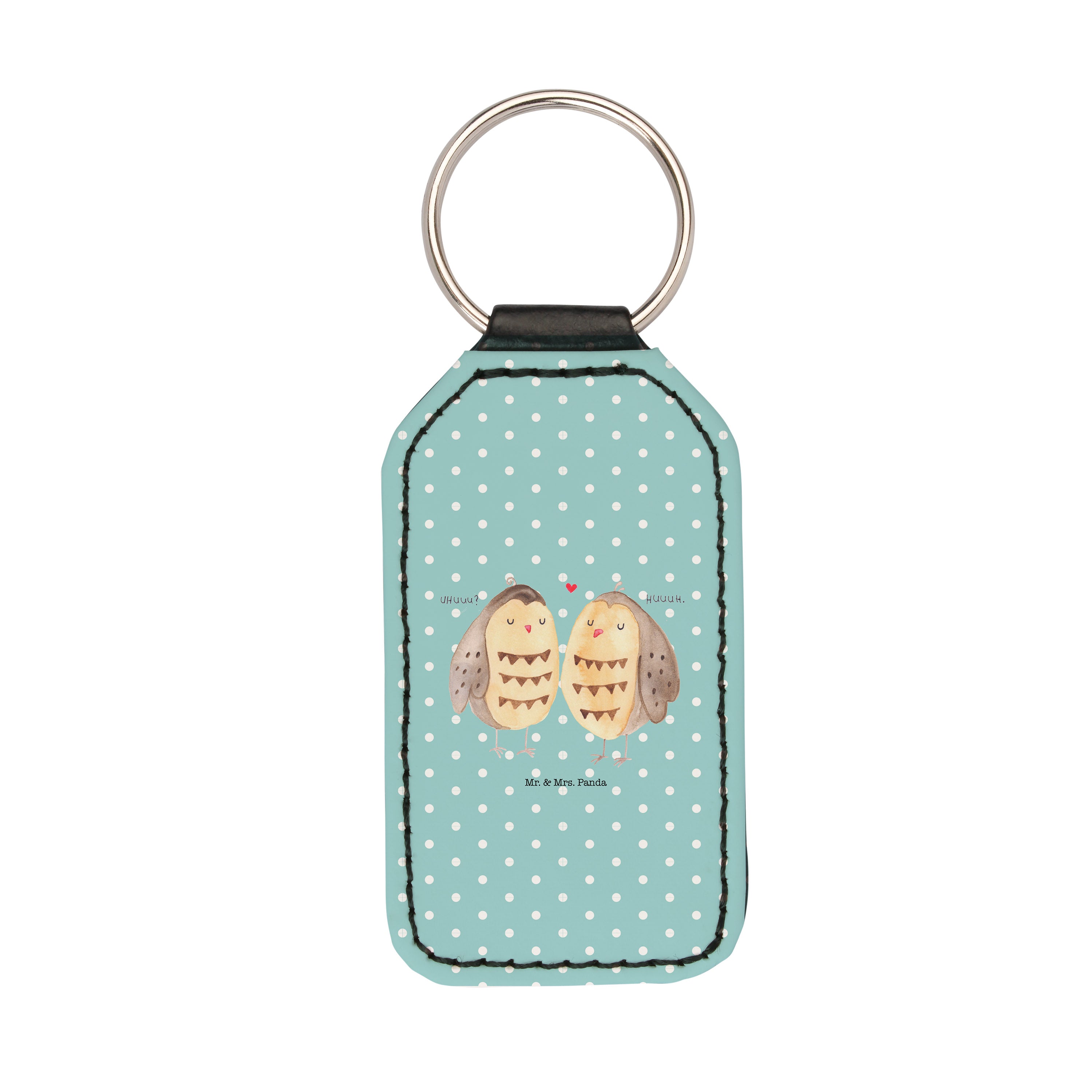 Rechteckig Schlüsselanhänger Eule Liebe - Türkis Pastell