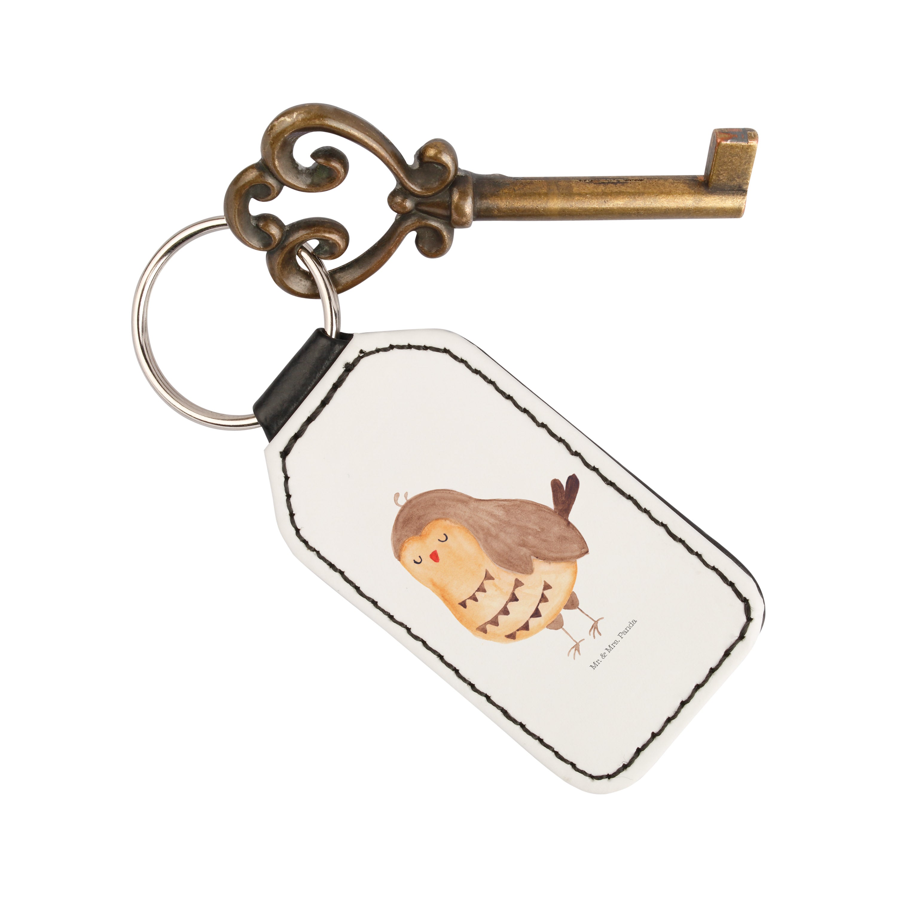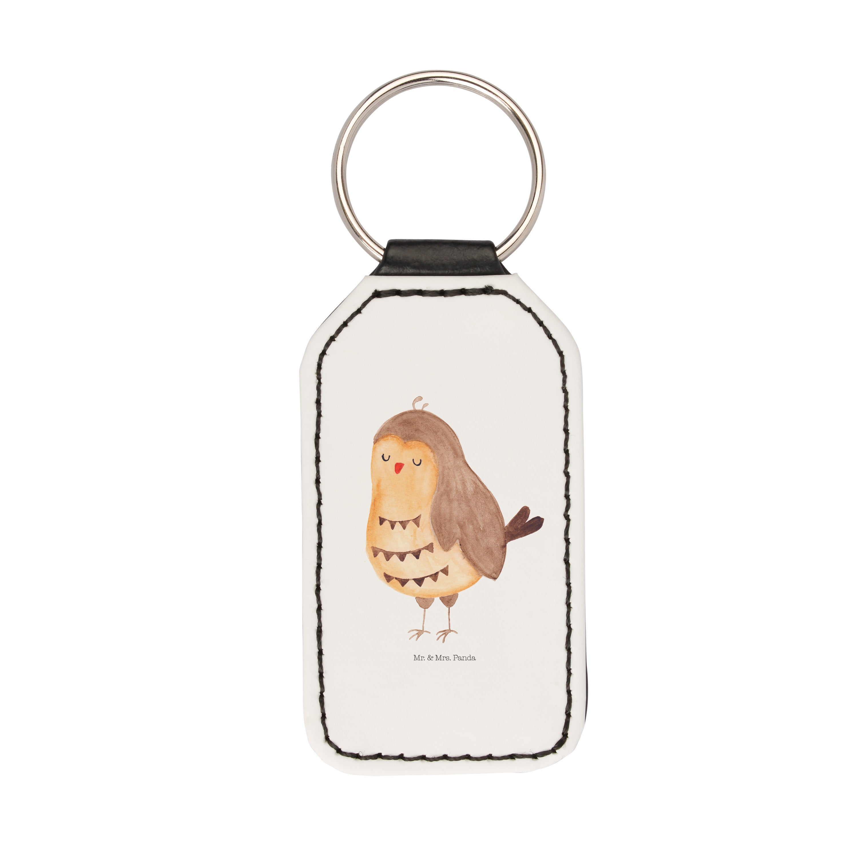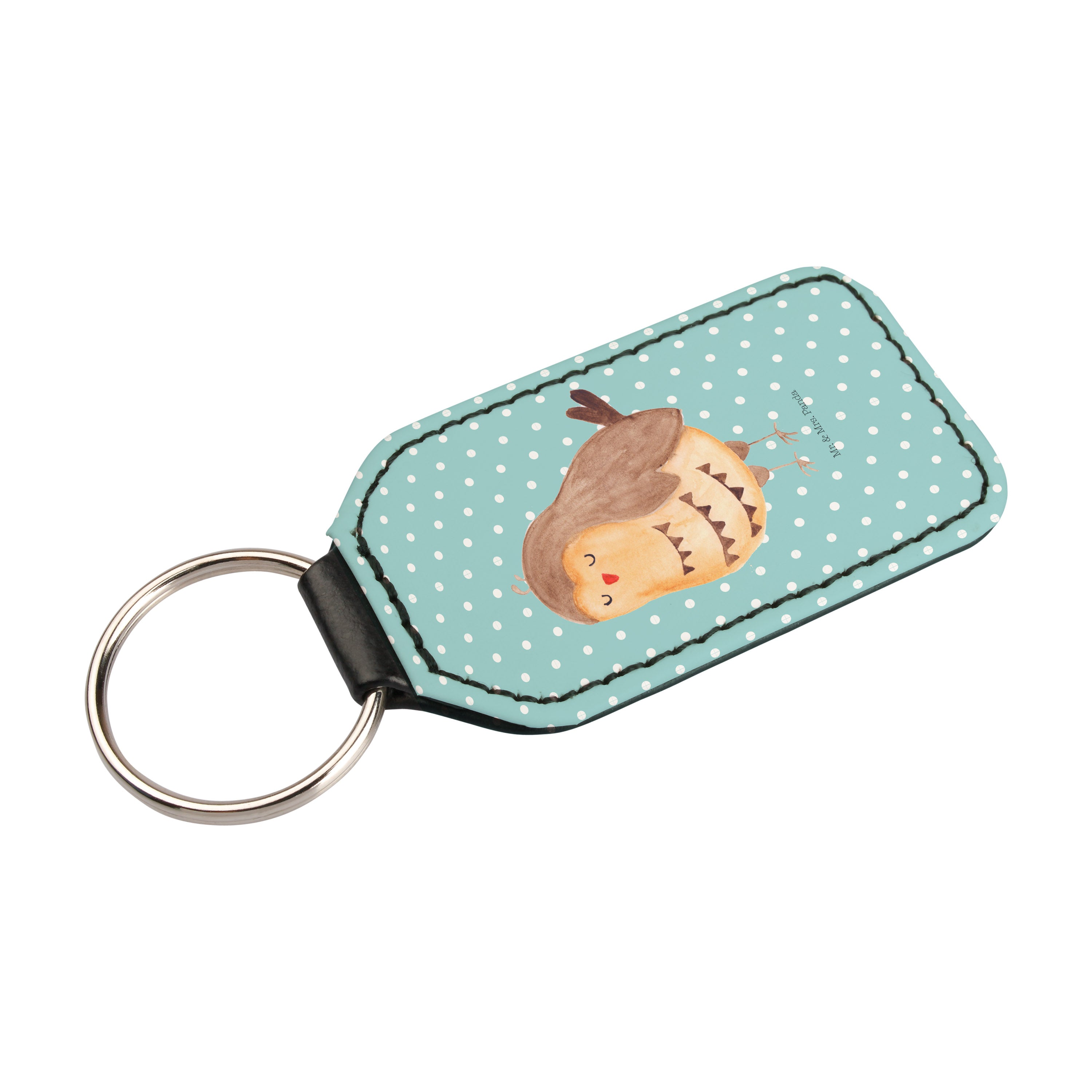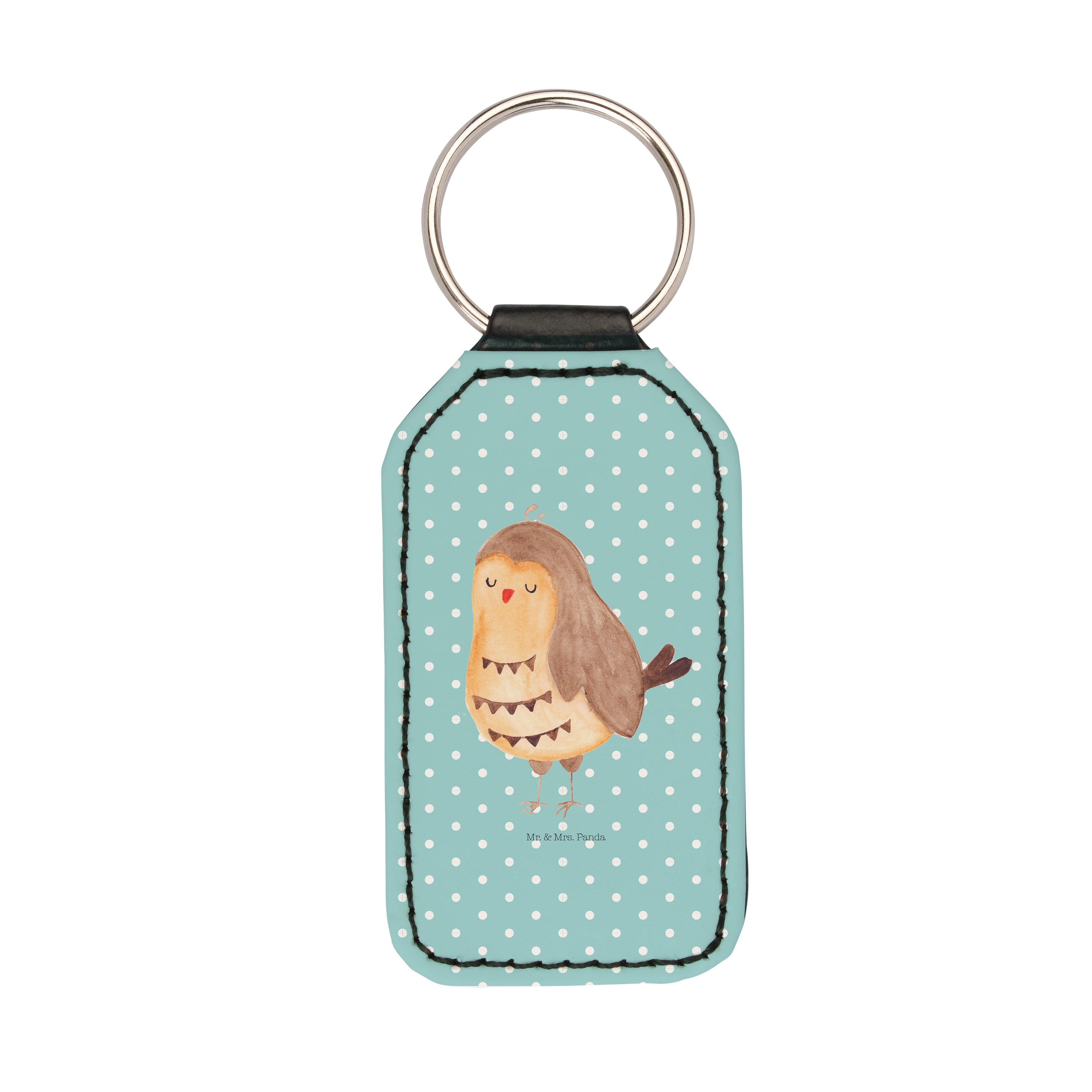 Rechteckig Schlüsselanhänger Eule Zufrieden - Türkis Pastell