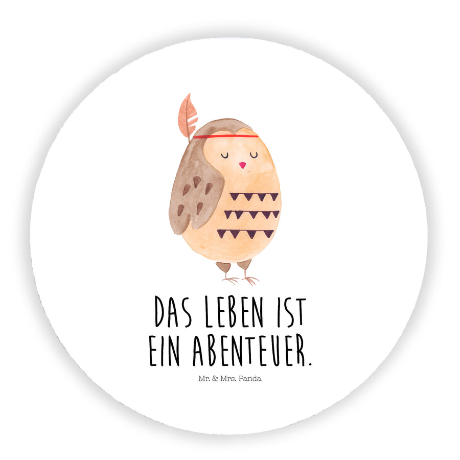 Rund Magnet Eule Federschmuck - mit Spruch - Weiß