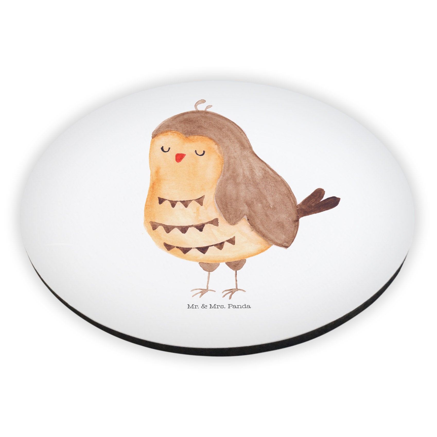 Rund Magnet Eule Zufrieden - mit Spruch - Weiß