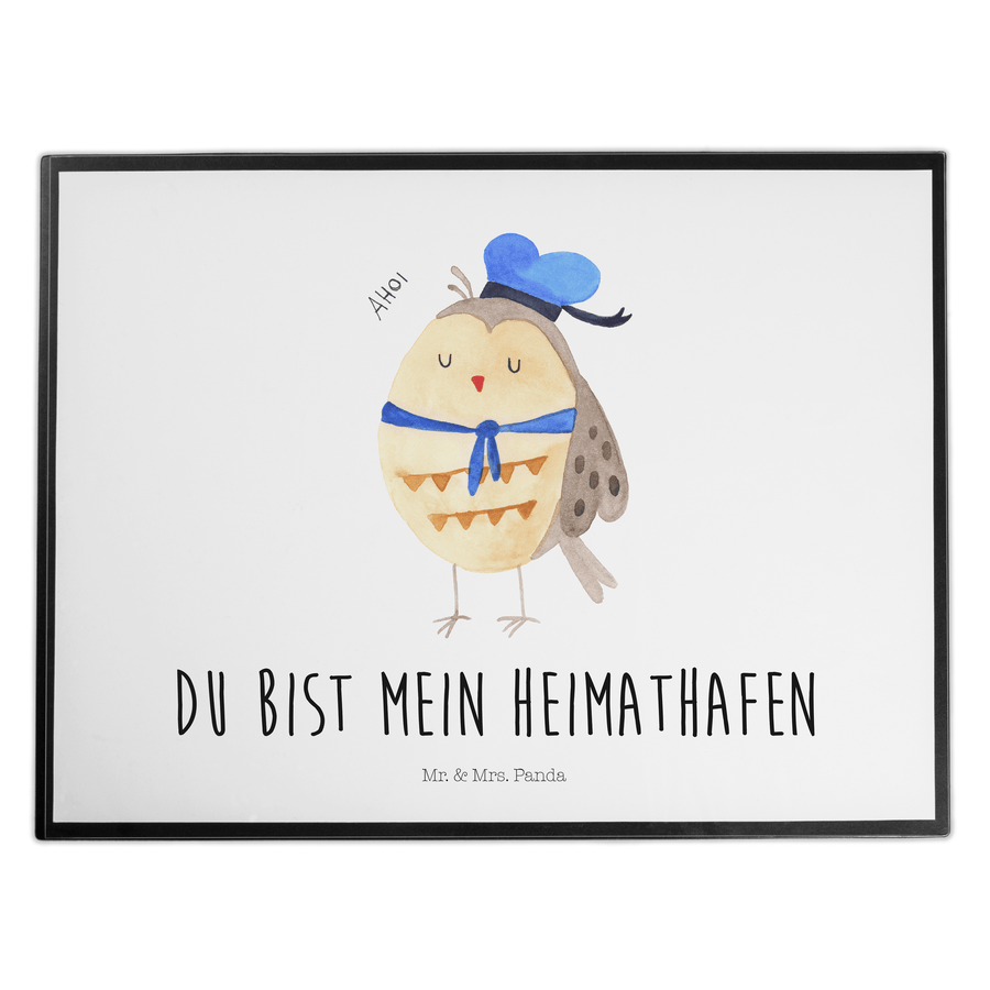 Schreibtischunterlage Eule Matrosen - mit Spruch - Weiß