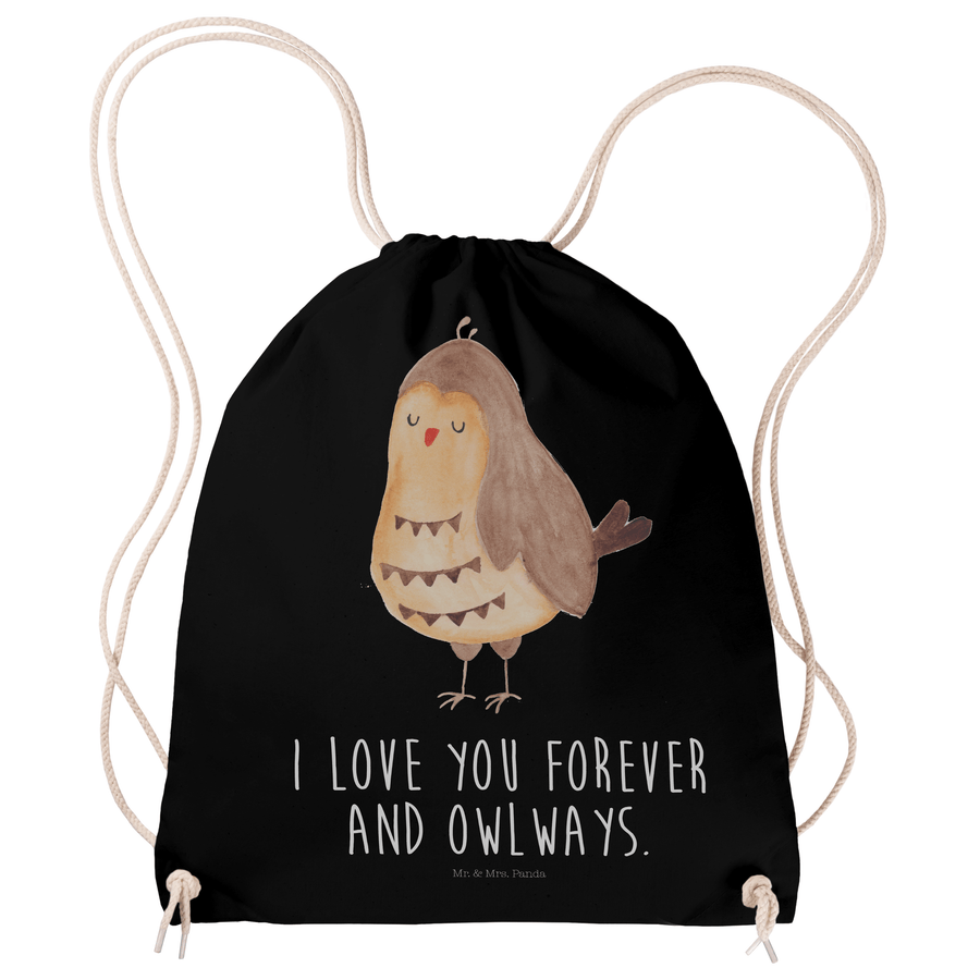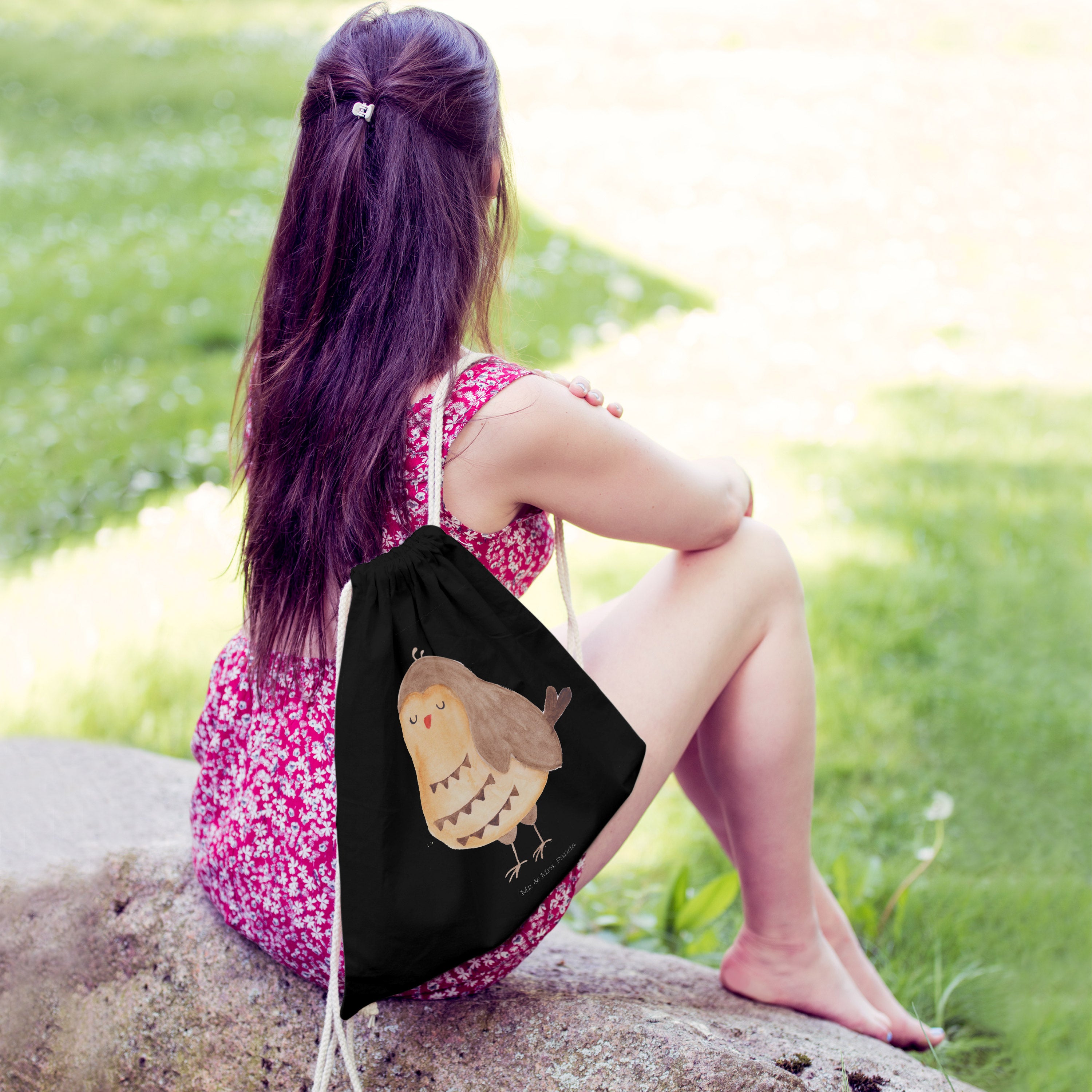 Sportbeutel Eule Zufrieden - mit Spruch - Schwarz