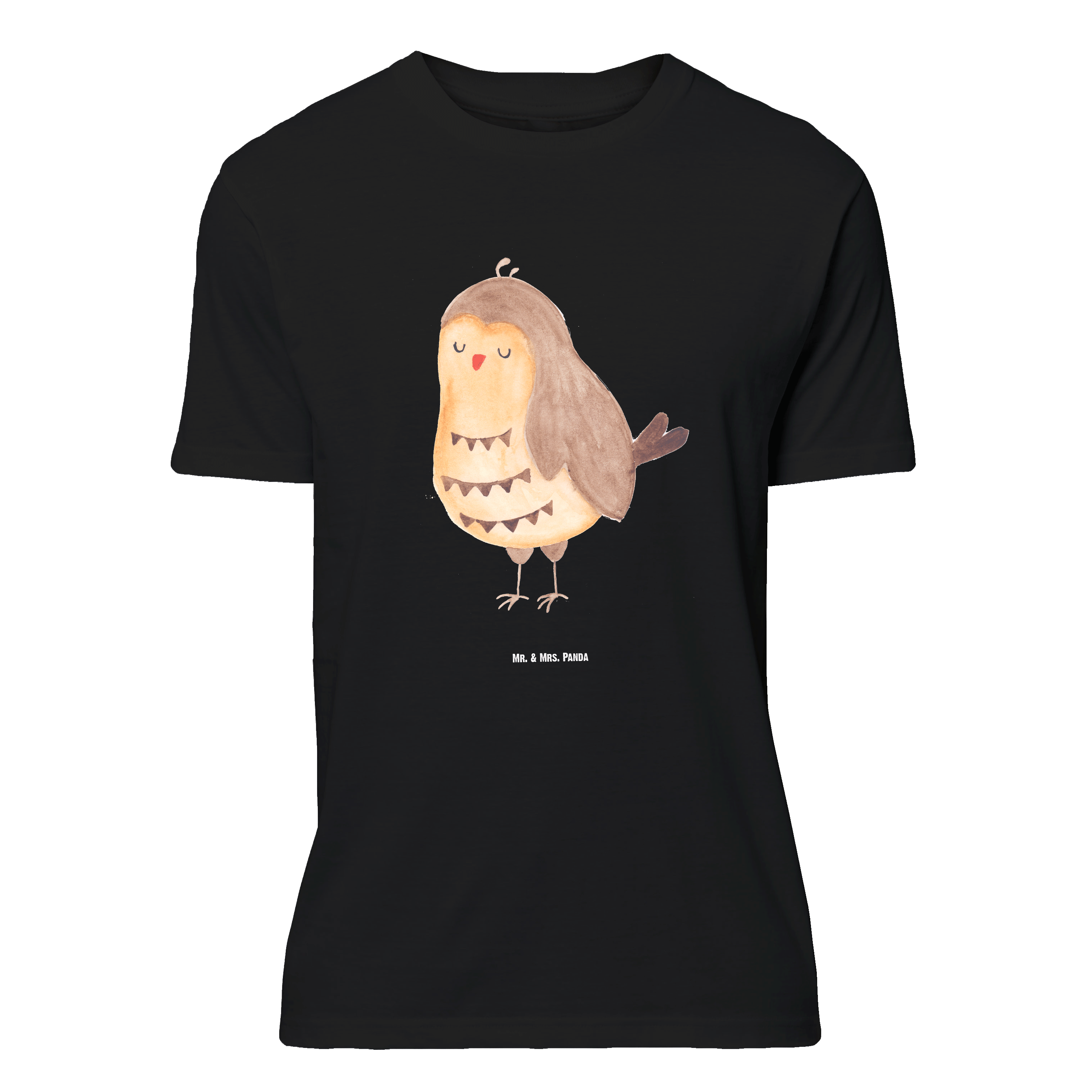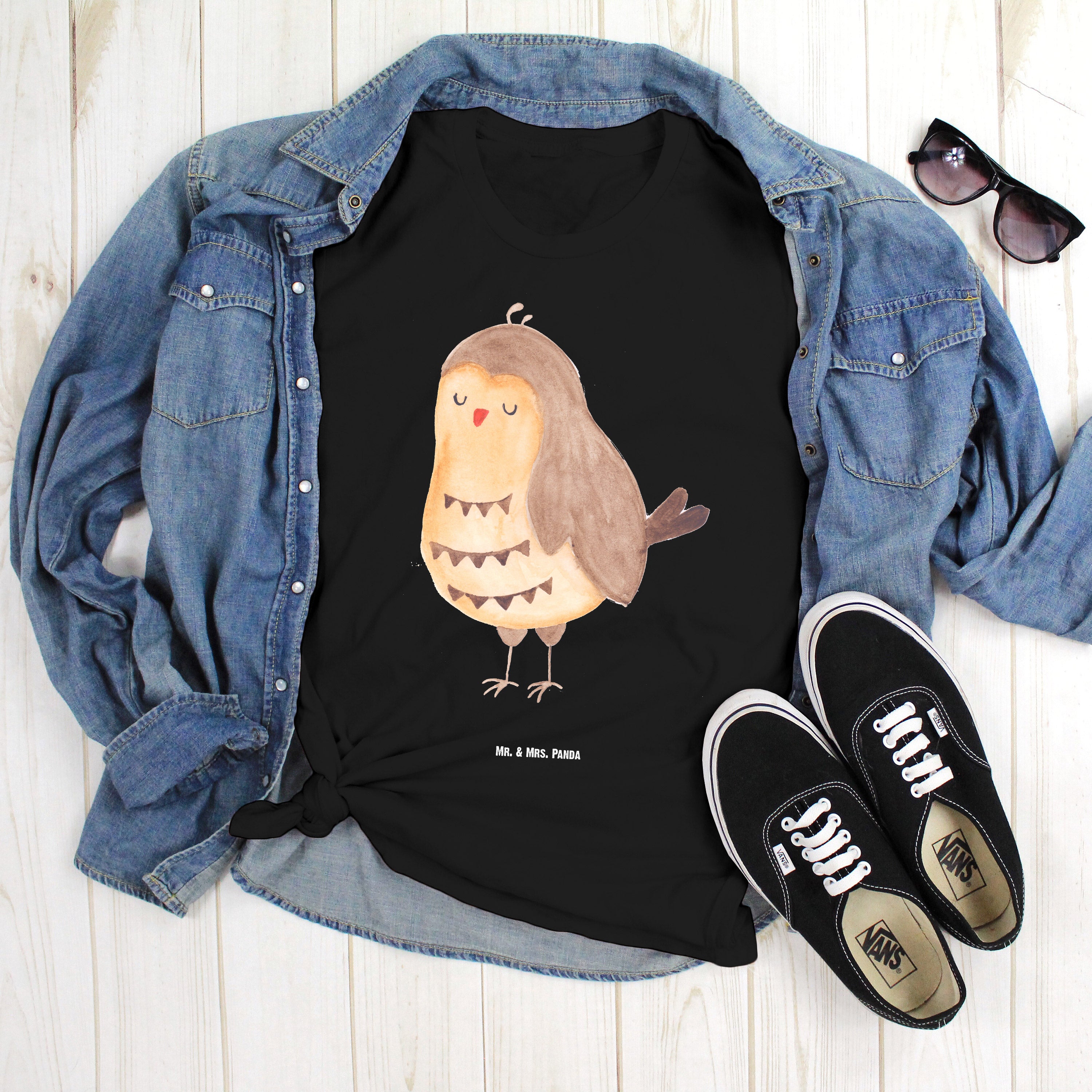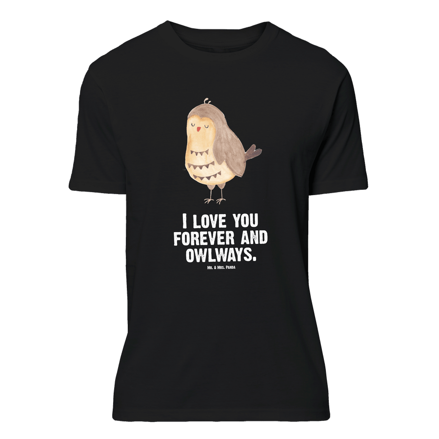 Größe XXL T-Shirt Eule Zufrieden - mit Spruch - Schwarz