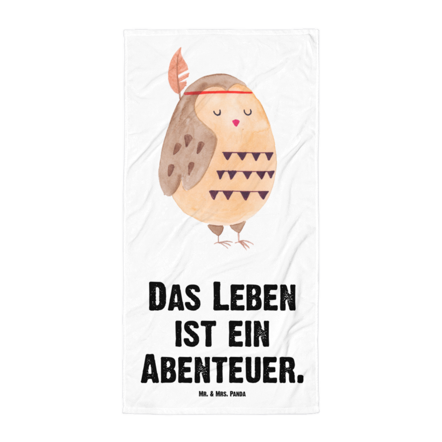 XL Badehandtuch Eule Federschmuck - mit Spruch - Weiß