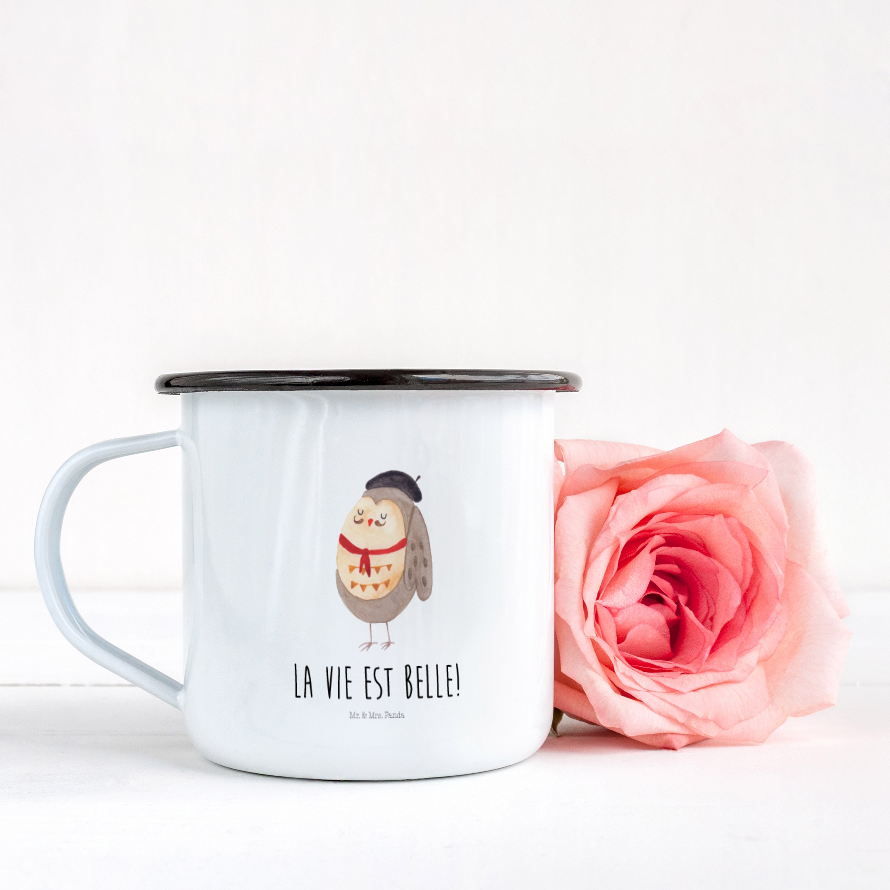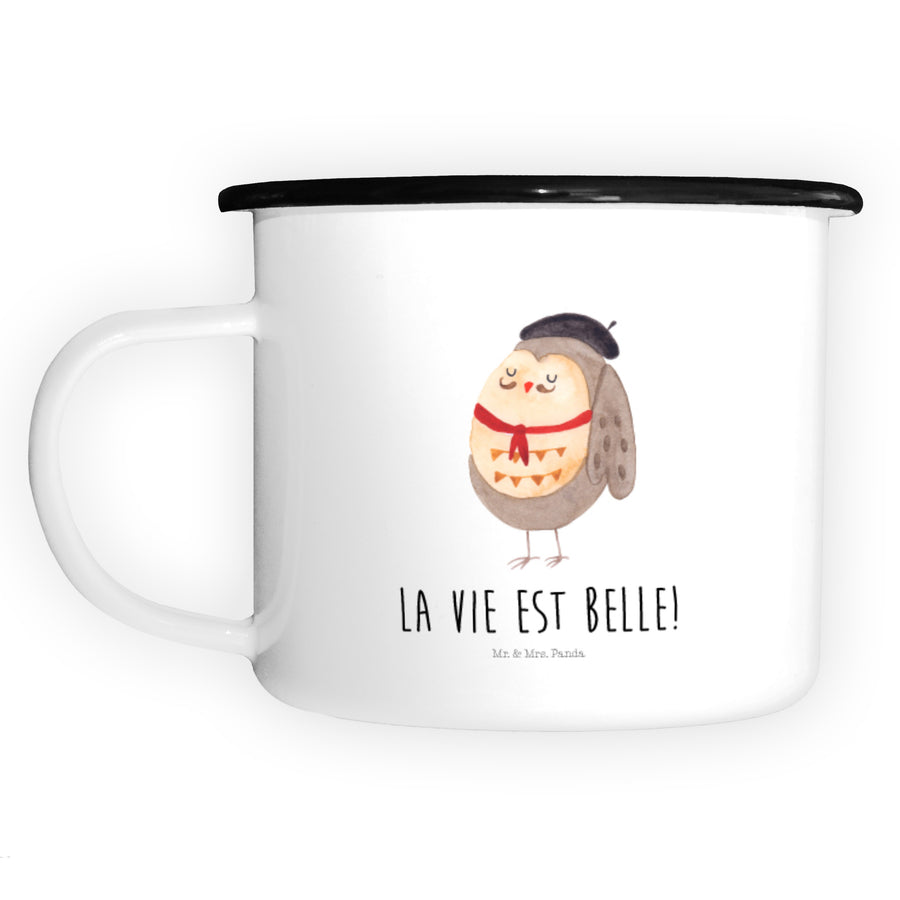 XL Emaille Tasse Eule Französisch - mit Spruch