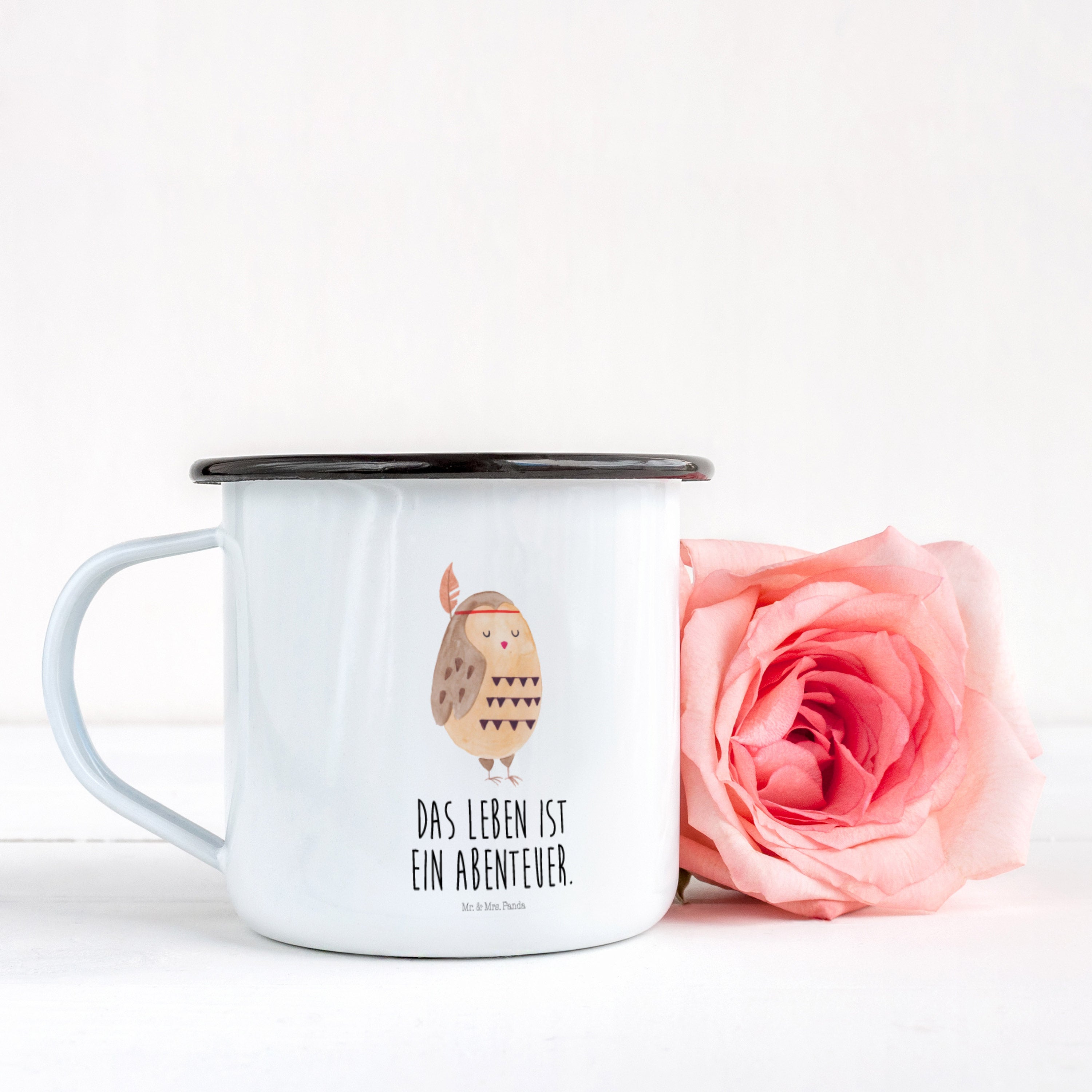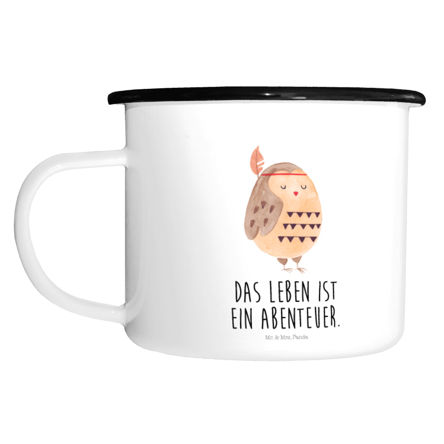 XL Emaille Tasse Eule Federschmuck - mit Spruch