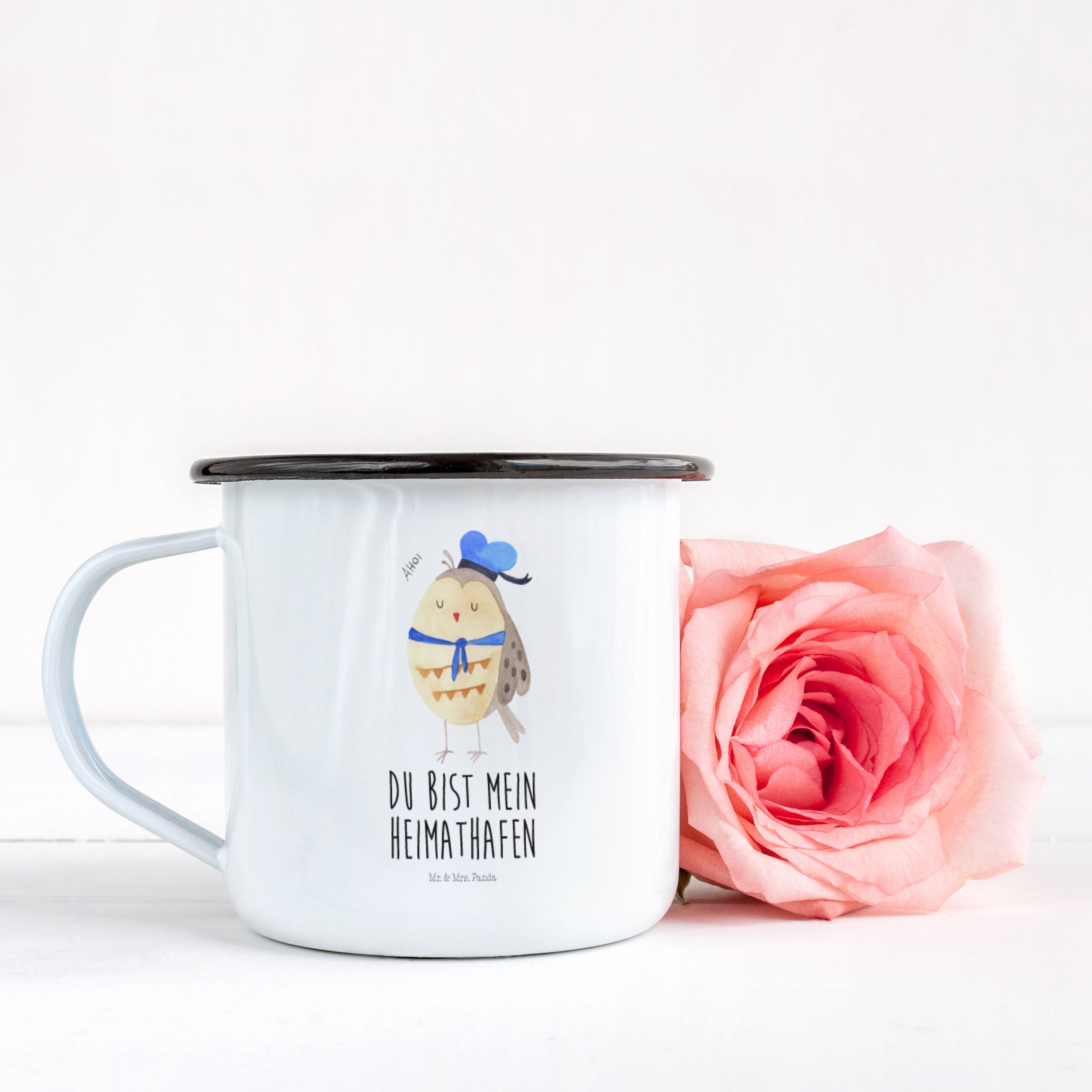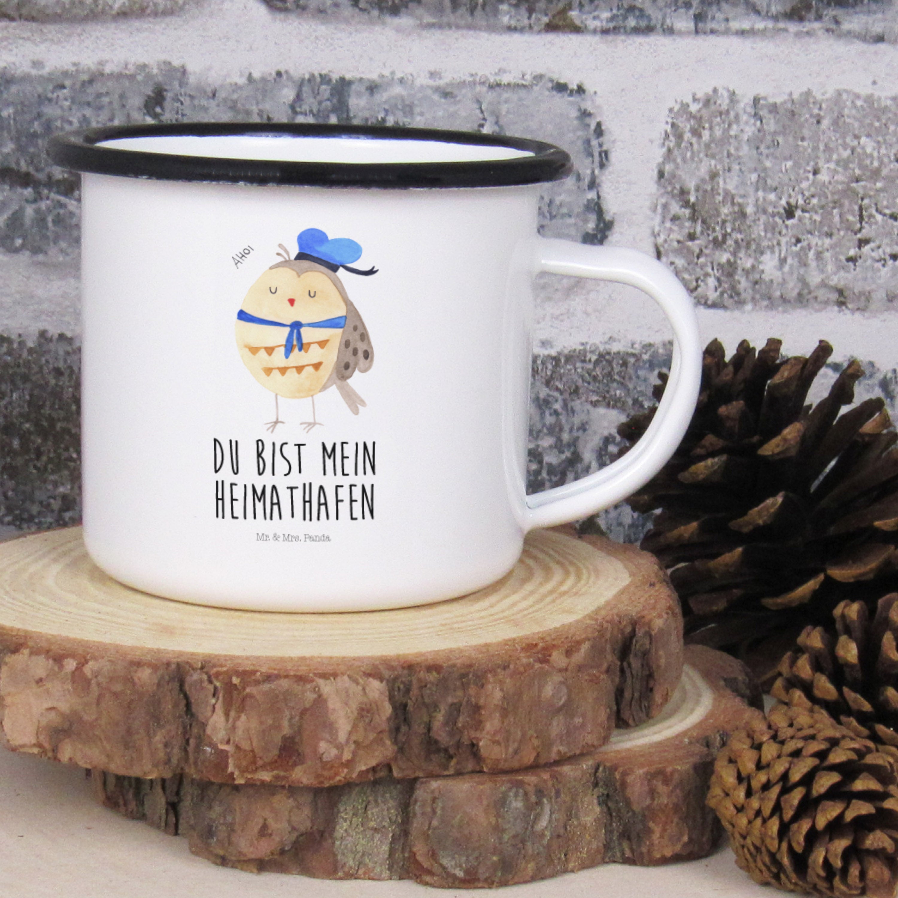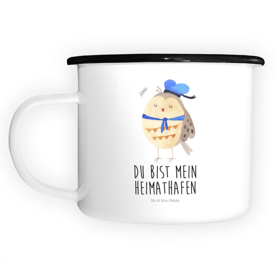 XL Emaille Tasse Eule Matrosen - mit Spruch
