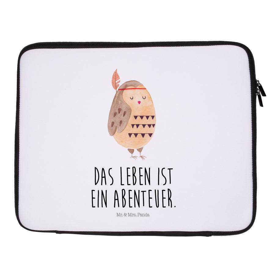 20 x 28 Notebook Tasche Eule Federschmuck - mit Spruch - Weiß