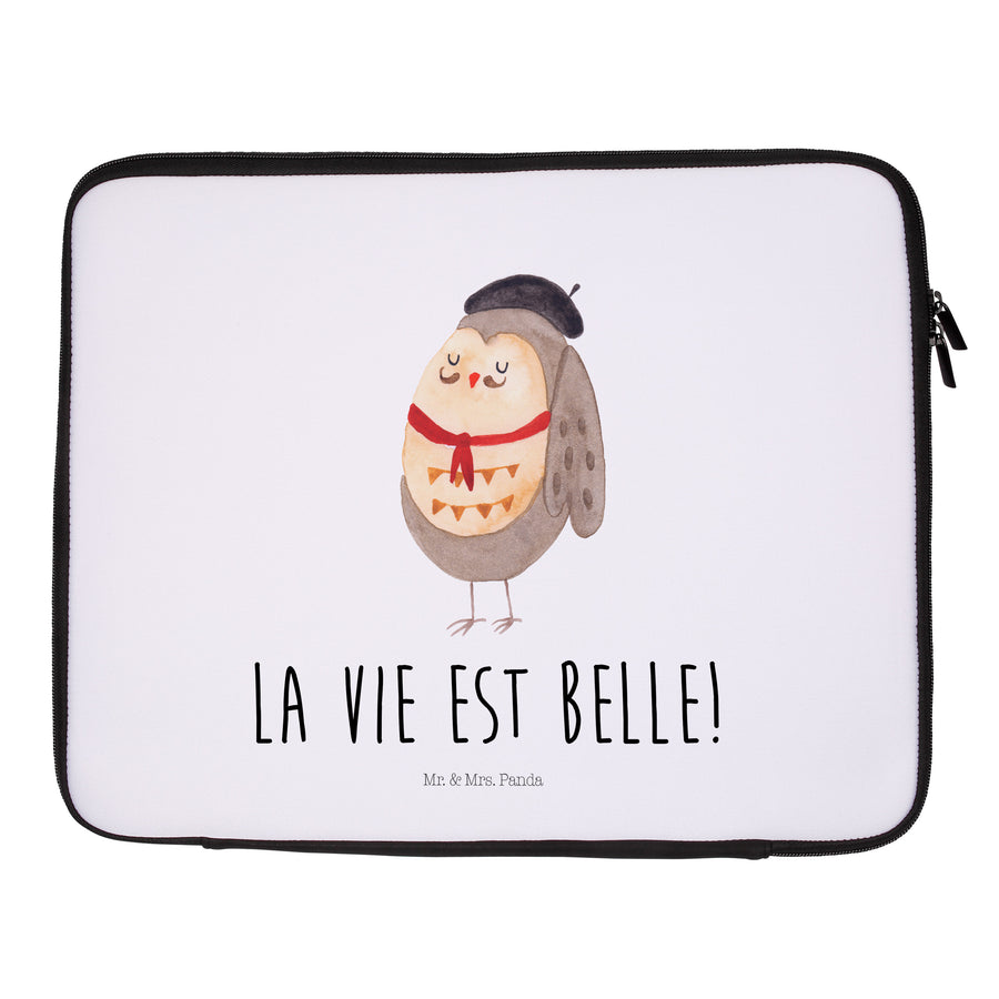 20 x 28 Notebook Tasche Eule Französisch - mit Spruch - Weiß