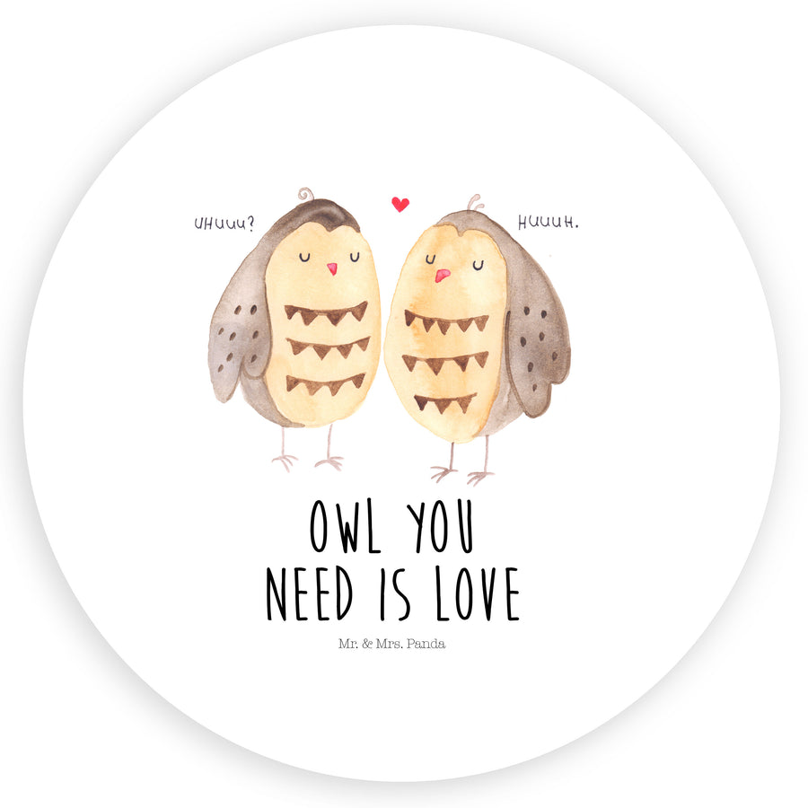 40mm Rund Aufkleber Eule Liebe - mit Spruch - Weiß