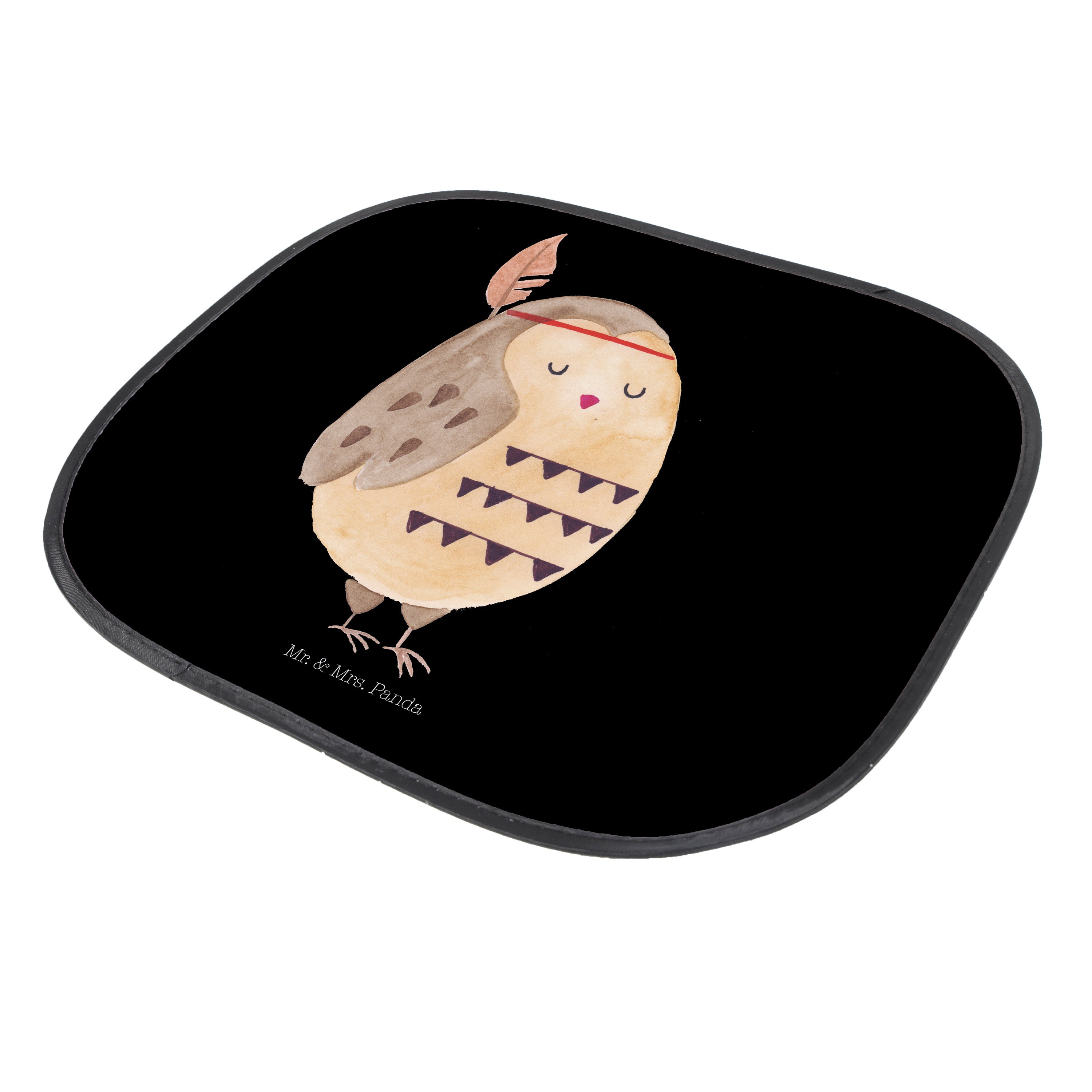 Auto Sonnenschutz Eule Federschmuck - mit Spruch - Schwarz