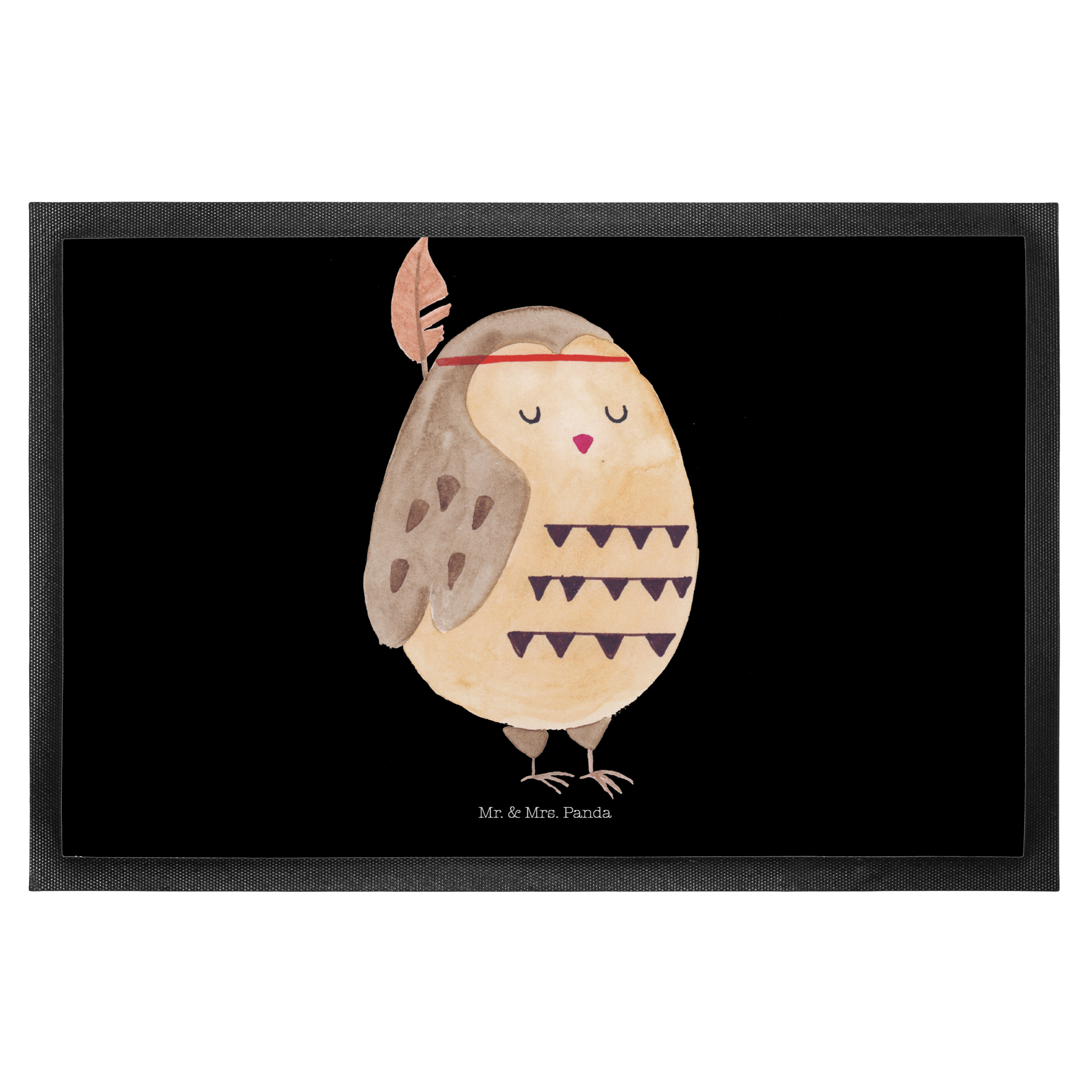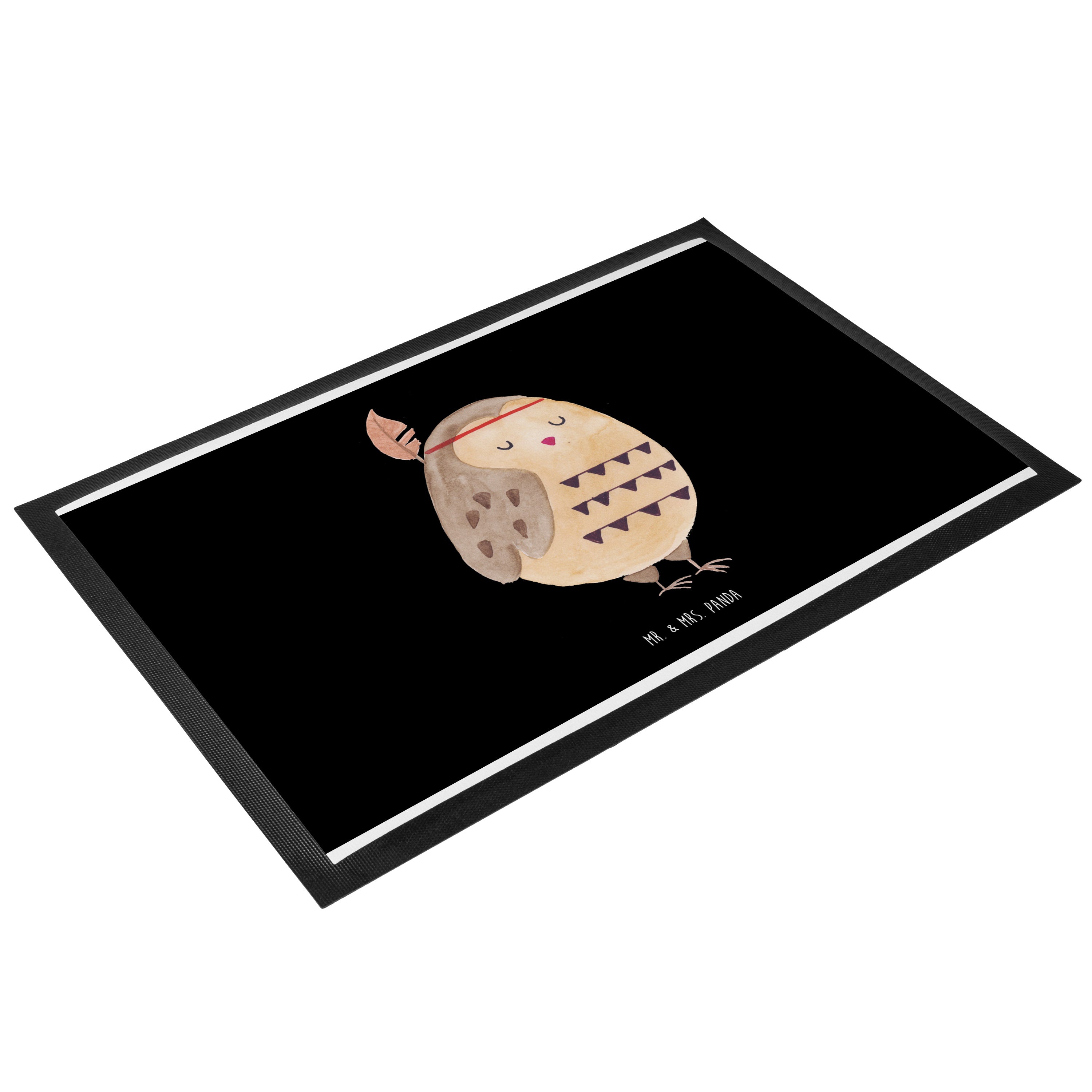 Fußmatte Eule Federschmuck - 40 x 60 cm - mit Spruch - Schwarz