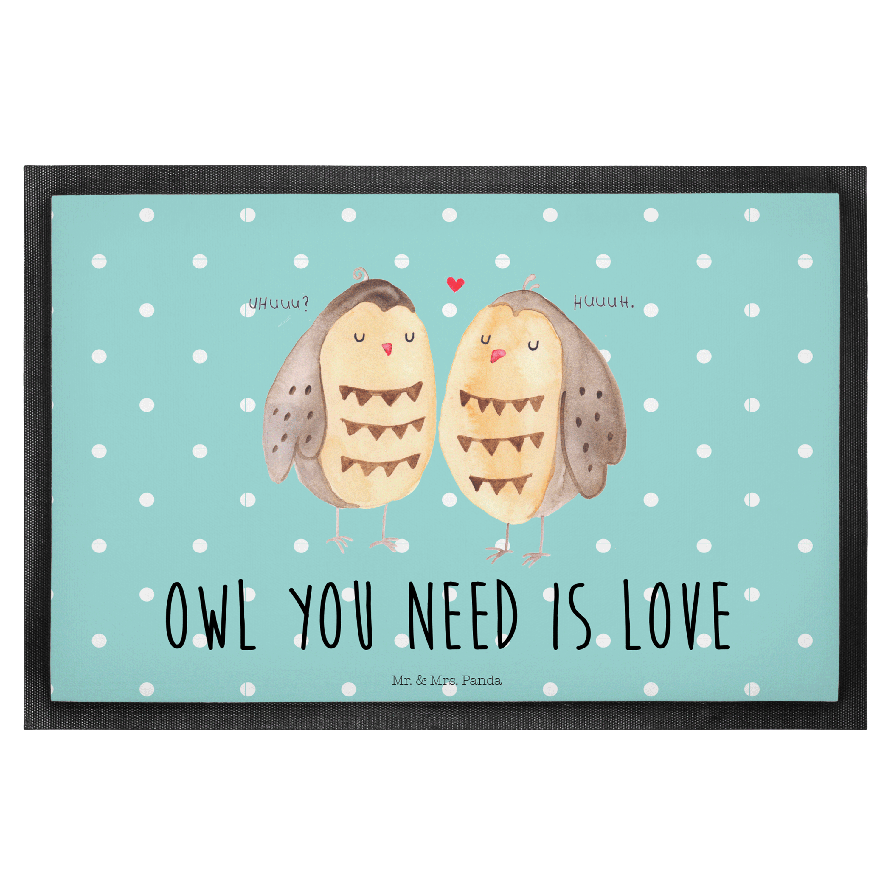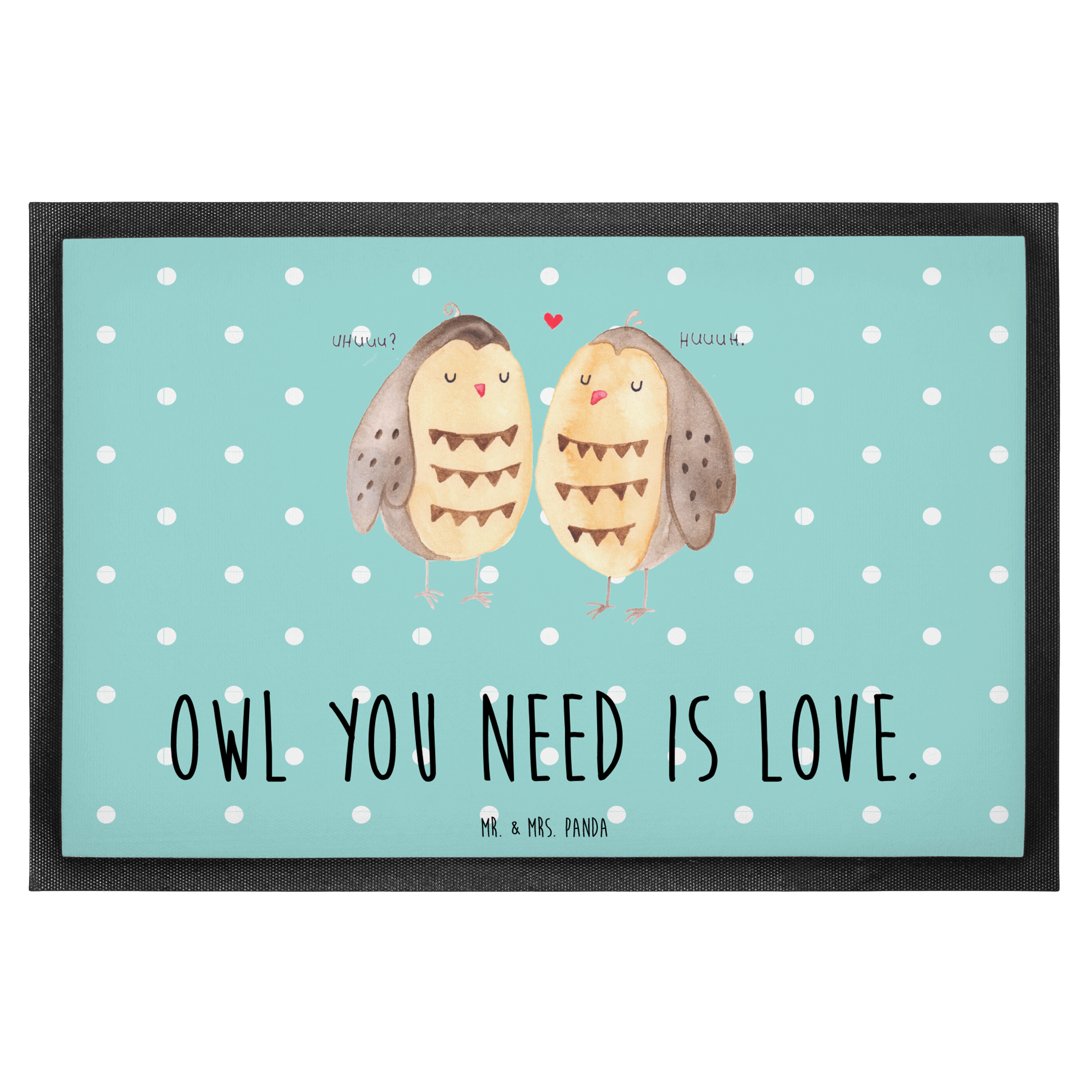 Fußmatte Eule Liebe - 60 x 90 cm - mit Spruch - Türkis Pastell