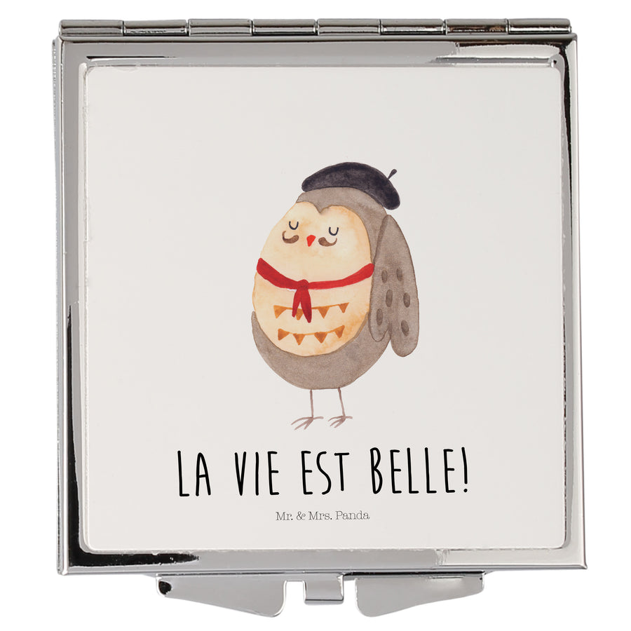 Handtaschenspiegel quadratisch Eule Französisch - mit Spruch - Weiß