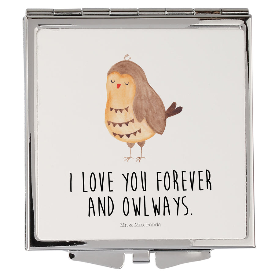 Handtaschenspiegel quadratisch Eule Zufrieden - mit Spruch - Weiß