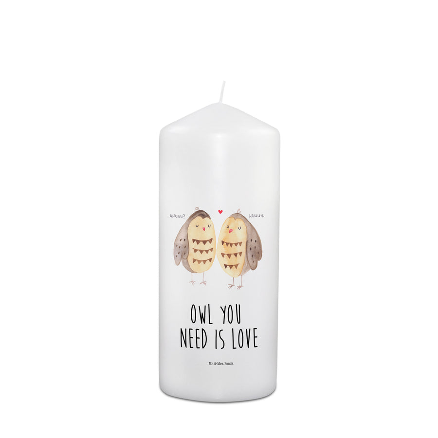 Kerze Eule Liebe - 15 x 7 cm - mit Spruch