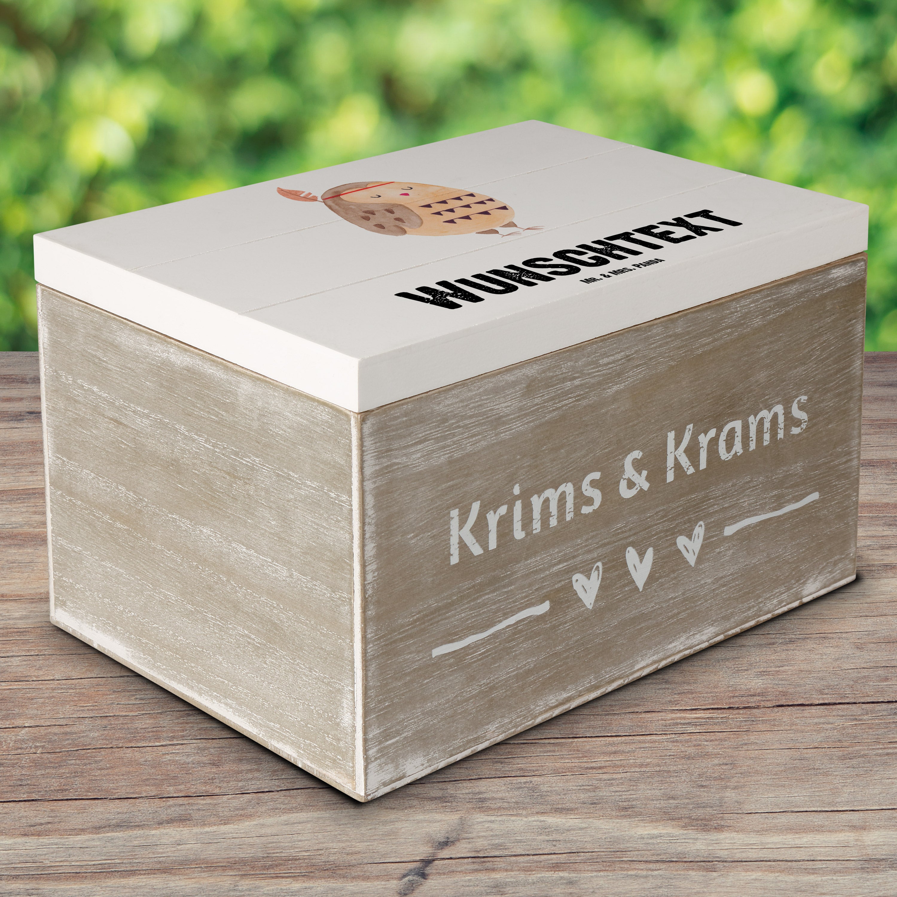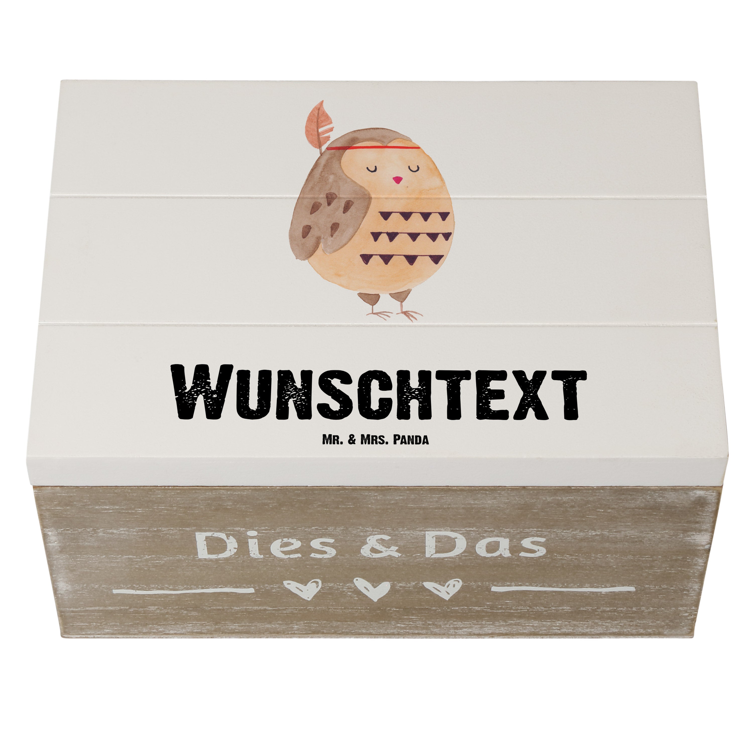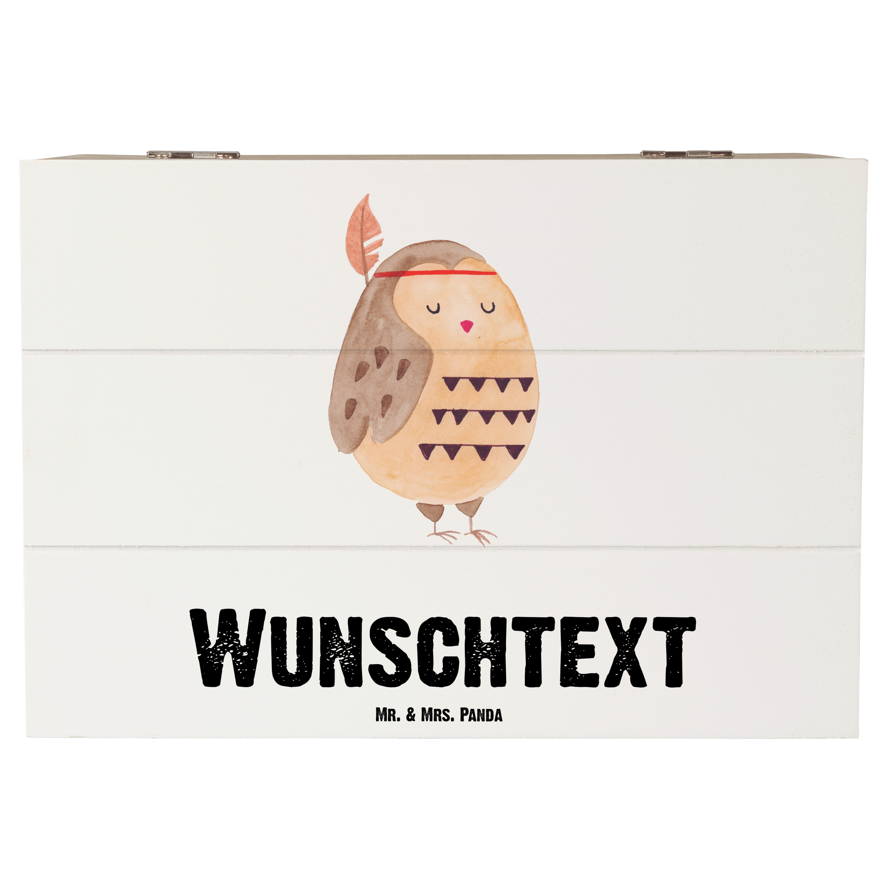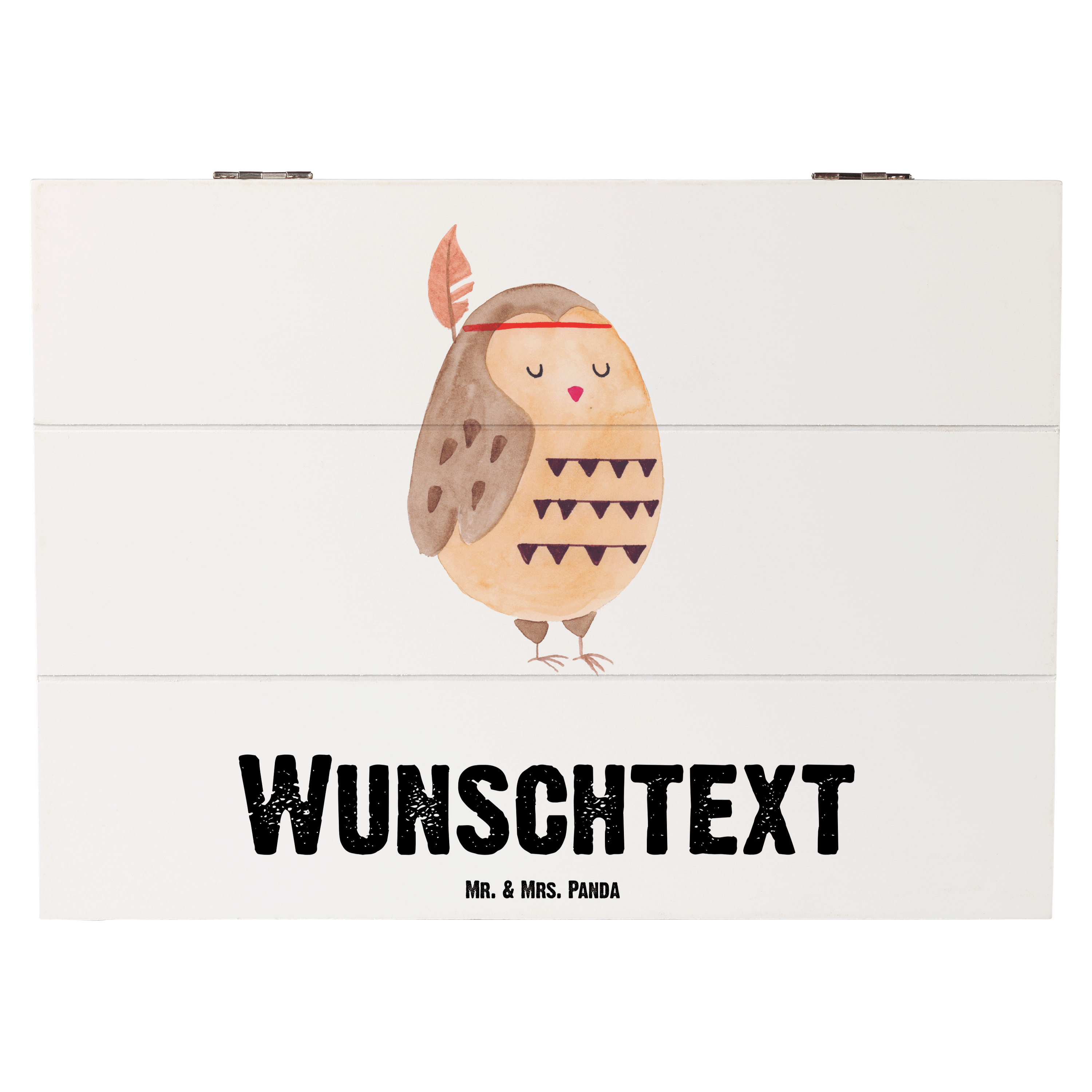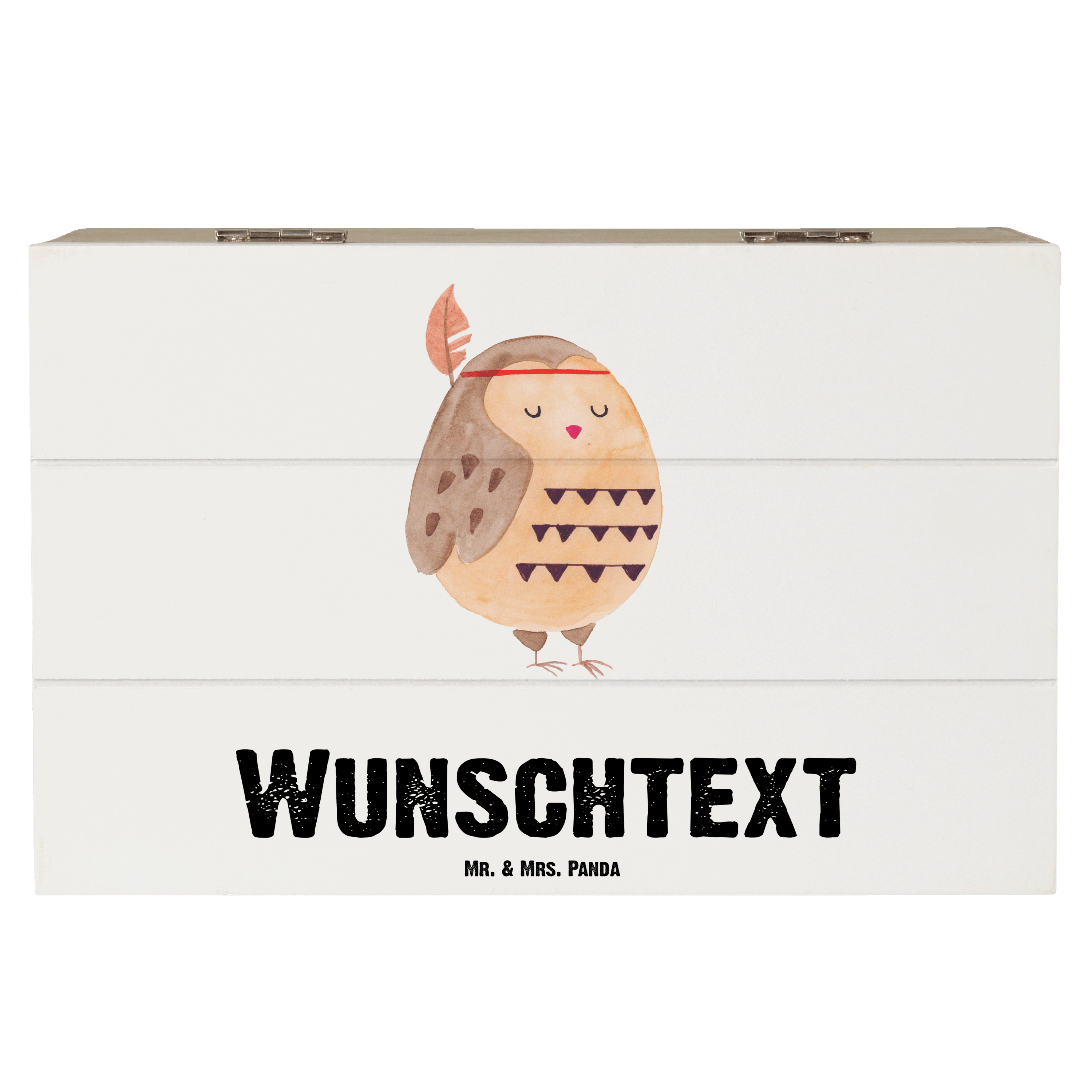 Personalisierte Holzkiste Eule Federschmuck - Weiß - 19 x 12 cm