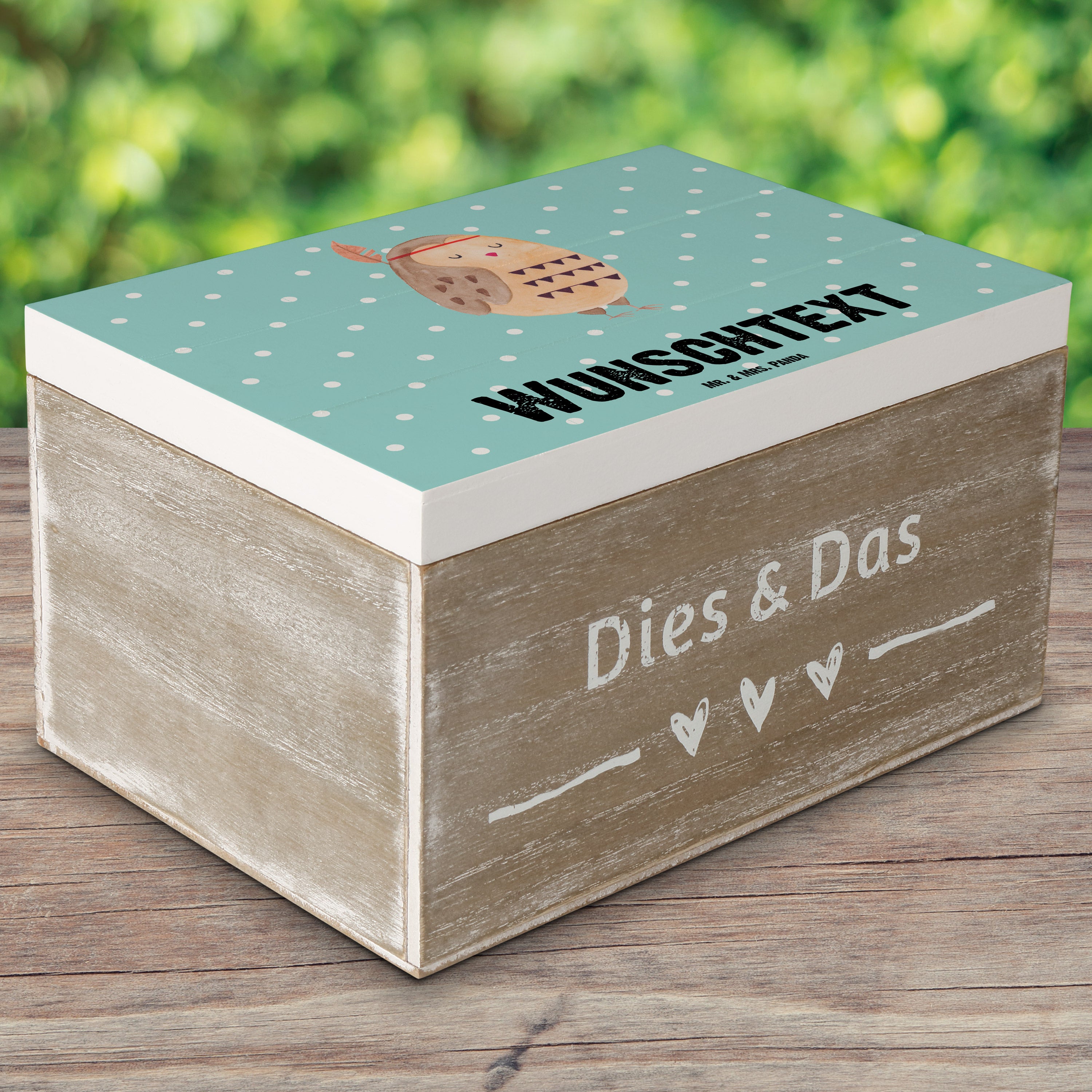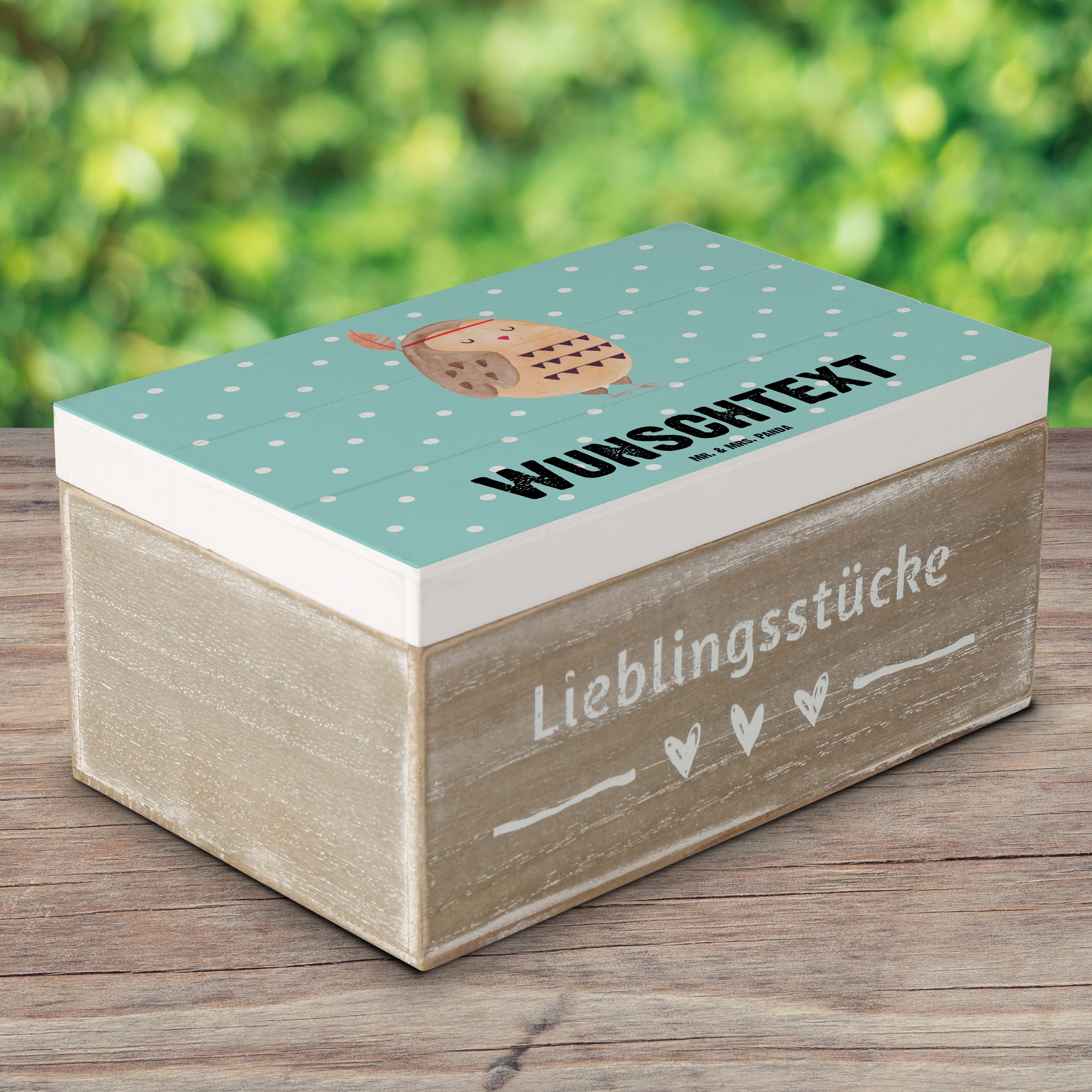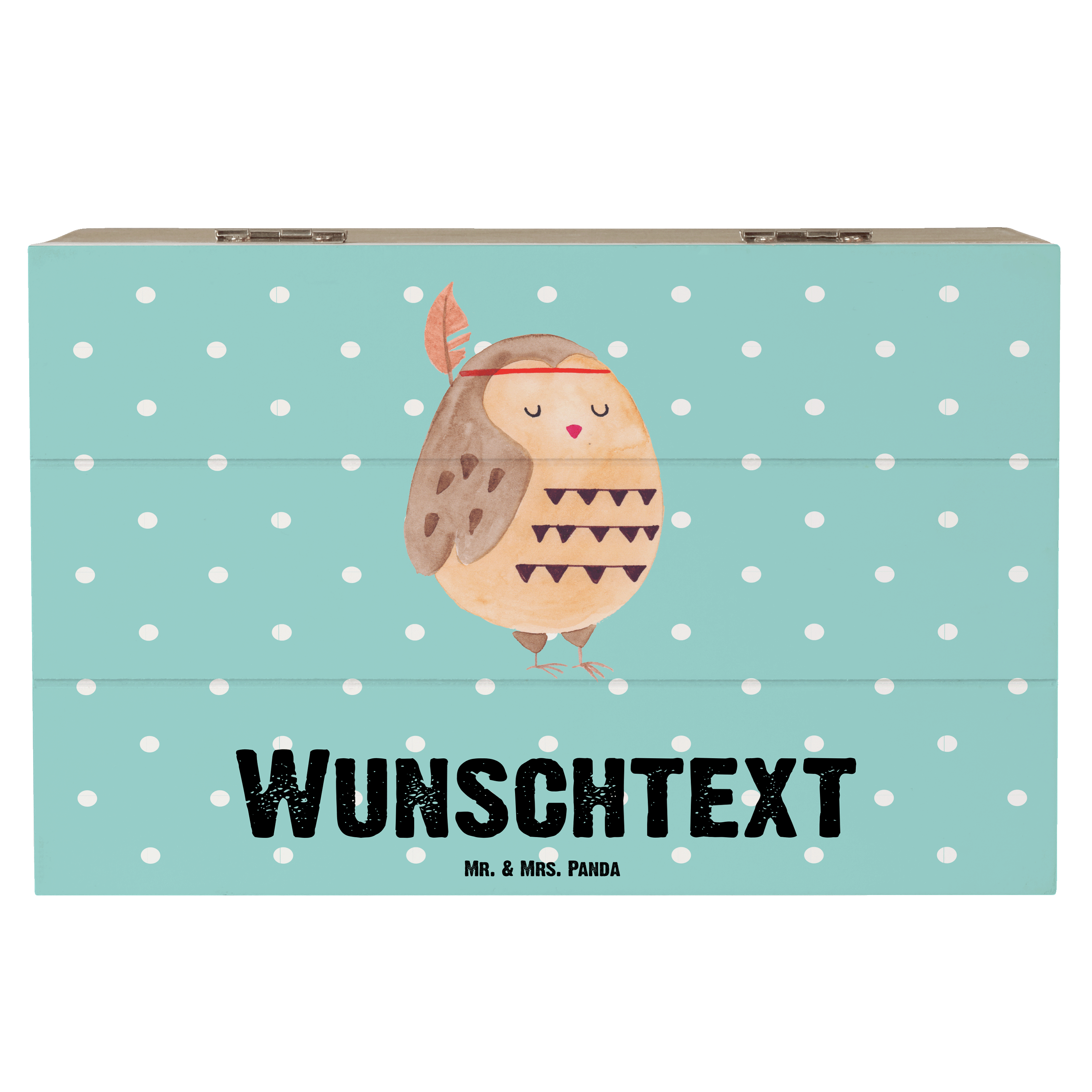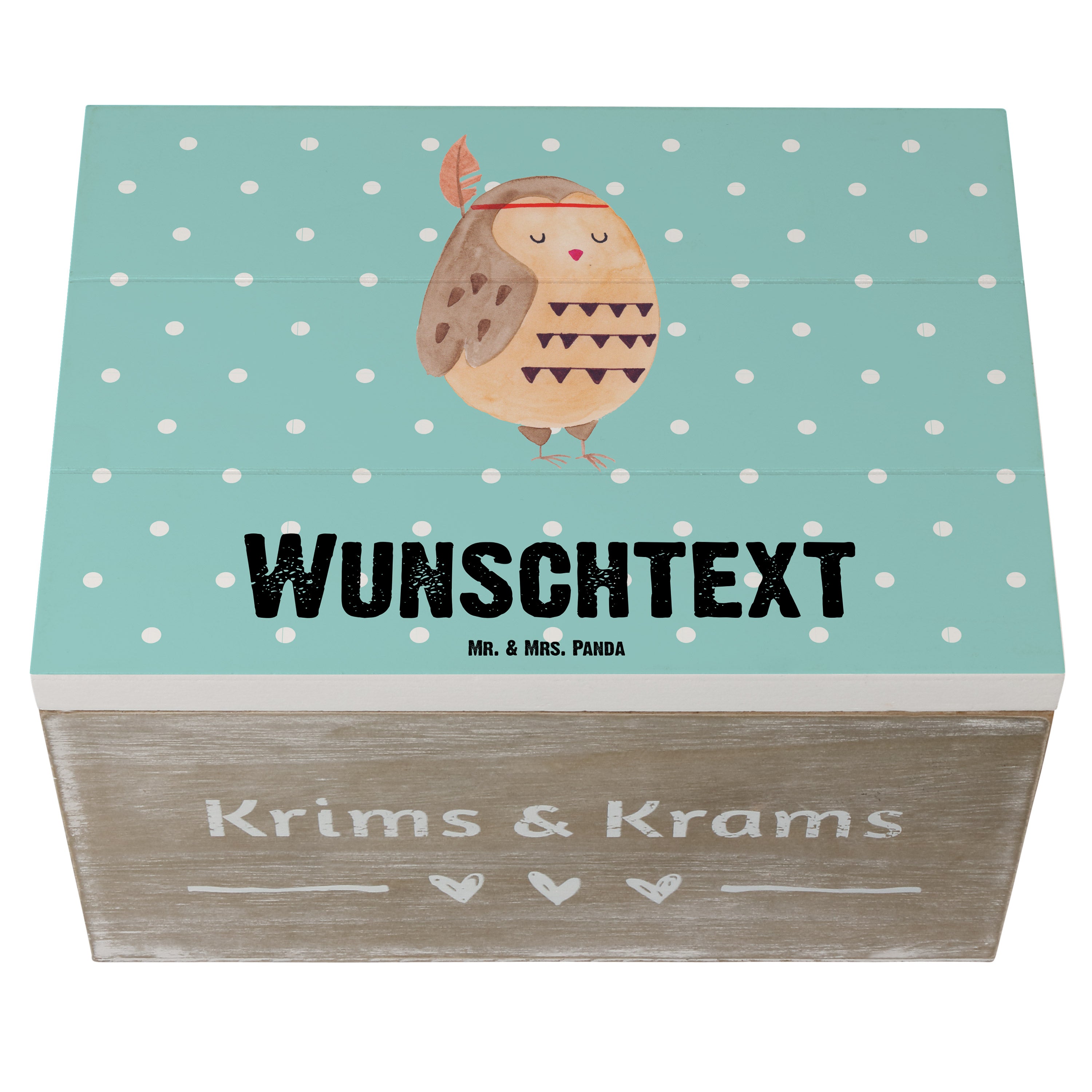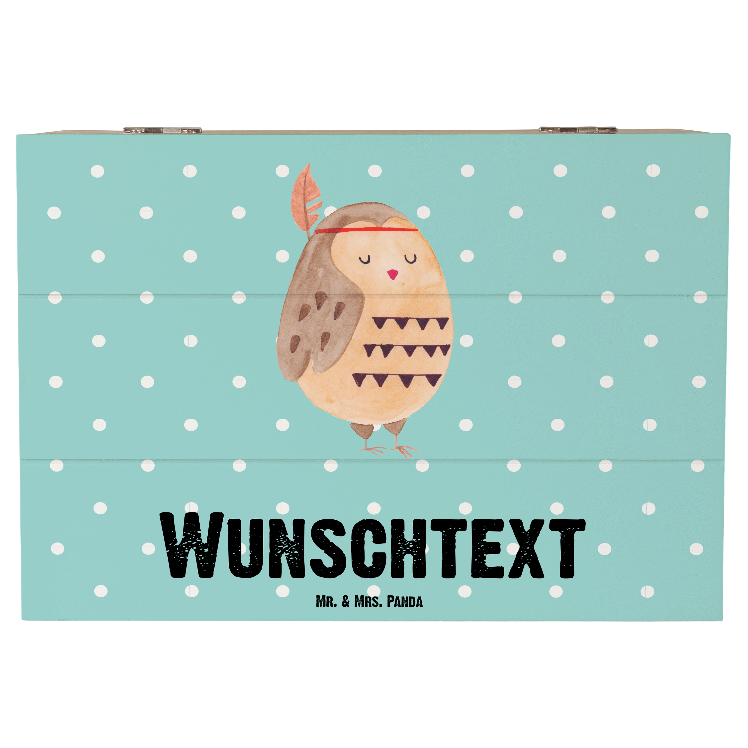 Personalisierte Holzkiste Eule Federschmuck - Weiß - 19 x 12 cm