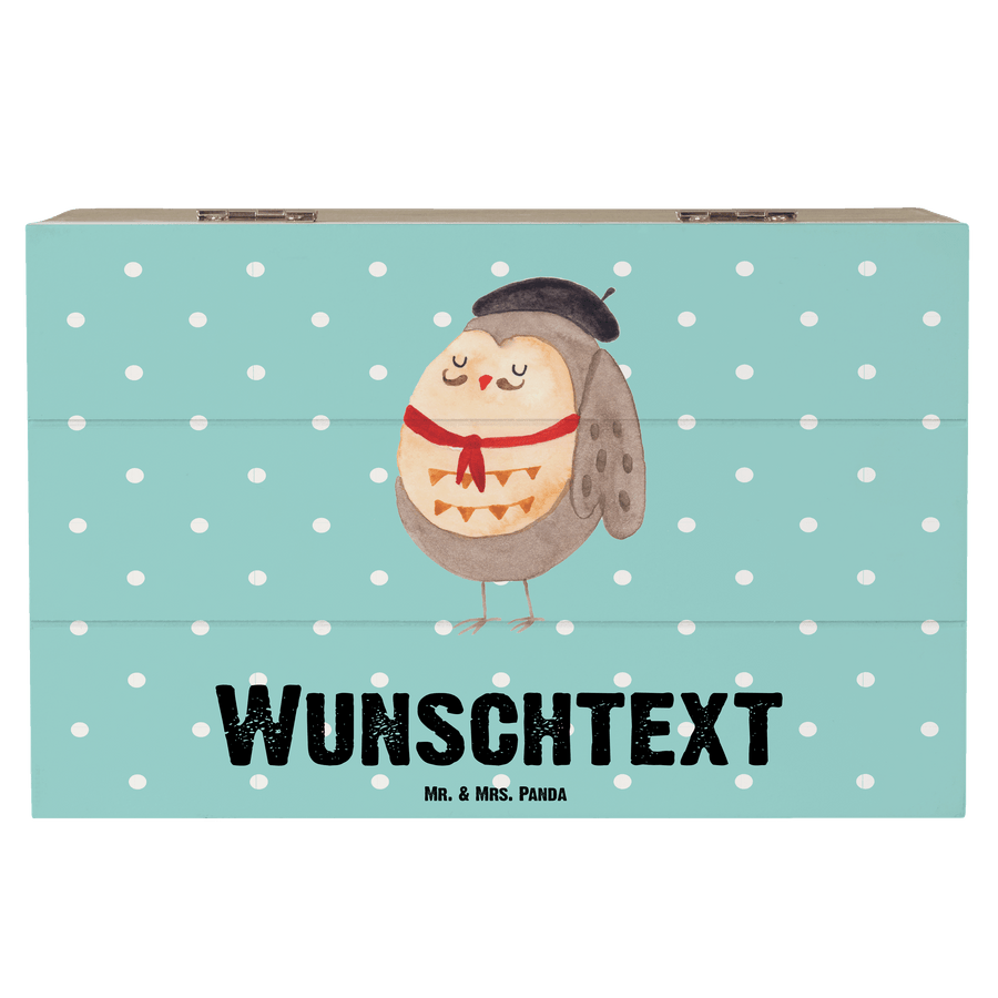 Personalisierte Holzkiste Eule Französisch - Türkis Pastell - 19 x 12 cm