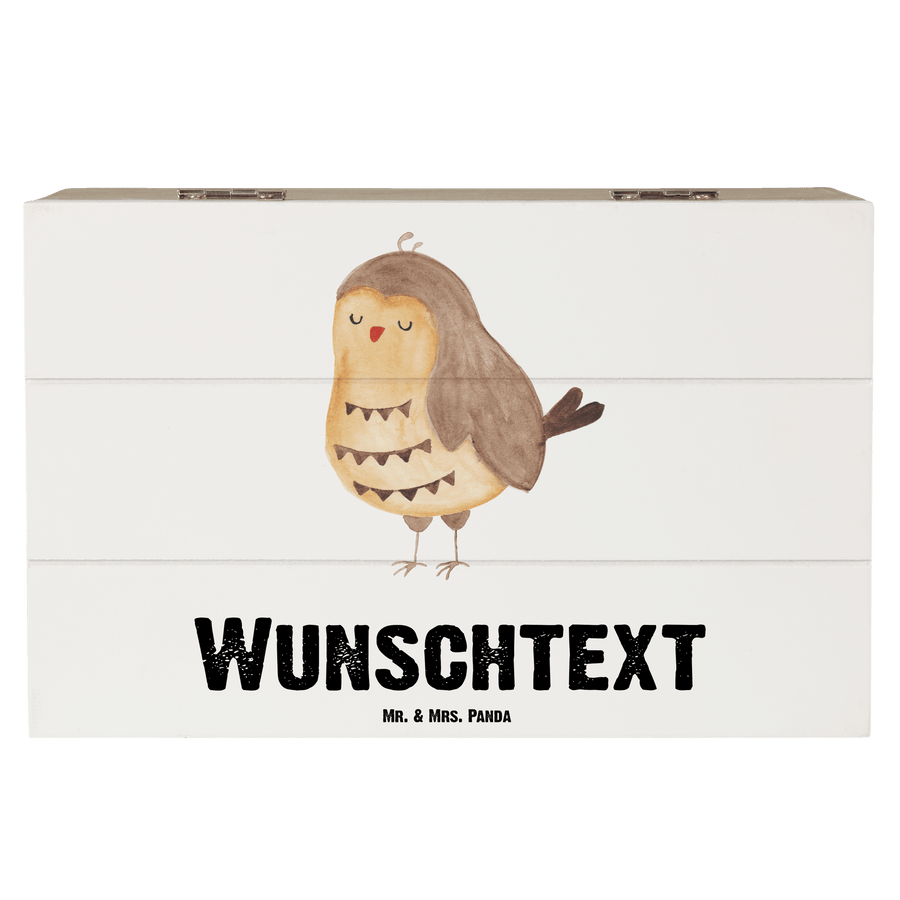 Personalisierte Holzkiste Eule Zufrieden - Weiß - 19 x 12 cm